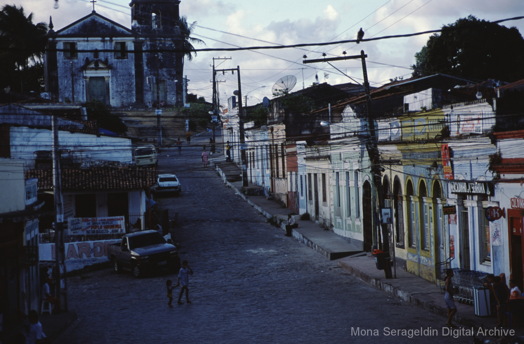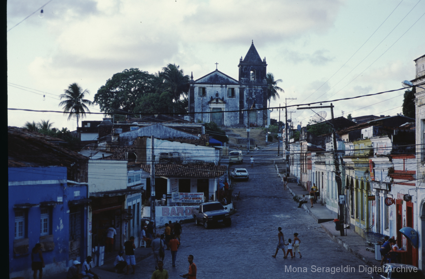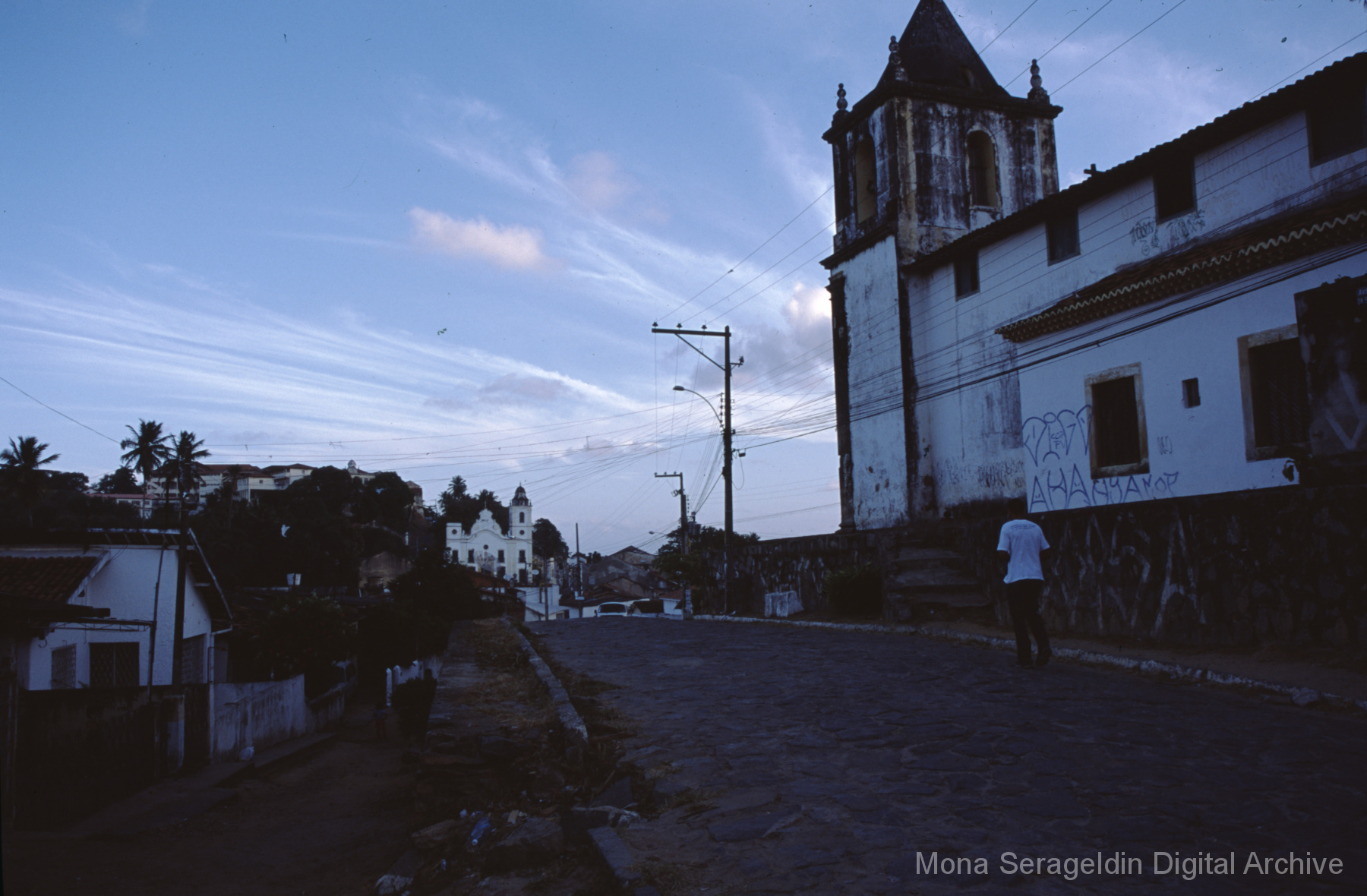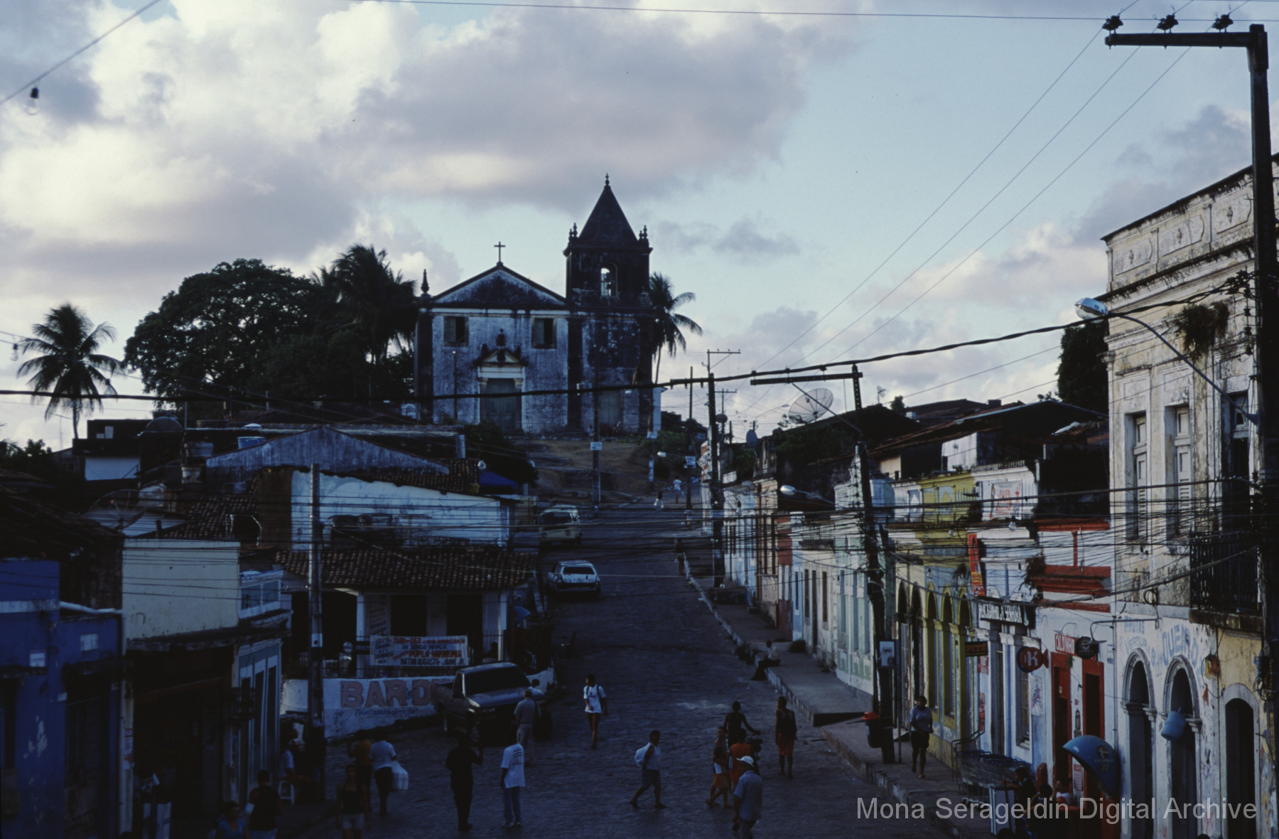 Photographs of the historic city of Olinda in the coastal metropolitan region of Recife, in the state of Pernambuco in northeast Brazil from around 2001. The gallery shows buildings and streetscapes of the city’s historic center, including landmarks like the Catedral Metropolitana São Salvador do Mundo and the Basílica e Mosteiro de São Bento. These images also include views of street markets, hillside views of city and waterfront below, and examples of urban infrastructure.