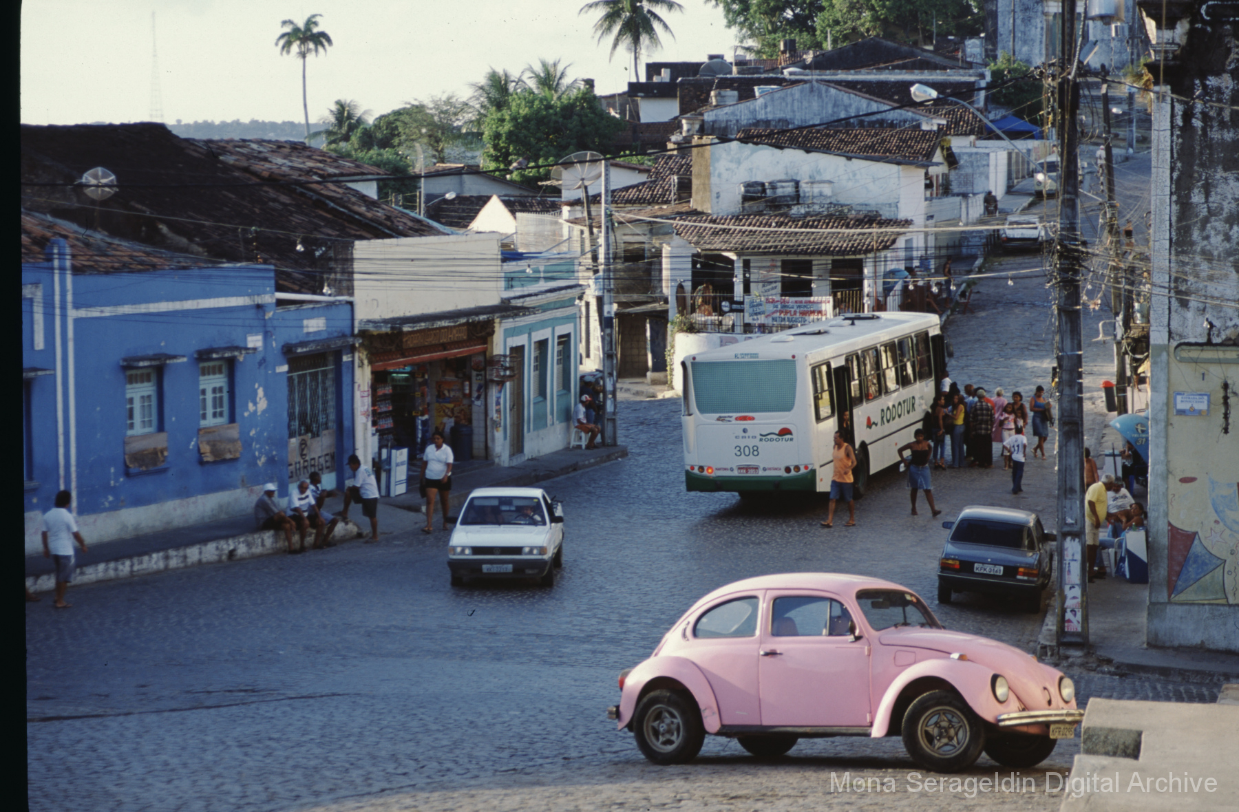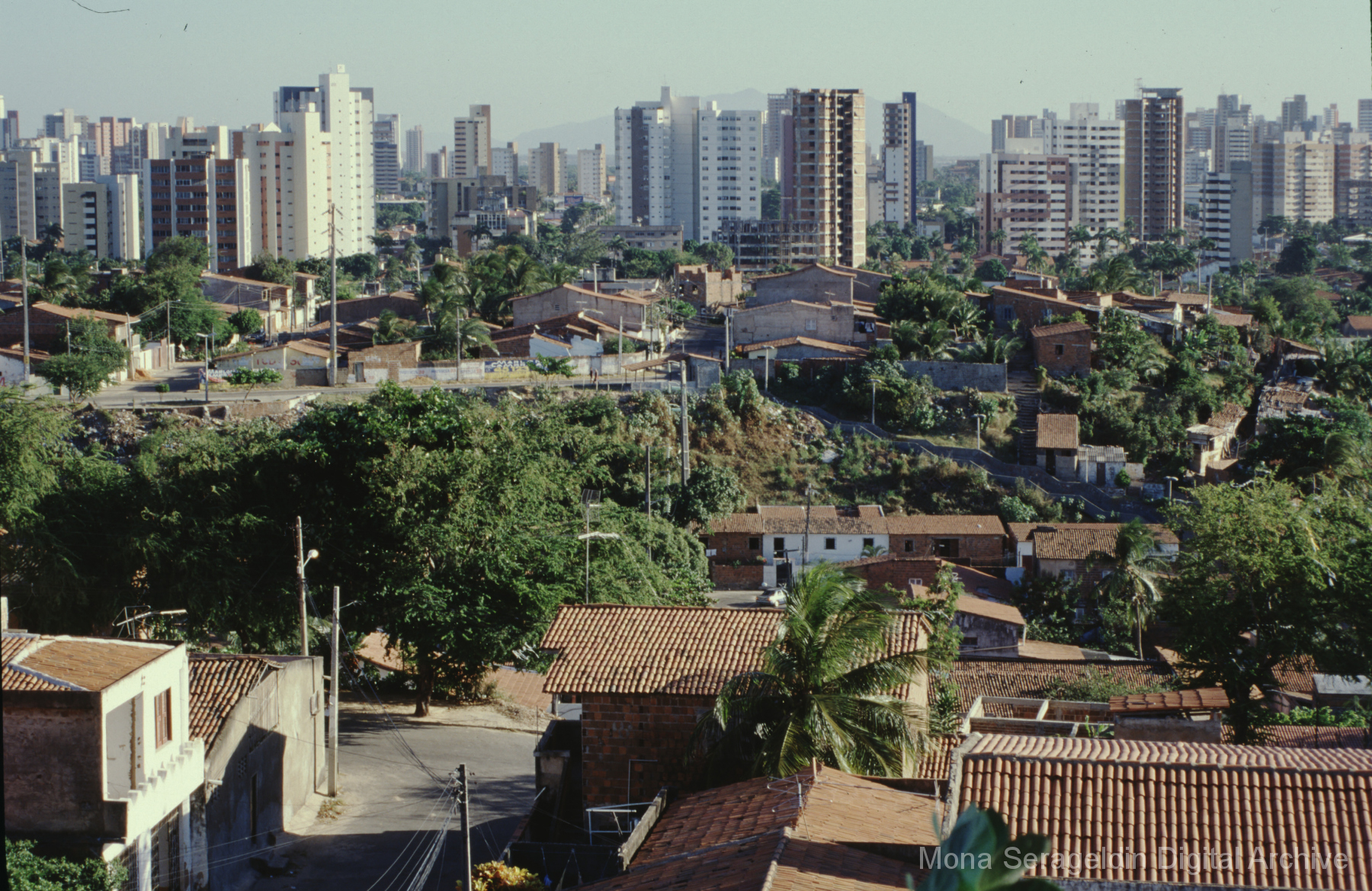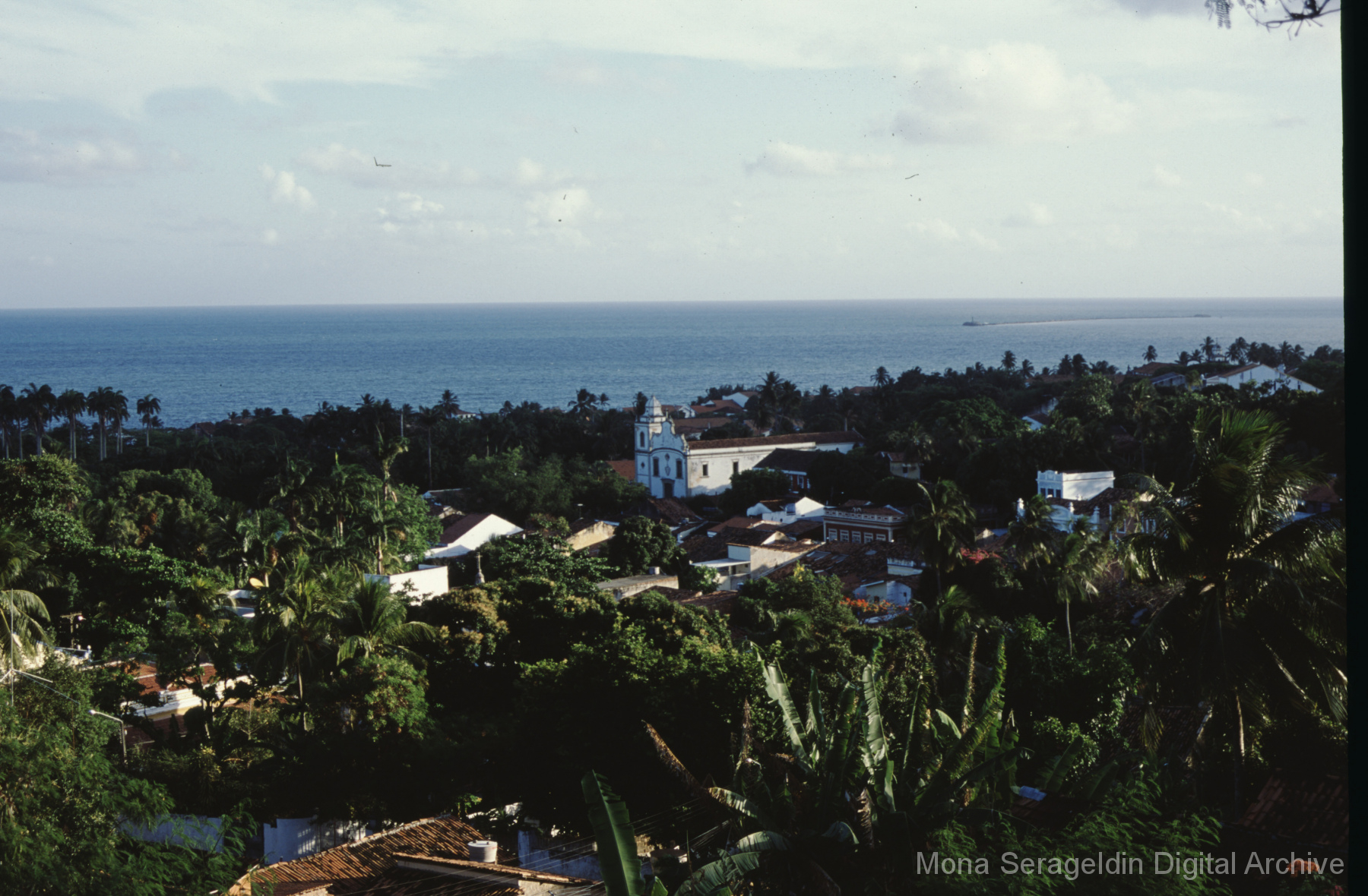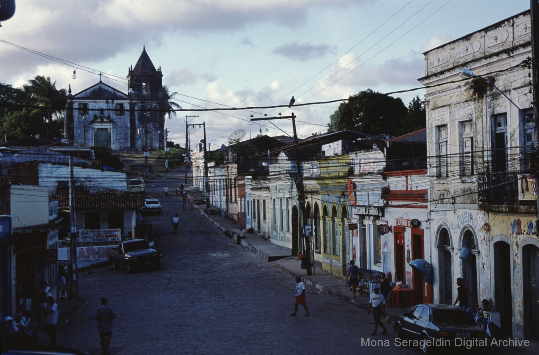 Photographs of the historic city of Olinda in the coastal metropolitan region of Recife, in the state of Pernambuco in northeast Brazil from around 2001. The gallery shows buildings and streetscapes of the city’s historic center, including landmarks like the Catedral Metropolitana São Salvador do Mundo and the Basílica e Mosteiro de São Bento. These images also include views of street markets, hillside views of city and waterfront below, and examples of urban infrastructure.