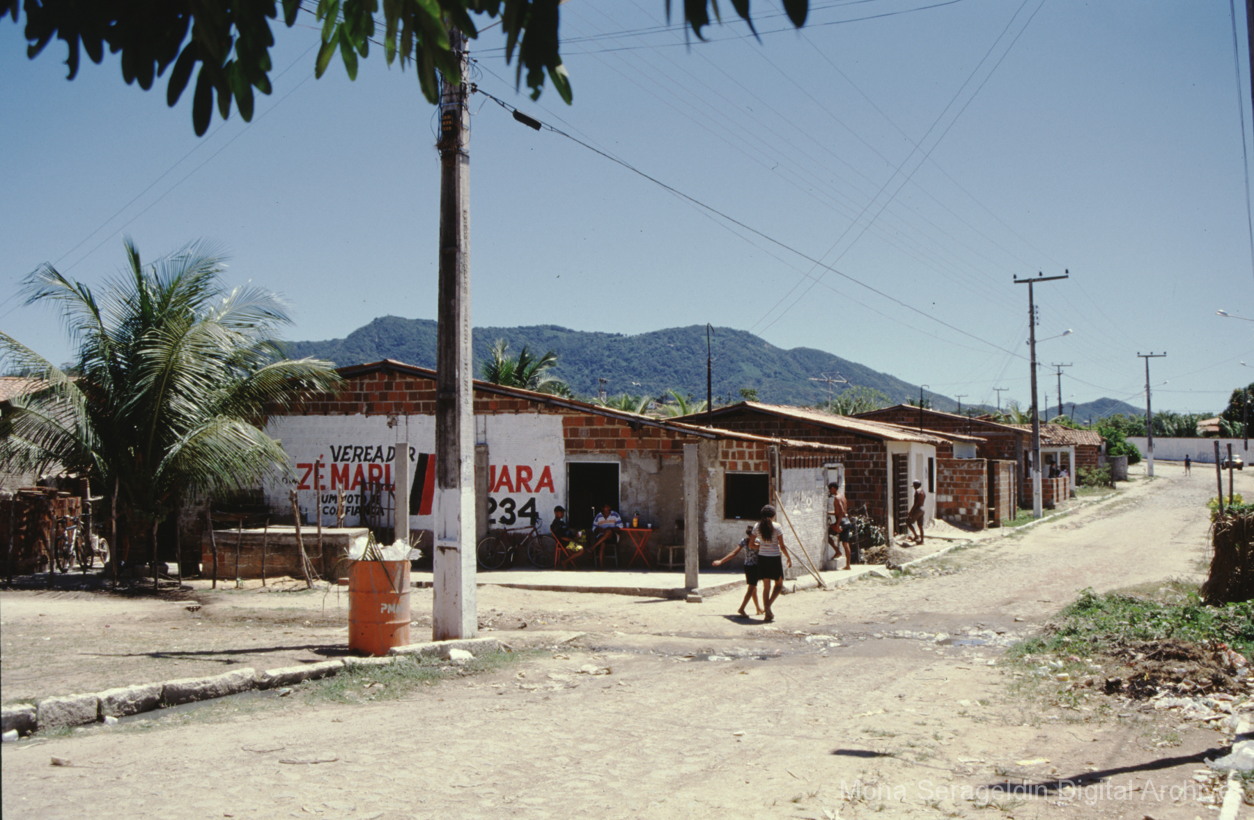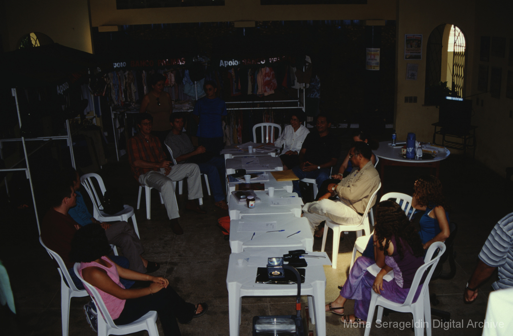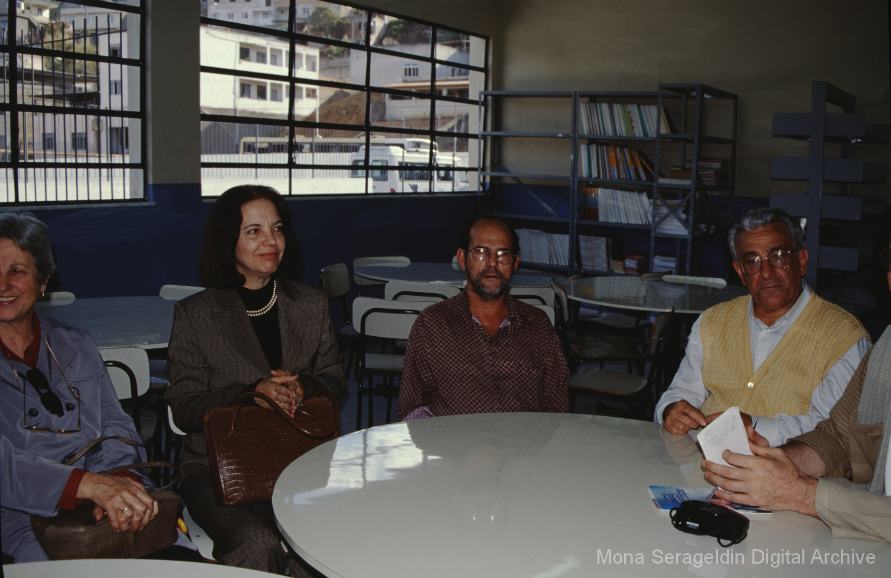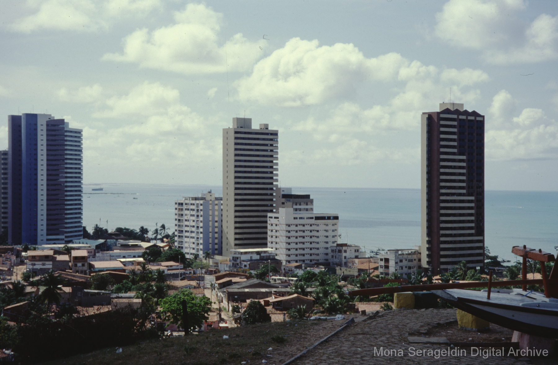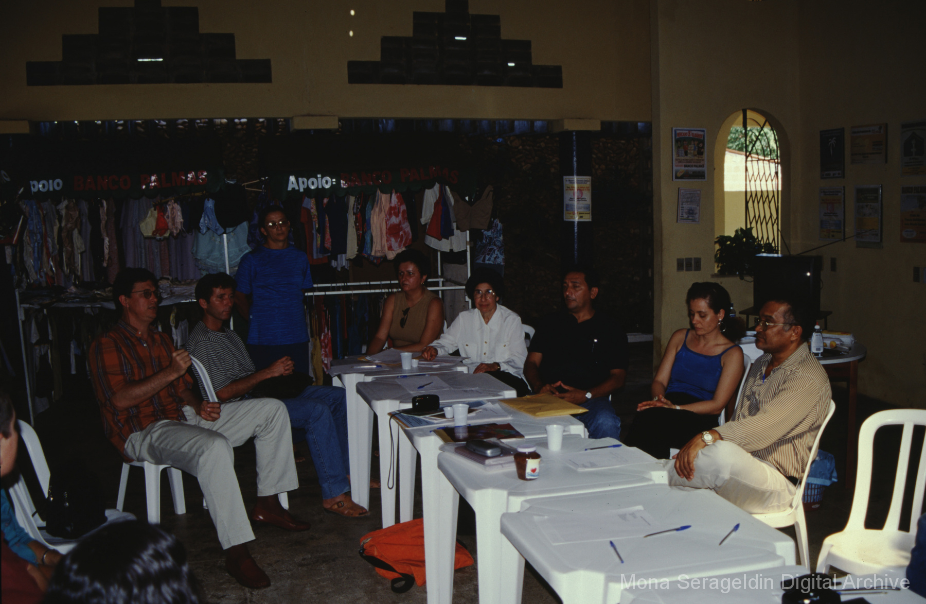 Photographs of the city of Fortaleza in the state of Ceará in northeast Brazil from August 1996. The gallery covers urban contexts and communities, a state housing project, and the Banco Palmas community bank. Images show meetings with community members, housing overviews and interiors, various public facilities, and overviews of the city and coastline. Mona Serageldin is pictured.