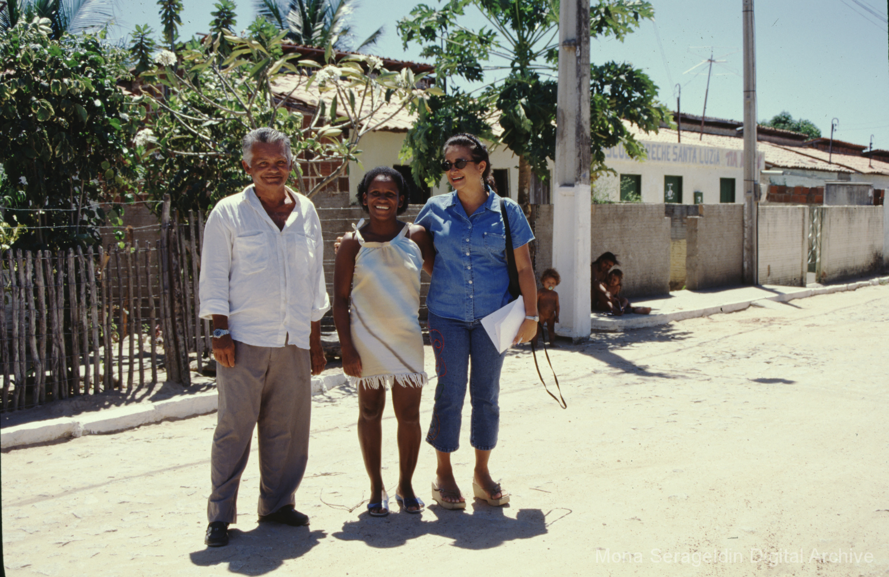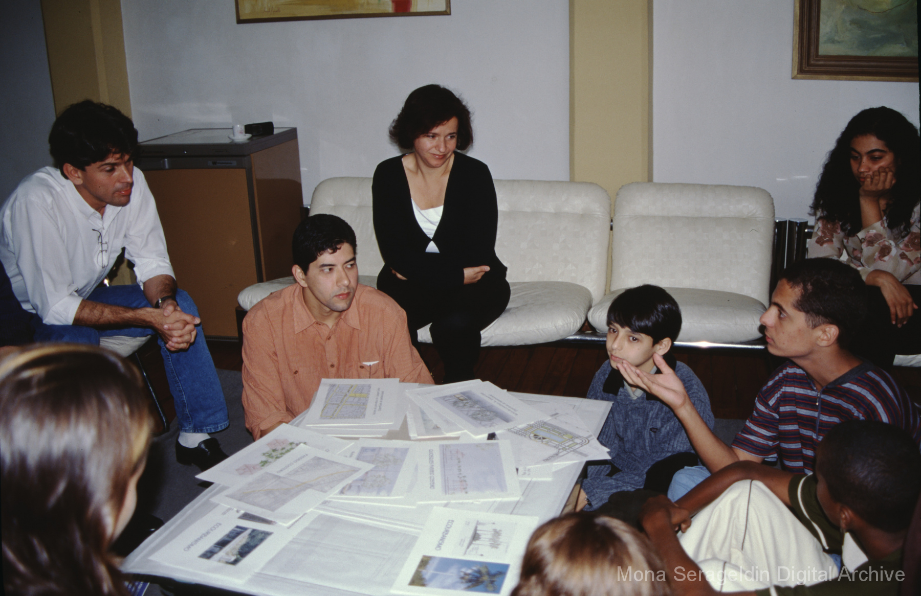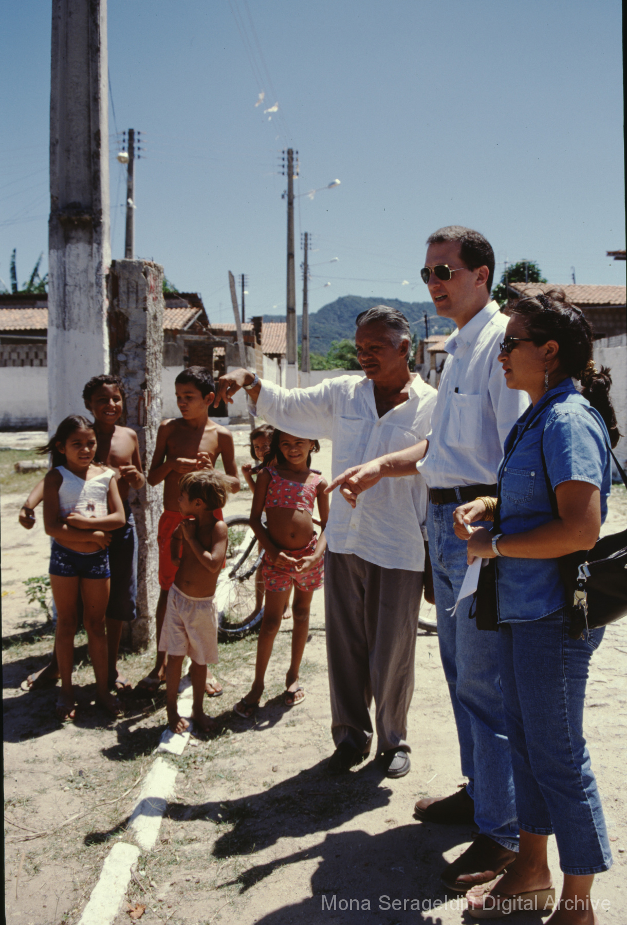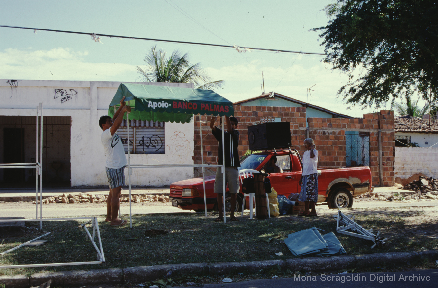 Photographs of the city of Fortaleza in the state of Ceará in northeast Brazil from August 1996. The gallery covers urban contexts and communities, a state housing project, and the Banco Palmas community bank. Images show meetings with community members, housing overviews and interiors, various public facilities, and overviews of the city and coastline. Mona Serageldin is pictured.