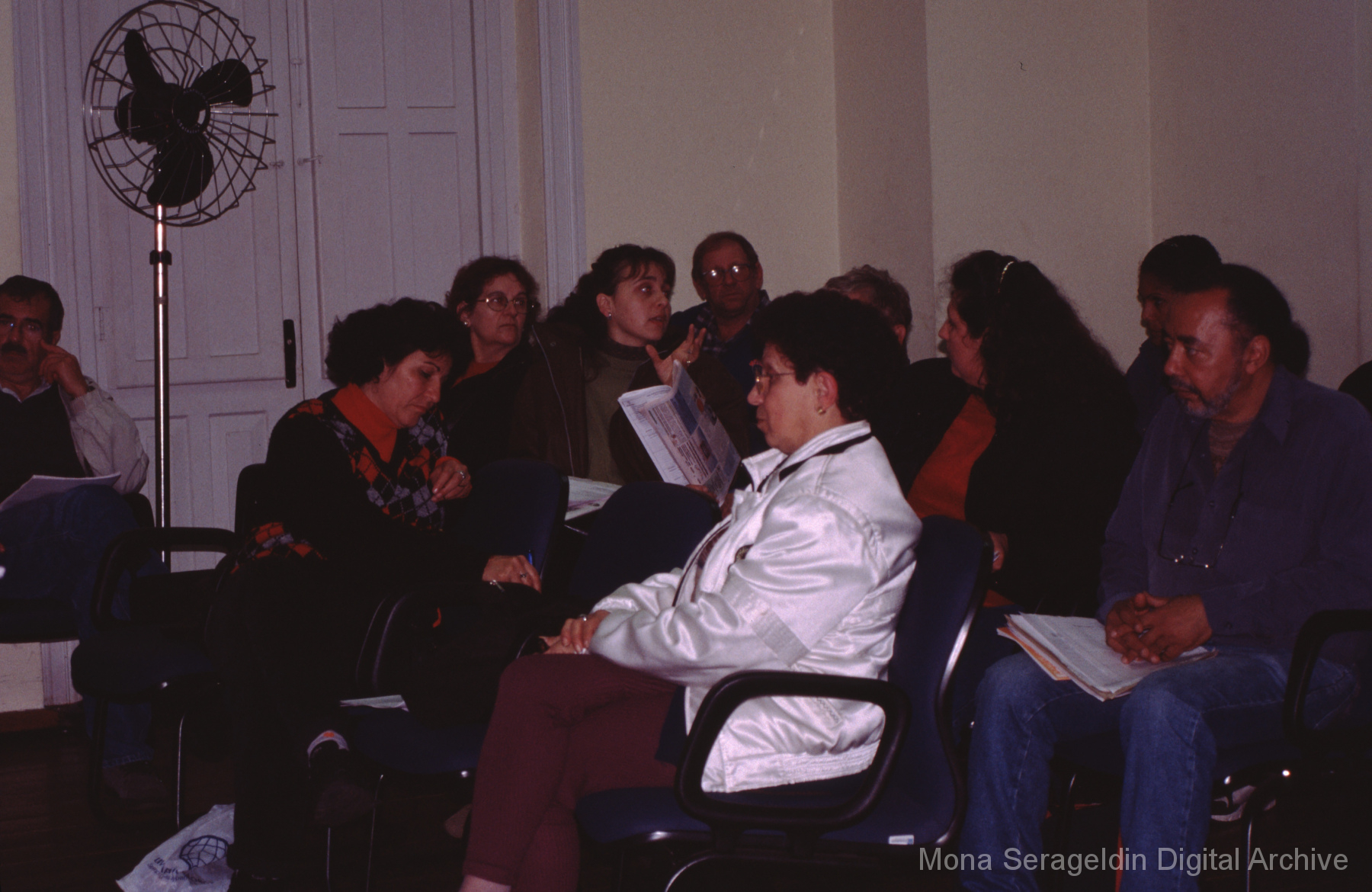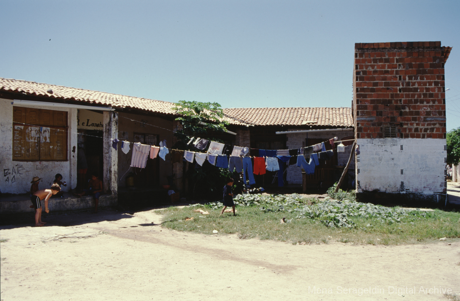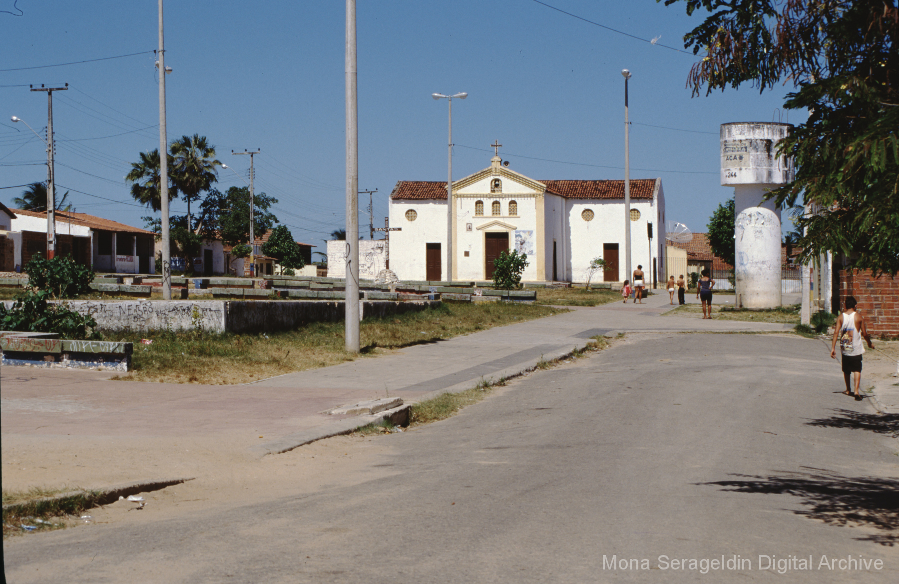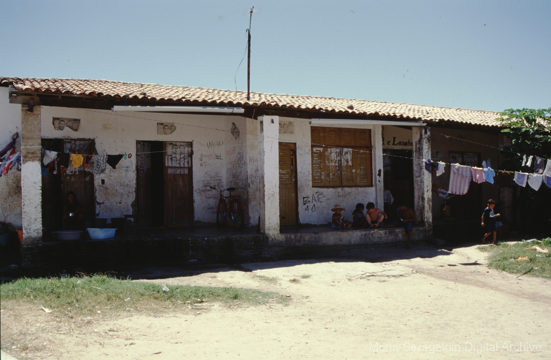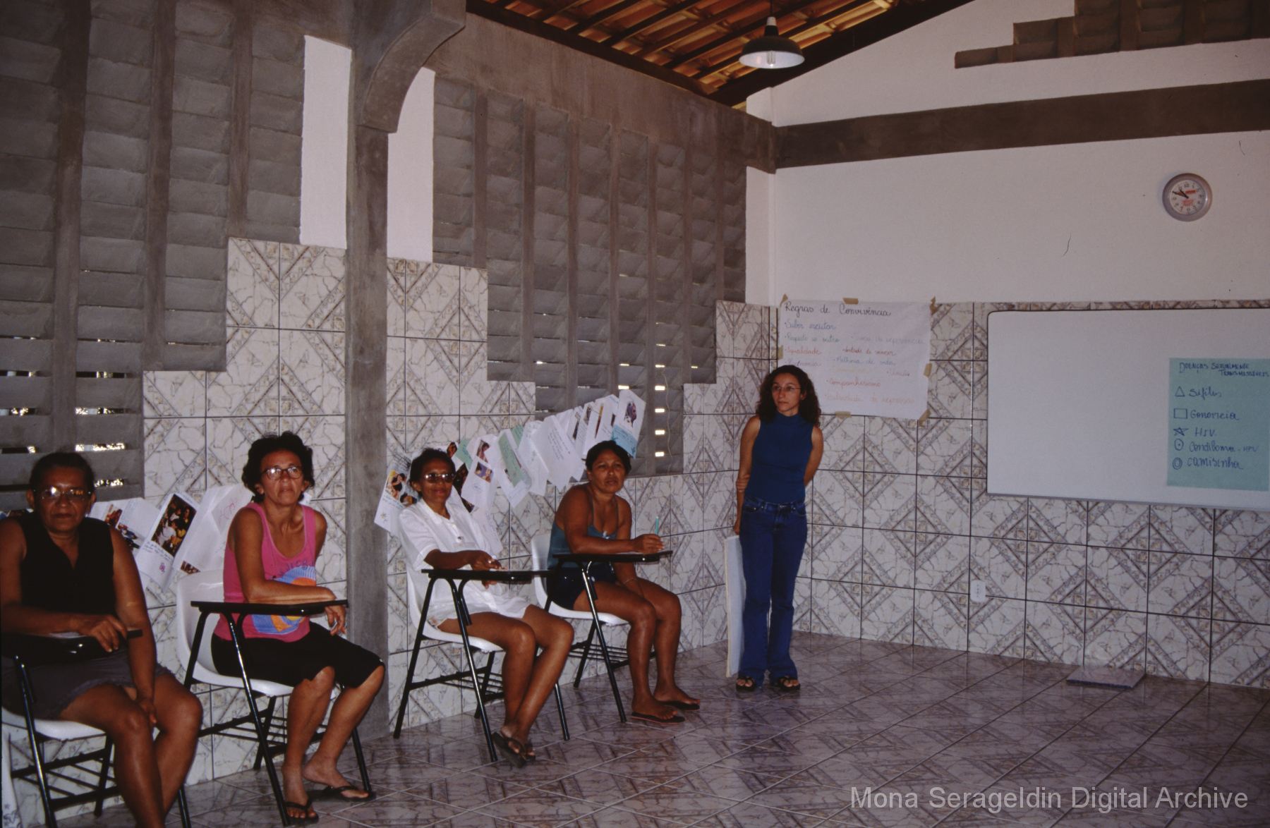 Photographs of the city of Fortaleza in the state of Ceará in northeast Brazil from August 1996. The gallery covers urban contexts and communities, a state housing project, and the Banco Palmas community bank. Images show meetings with community members, housing overviews and interiors, various public facilities, and overviews of the city and coastline. Mona Serageldin is pictured.