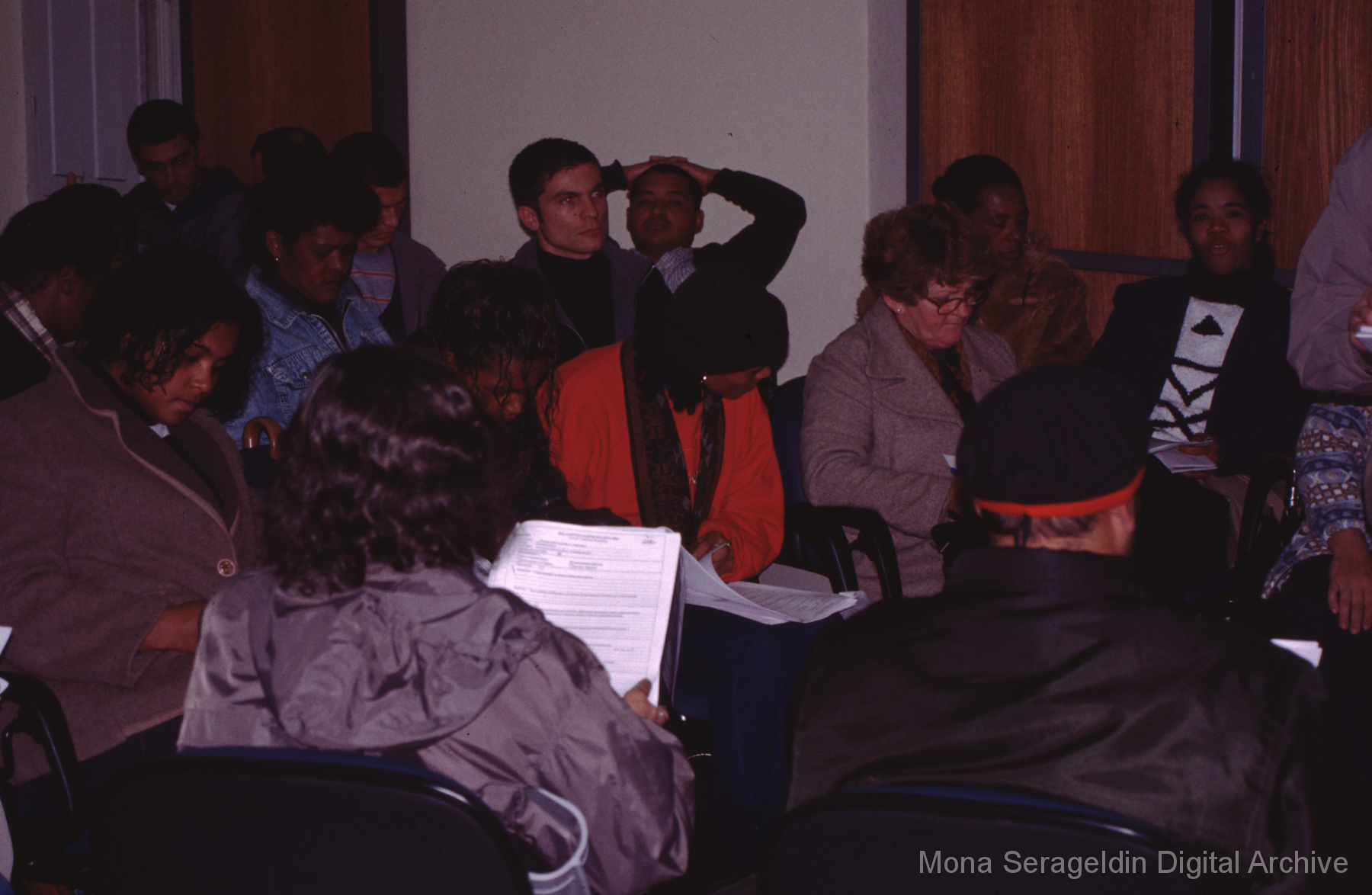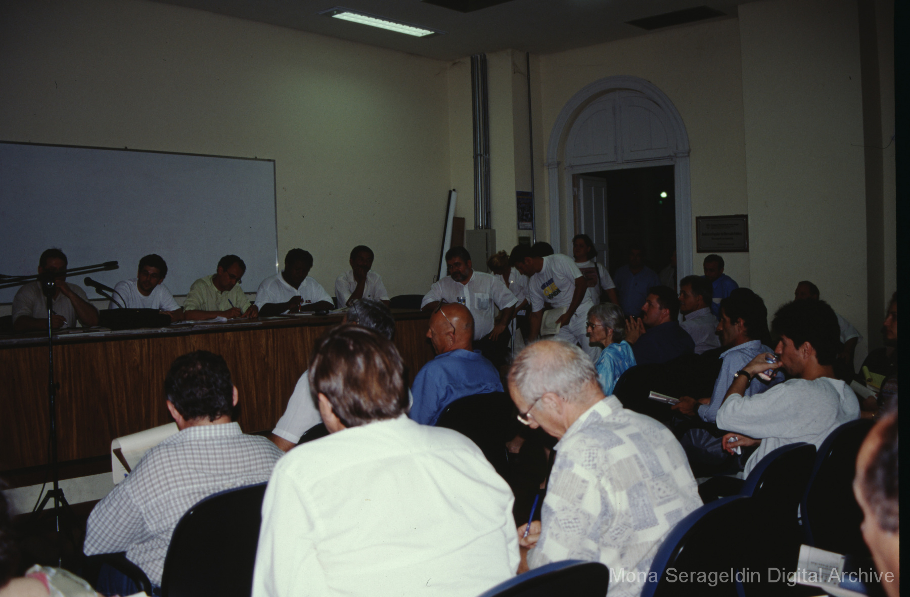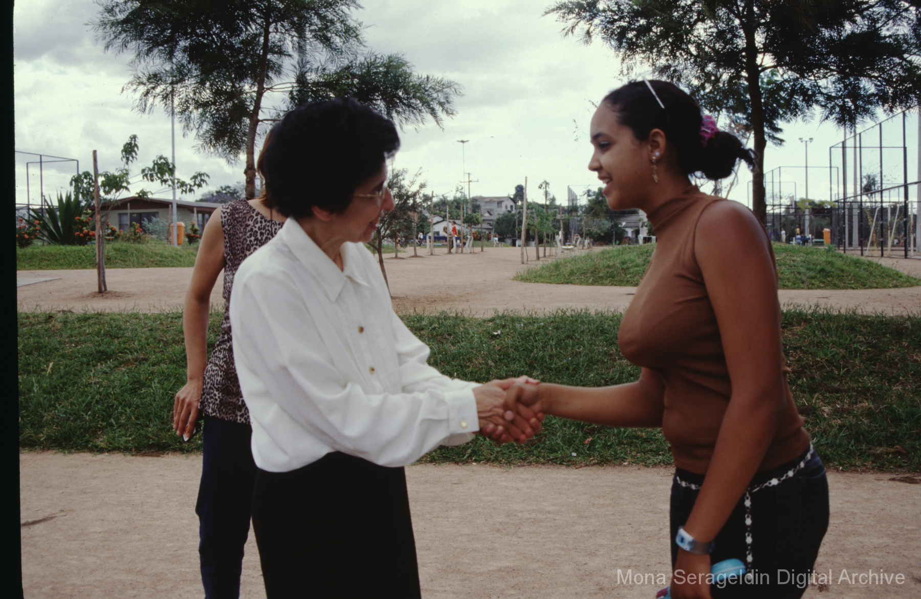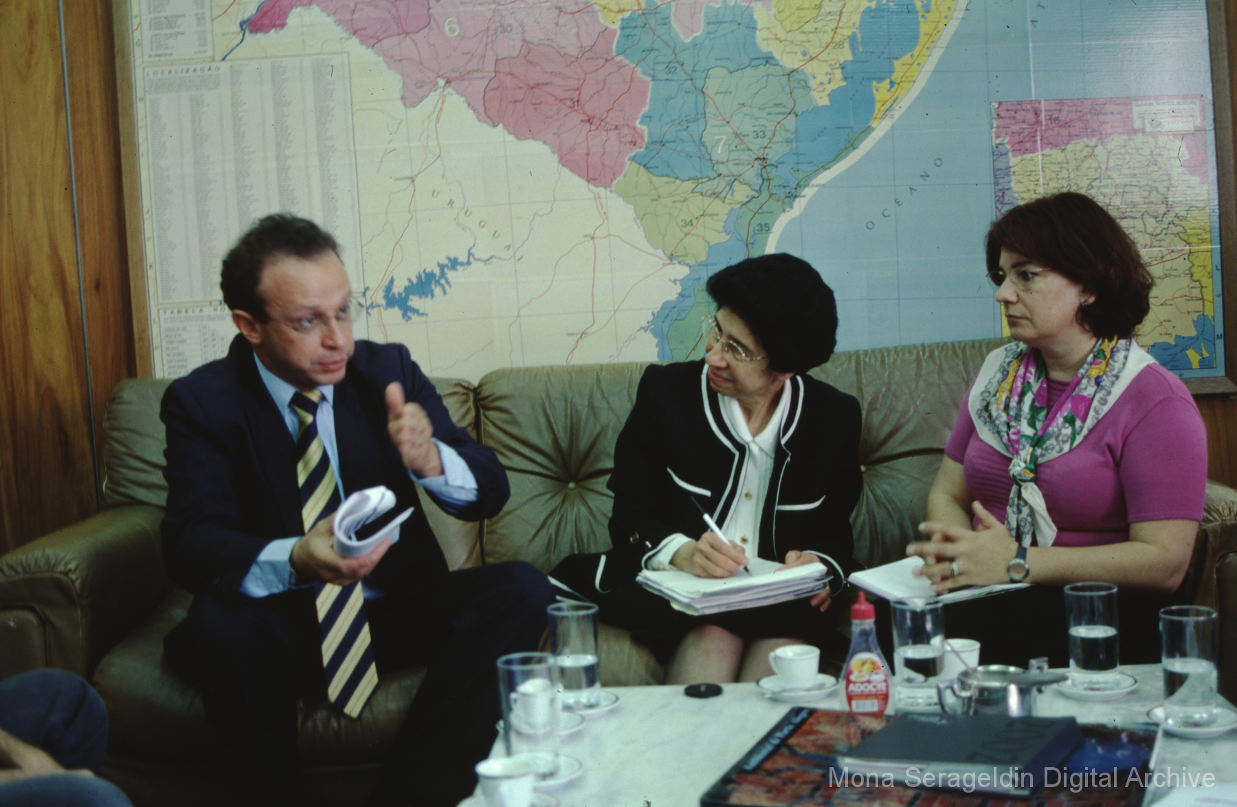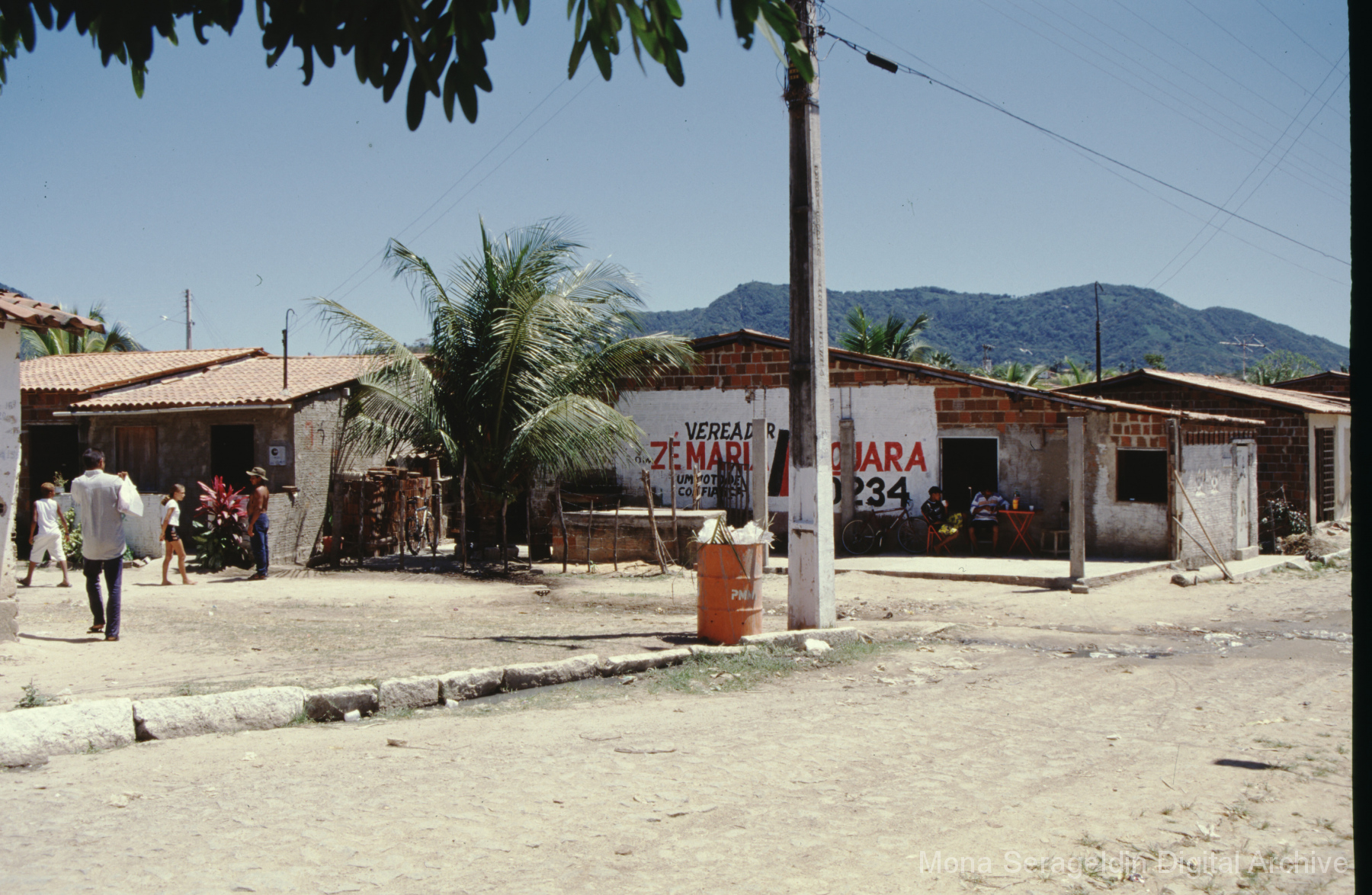 Photographs of the city of Fortaleza in the state of Ceará in northeast Brazil from August 1996. The gallery covers urban contexts and communities, a state housing project, and the Banco Palmas community bank. Images show meetings with community members, housing overviews and interiors, various public facilities, and overviews of the city and coastline. Mona Serageldin is pictured.