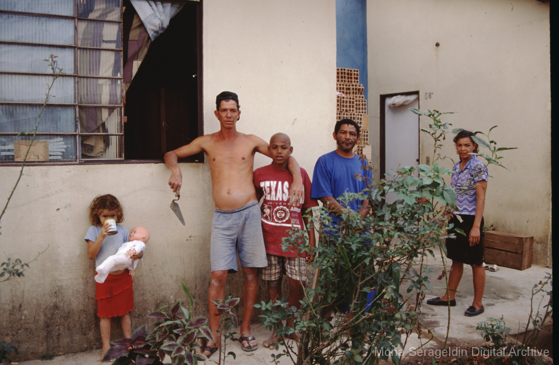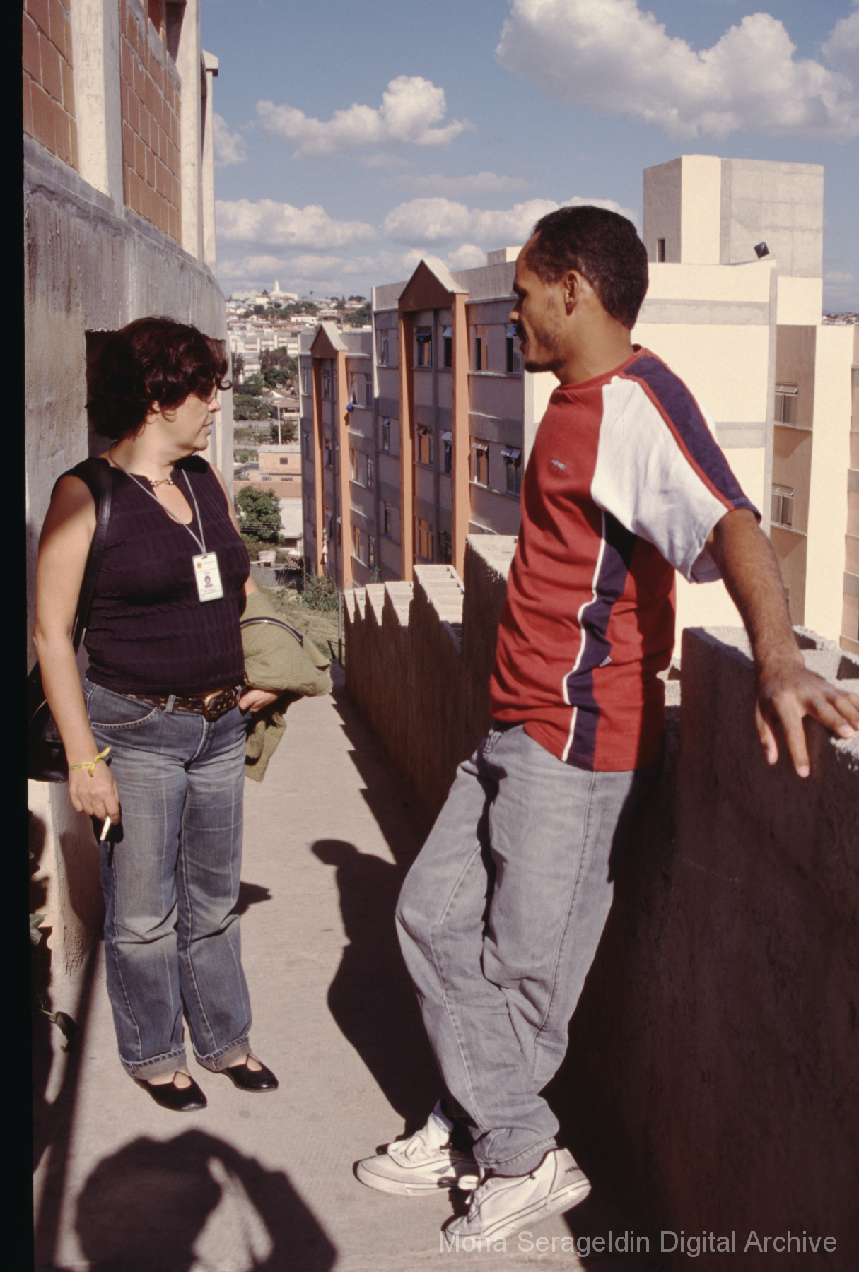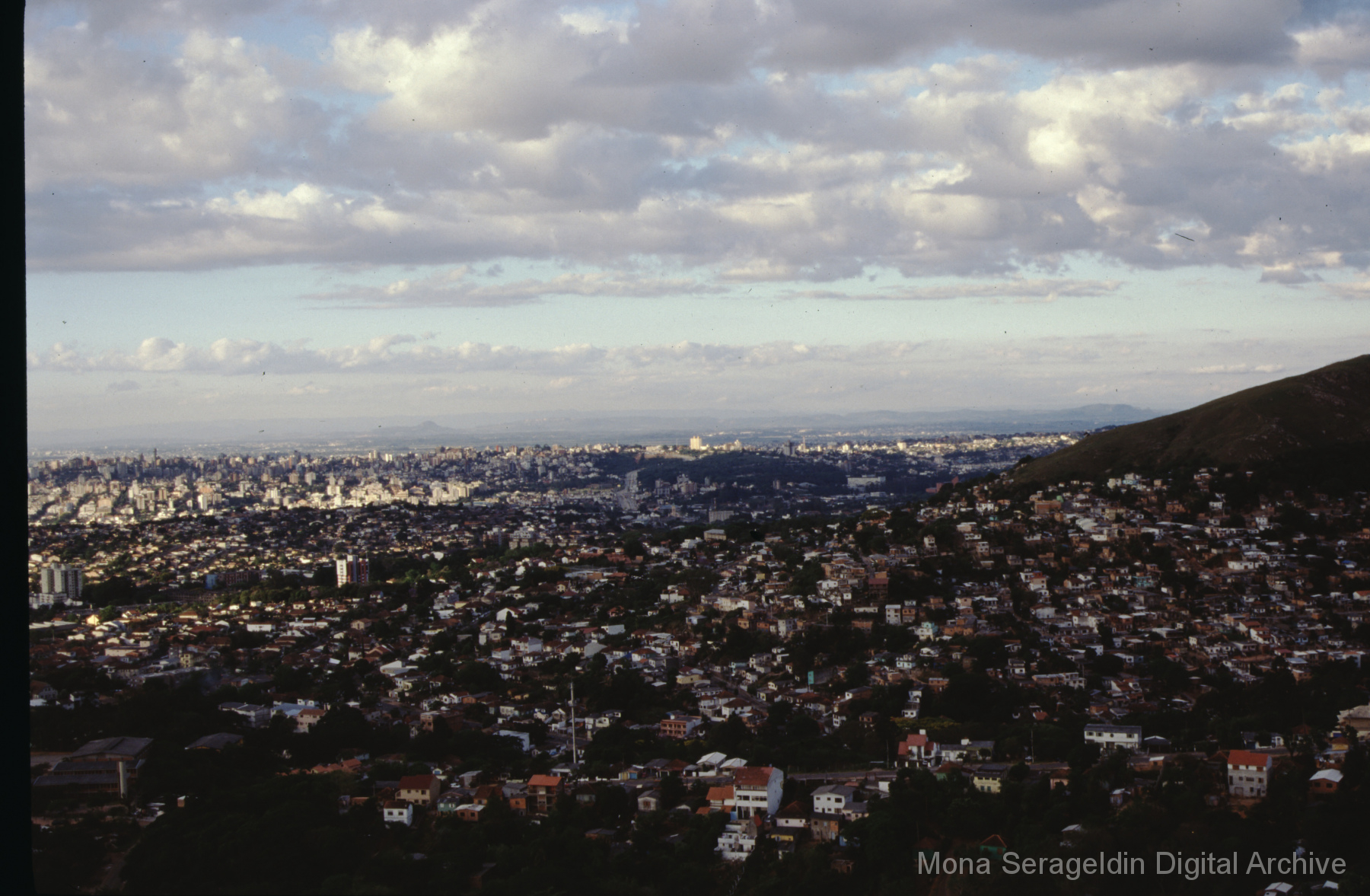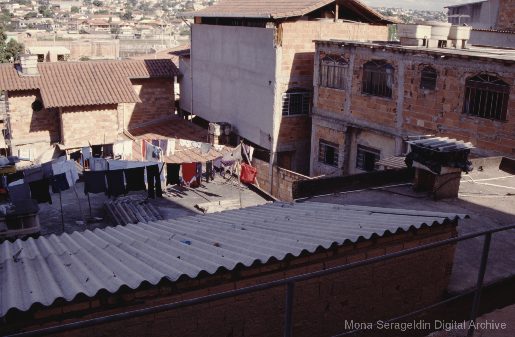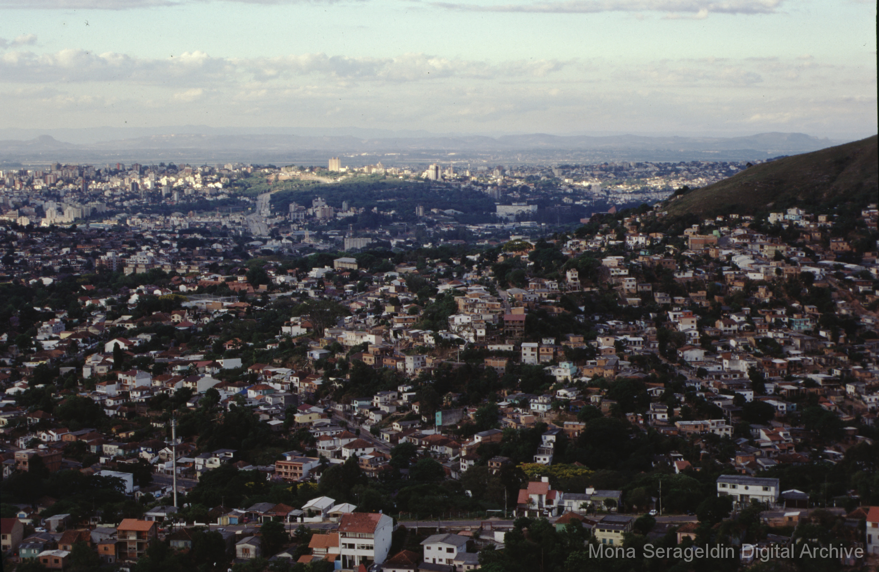 This gallery covers the city of Belo Horizonte in the state of Minas Gerais in southeast Brazil from 2001. Photographs document general views of the city, favelas (informal settlements) on the urban periphery, housing projects, and a Mutirão housing update (collective effort of a community coming together to complete a project). It also shows an MSC meeting for housing organizing (Movimento dos Sem Casas). Views include portraits of community members, housing overviews and interiors, and housing construction.