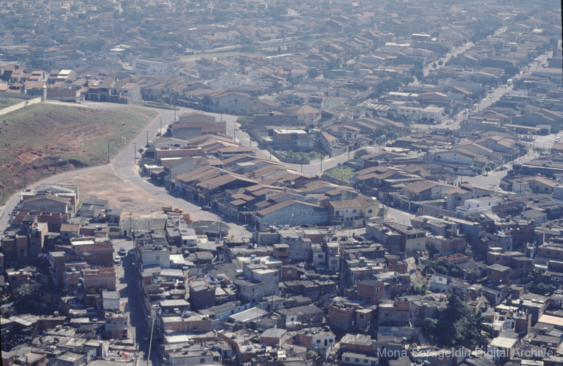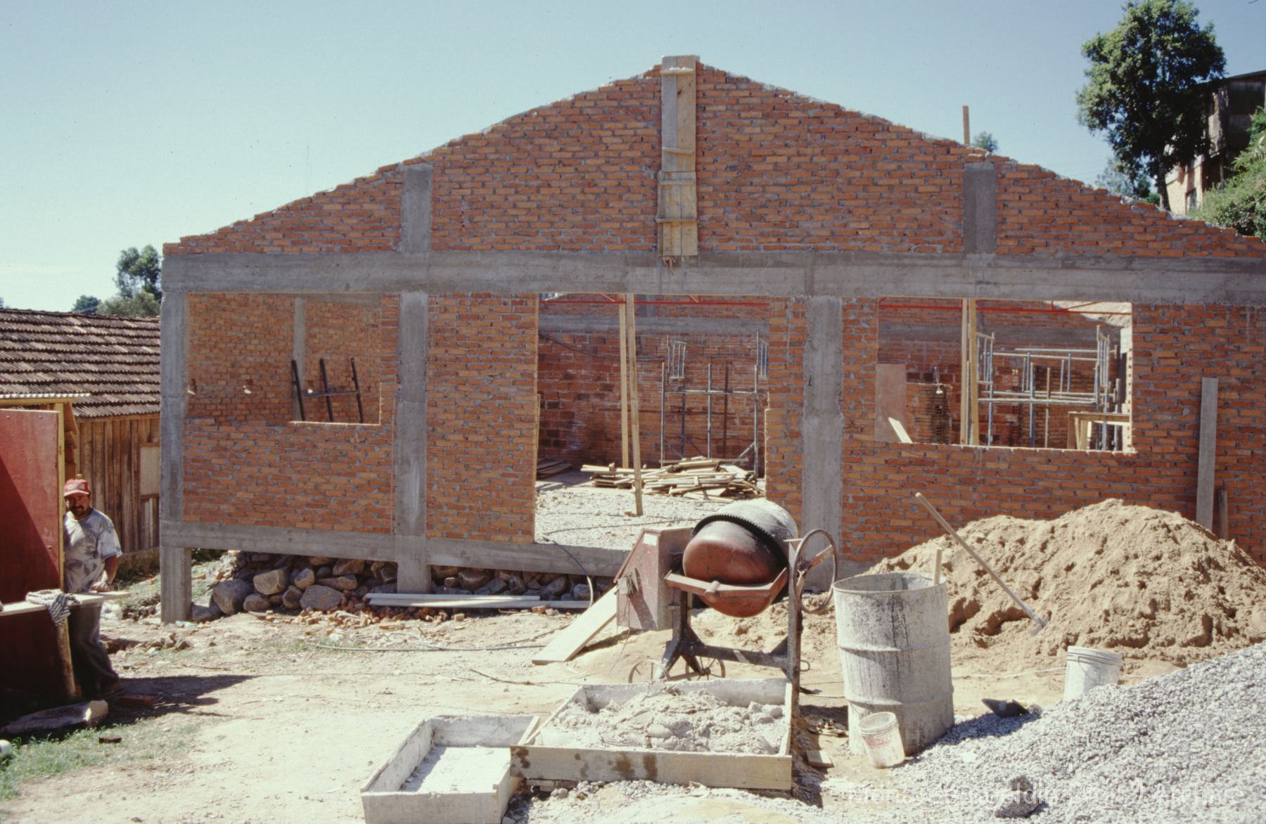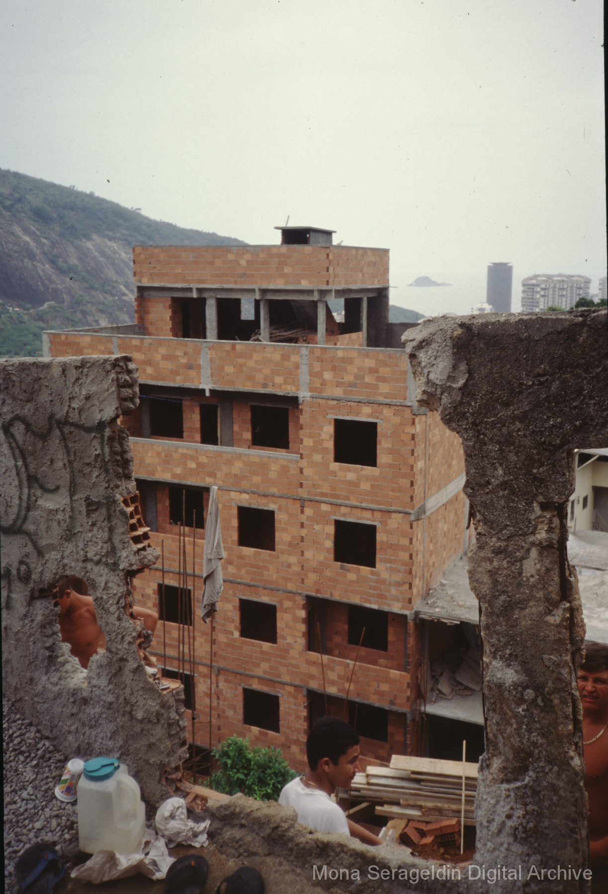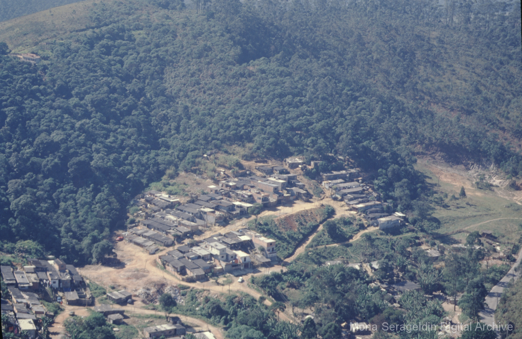 This gallery covers the city of Belo Horizonte in the state of Minas Gerais in southeast Brazil from 2001. Photographs document general views of the city, favelas (informal settlements) on the urban periphery, housing projects, and a Mutirão housing update (collective effort of a community coming together to complete a project). It also shows an MSC meeting for housing organizing (Movimento dos Sem Casas). Views include portraits of community members, housing overviews and interiors, and housing construction.