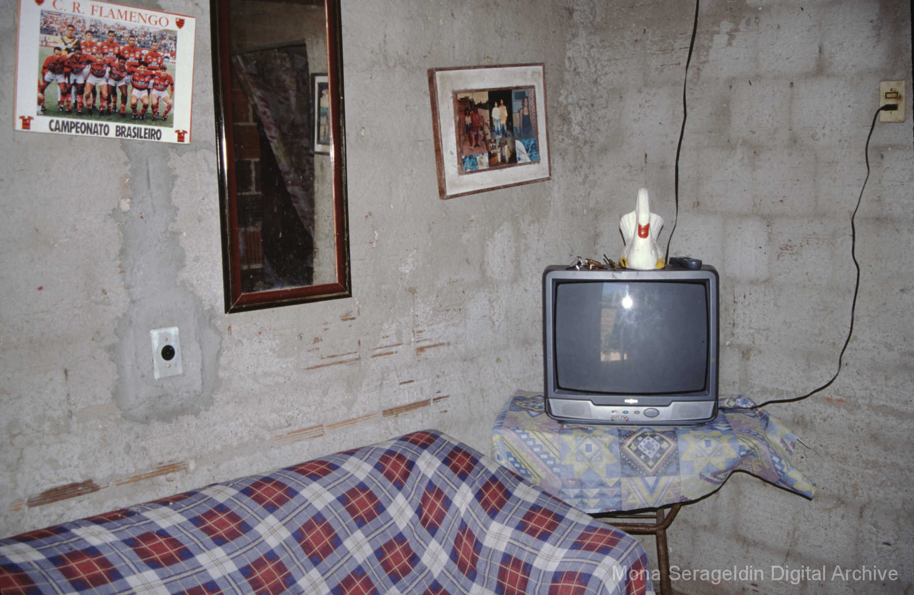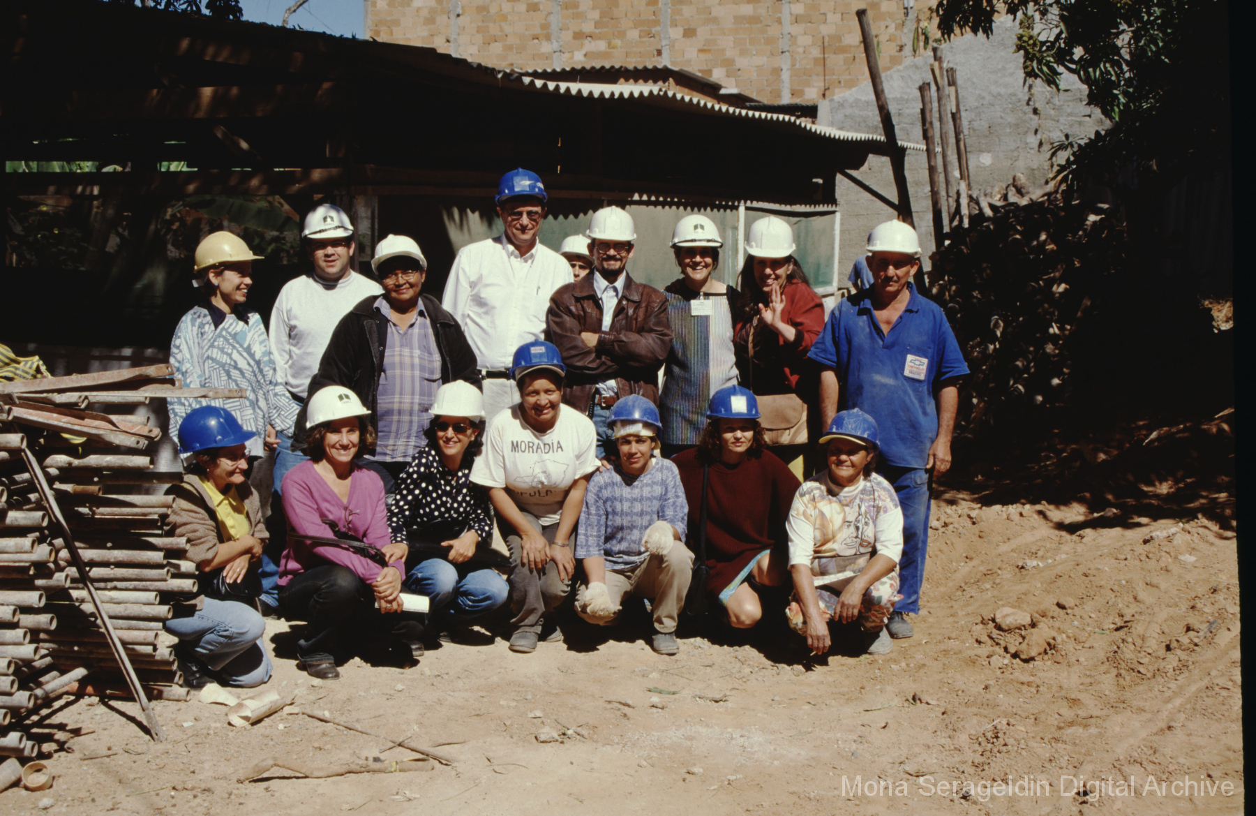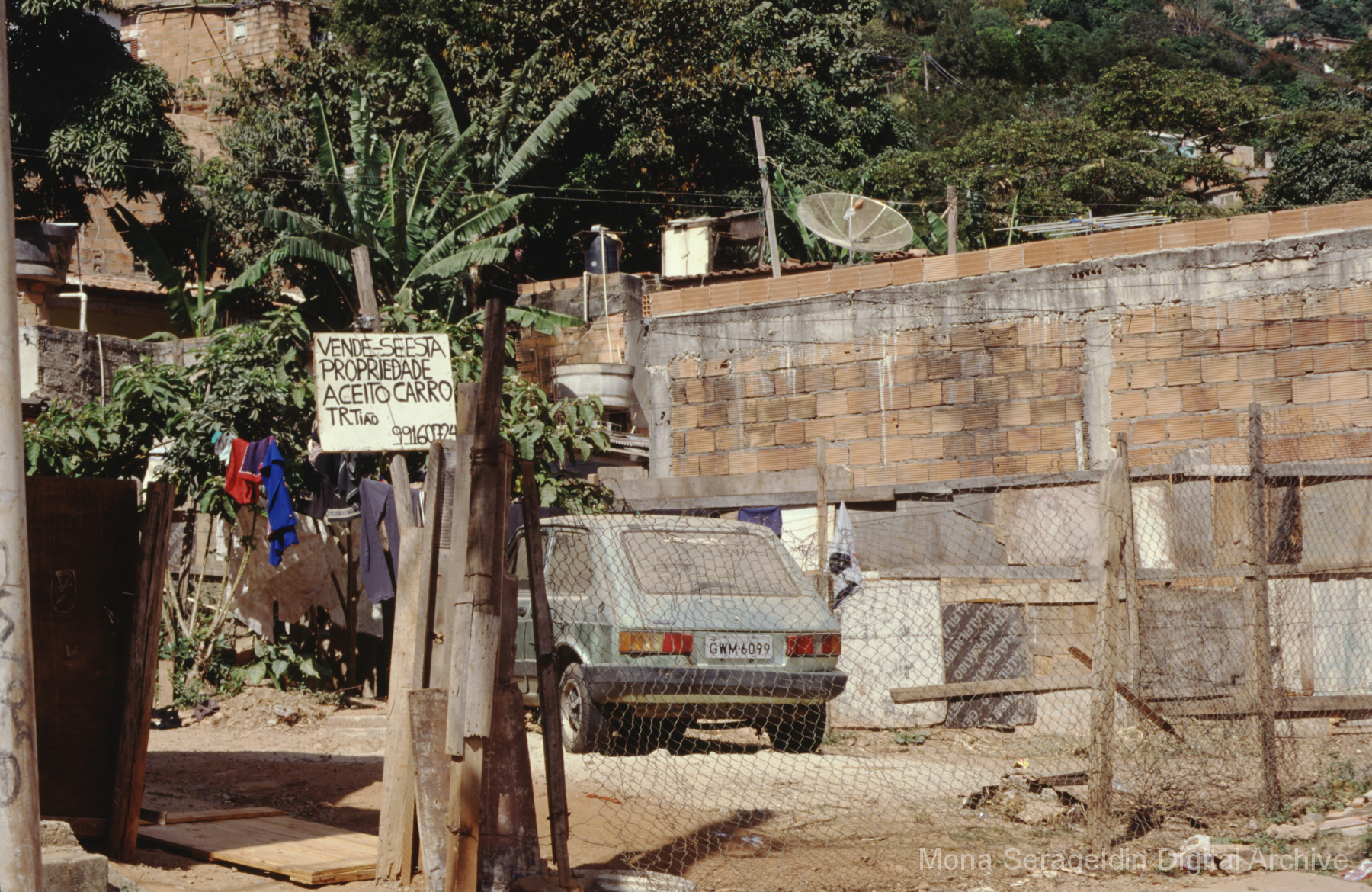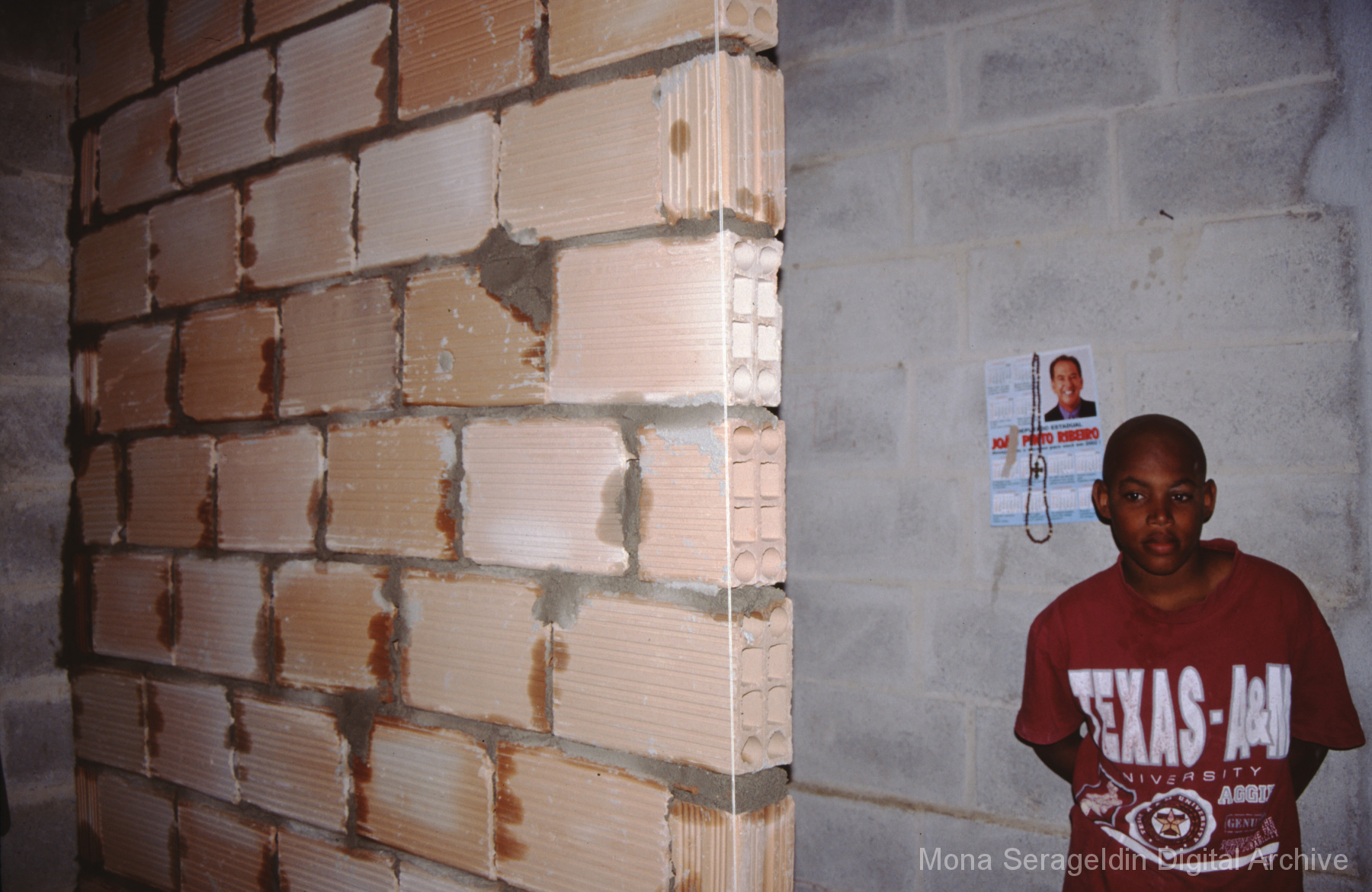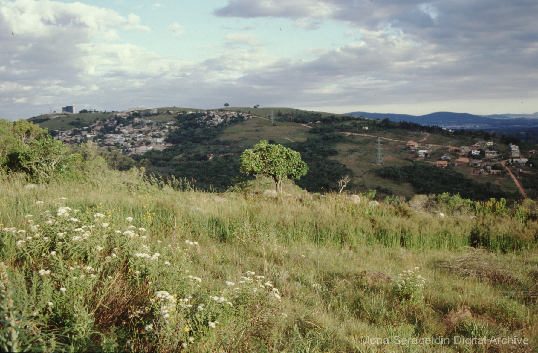 This gallery covers the city of Belo Horizonte in the state of Minas Gerais in southeast Brazil from 2001. Photographs document general views of the city, favelas (informal settlements) on the urban periphery, housing projects, and a Mutirão housing update (collective effort of a community coming together to complete a project). It also shows an MSC meeting for housing organizing (Movimento dos Sem Casas). Views include portraits of community members, housing overviews and interiors, and housing construction.