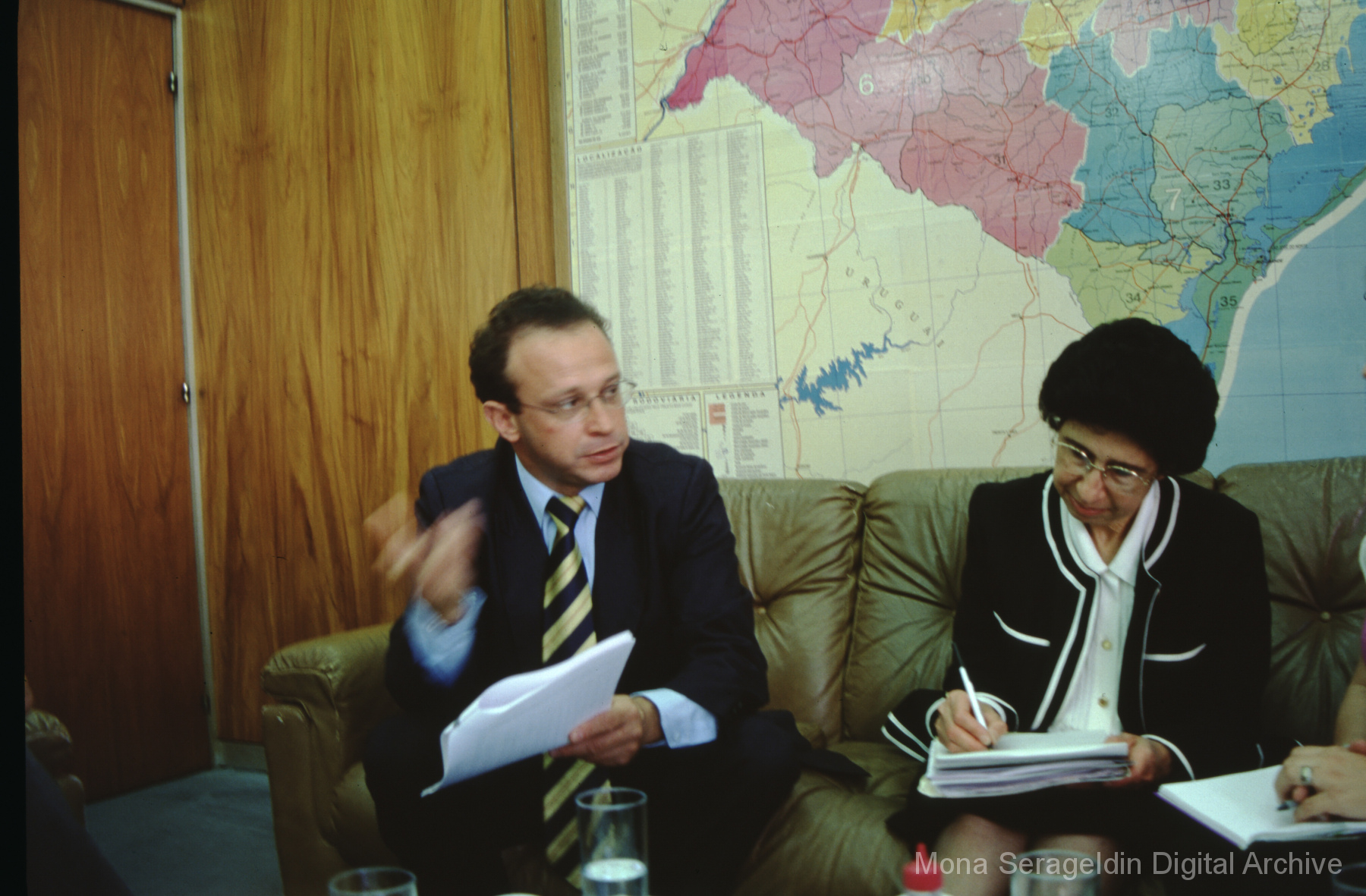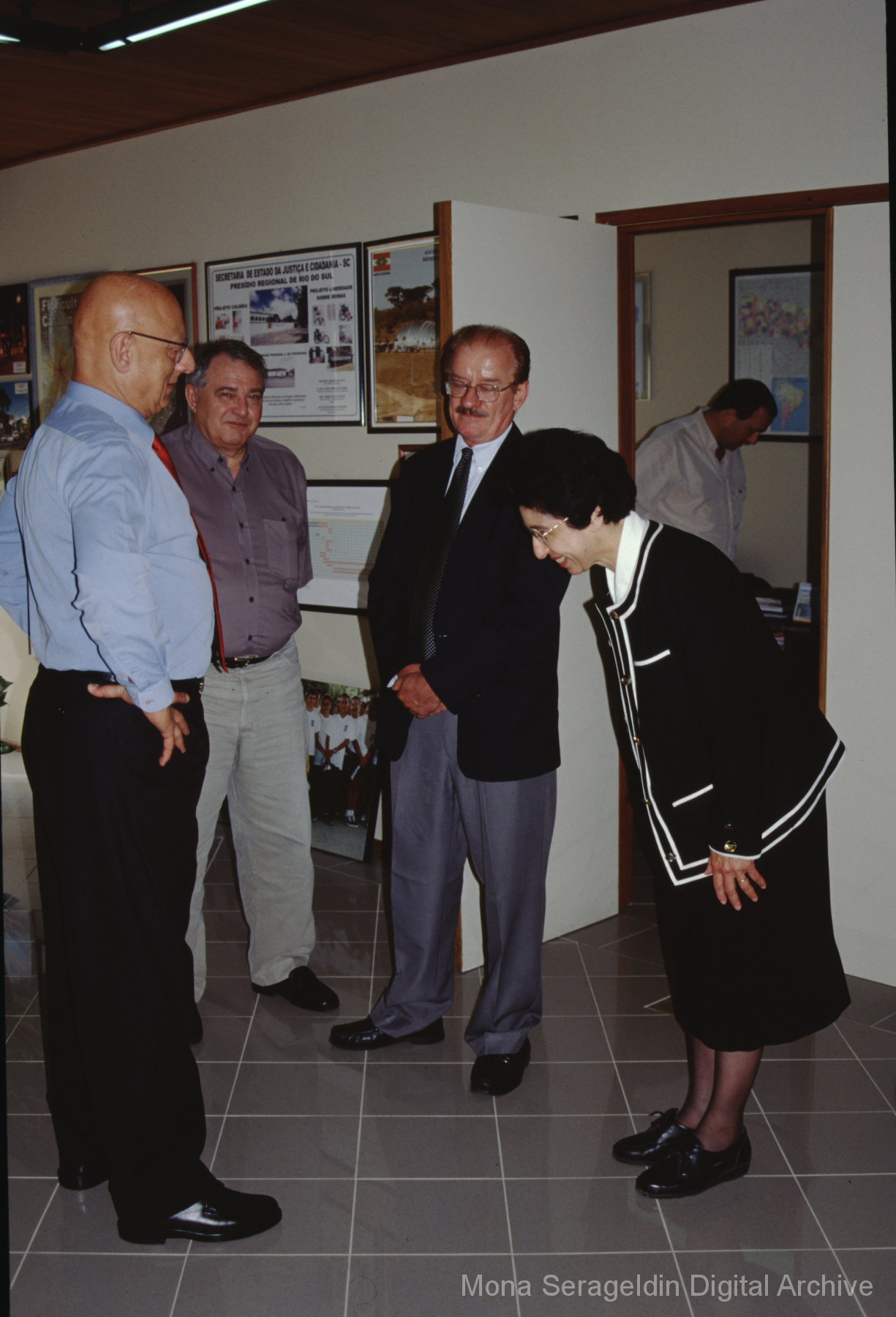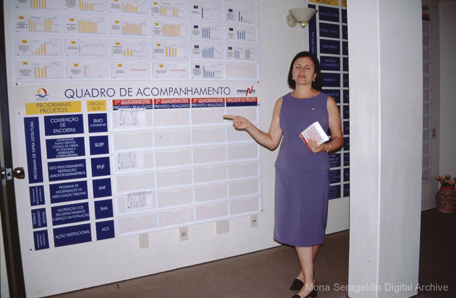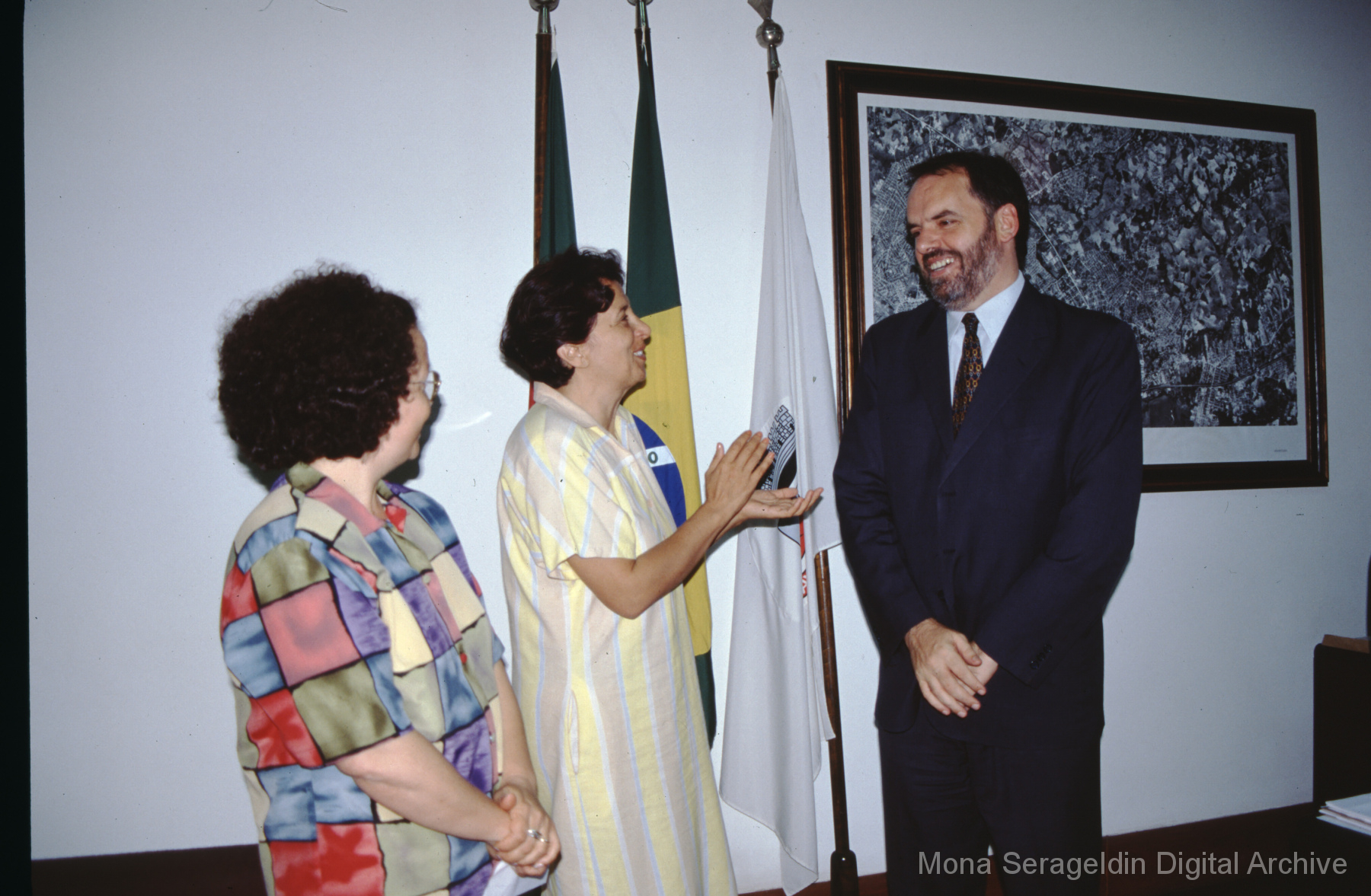 This gallery covers Florianópolis, the capital city of the state of Santa Catarina state in southern Brazil, from 2001. It shows portraits with the government officials for Santa Catarina and Florianopolis, including the state Environment Office, and Florianopolis historic center and resort beach. Mona Serageldin is pictured.