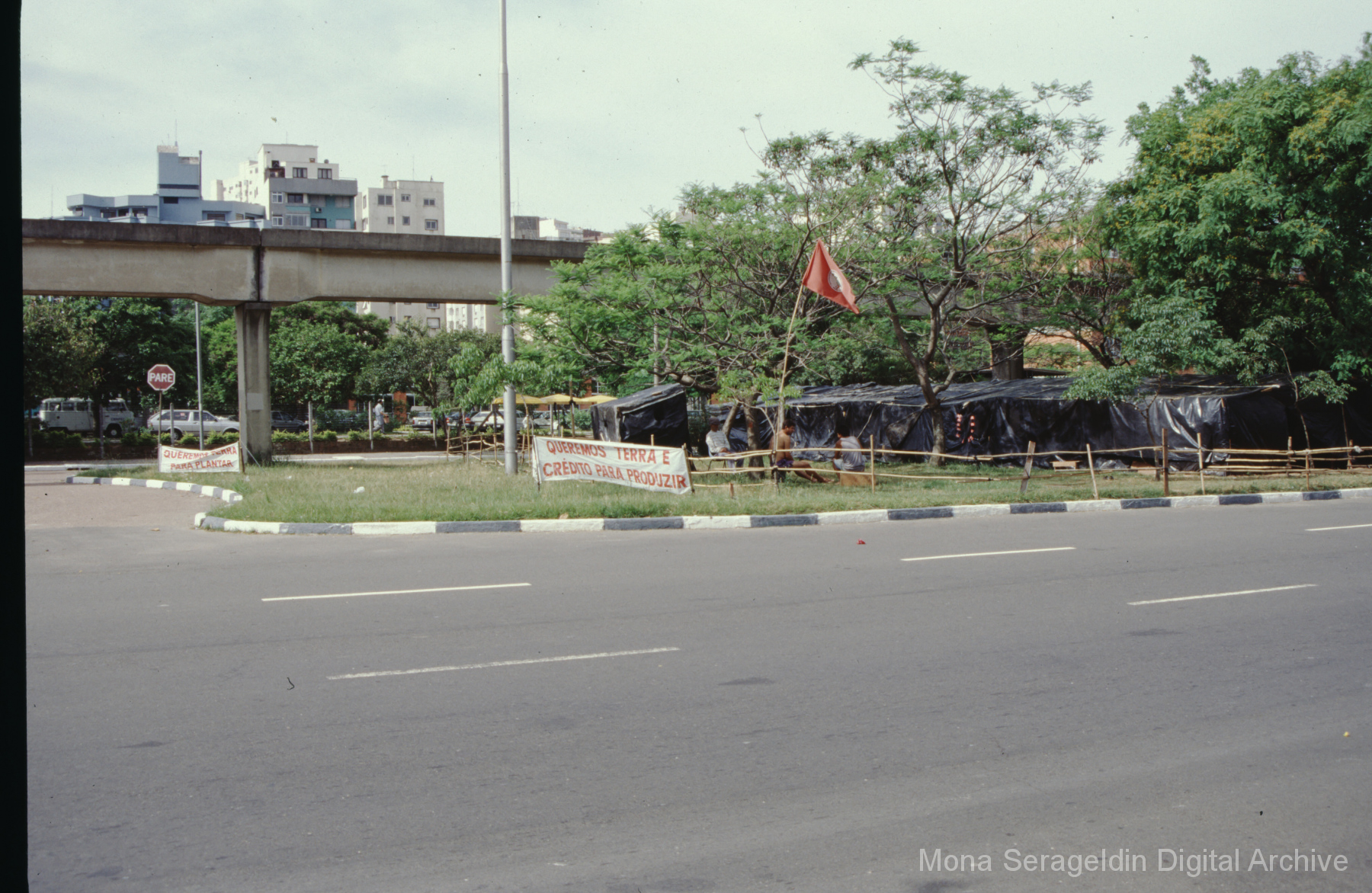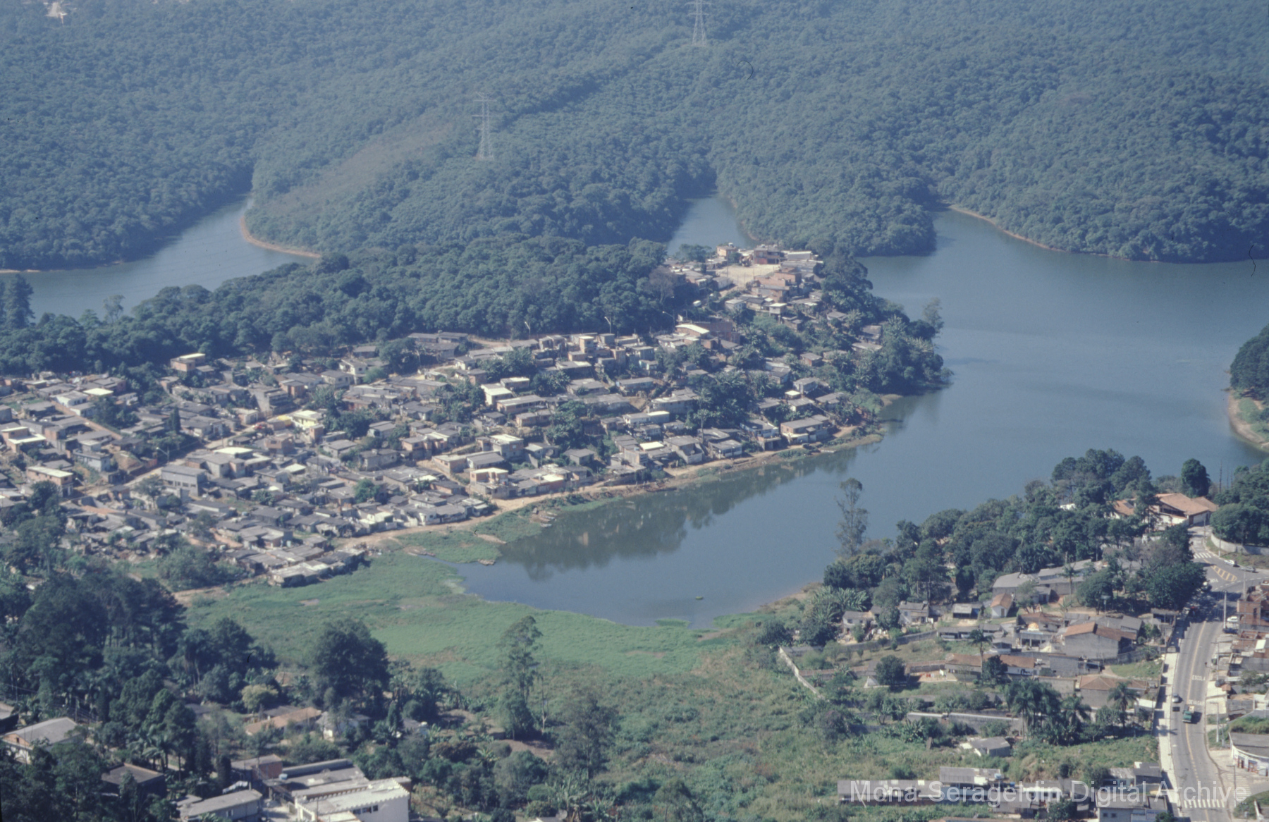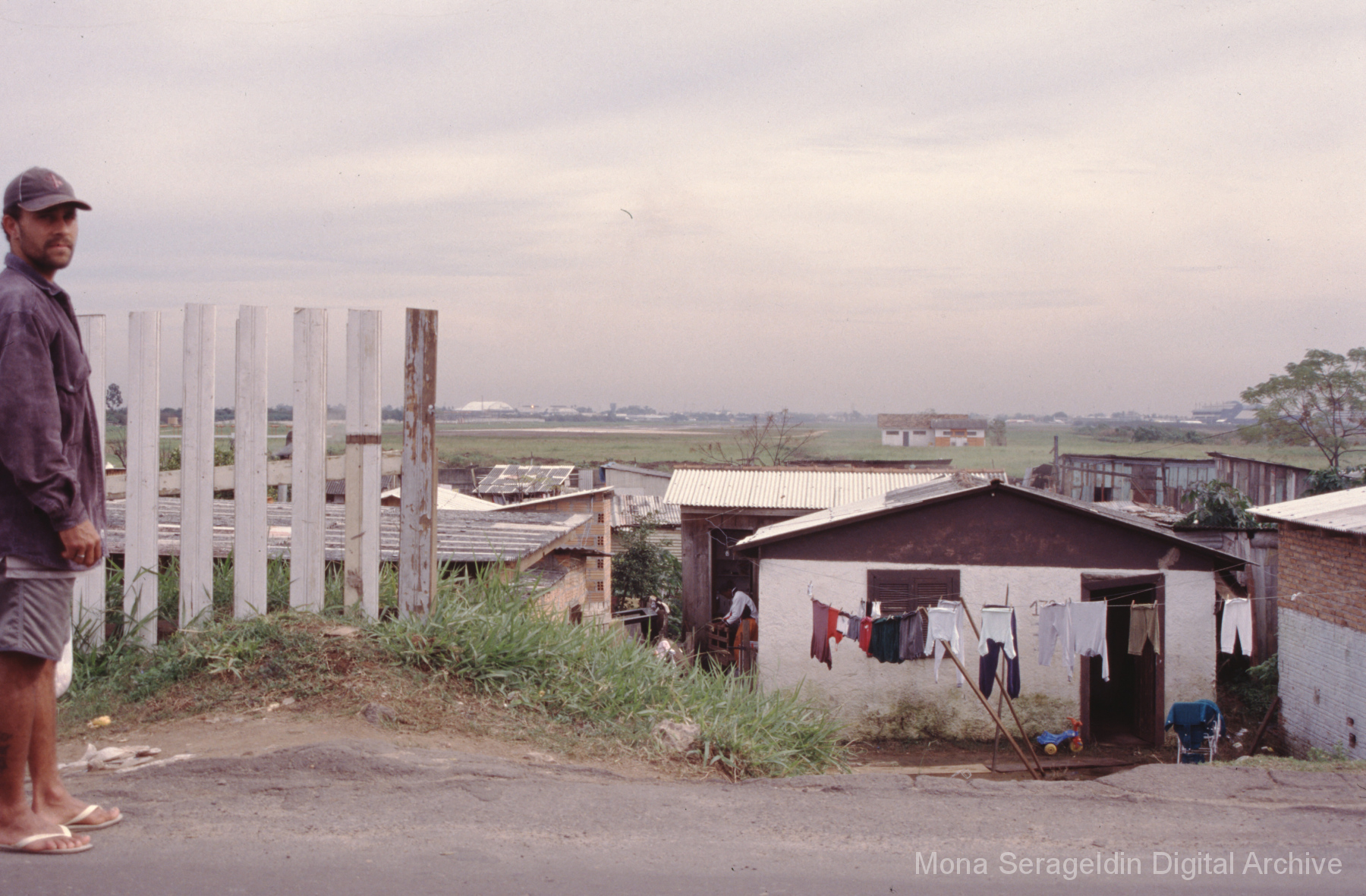 This gallery covers Porto Alegre, the capital city of the state of Rio Grande do Sul state in southern Brazil from around 2001. The photographs document participatory budgeting meetings and related initiatives, development corridor region of the city, and social inclusion projects. Views include portraits of municipal officials and meeting participants, landscapes showing natural reserves and reserve encroachments, and exterior views of housing and facilities projects, along with aerial views of river and urban environments. Images also show a land reform demonstration encampment of the MST Landless Workers’ Movement (Movimento dos Trabalhadores Rurais Sem Terra). Mona Serageldin is pictured.
