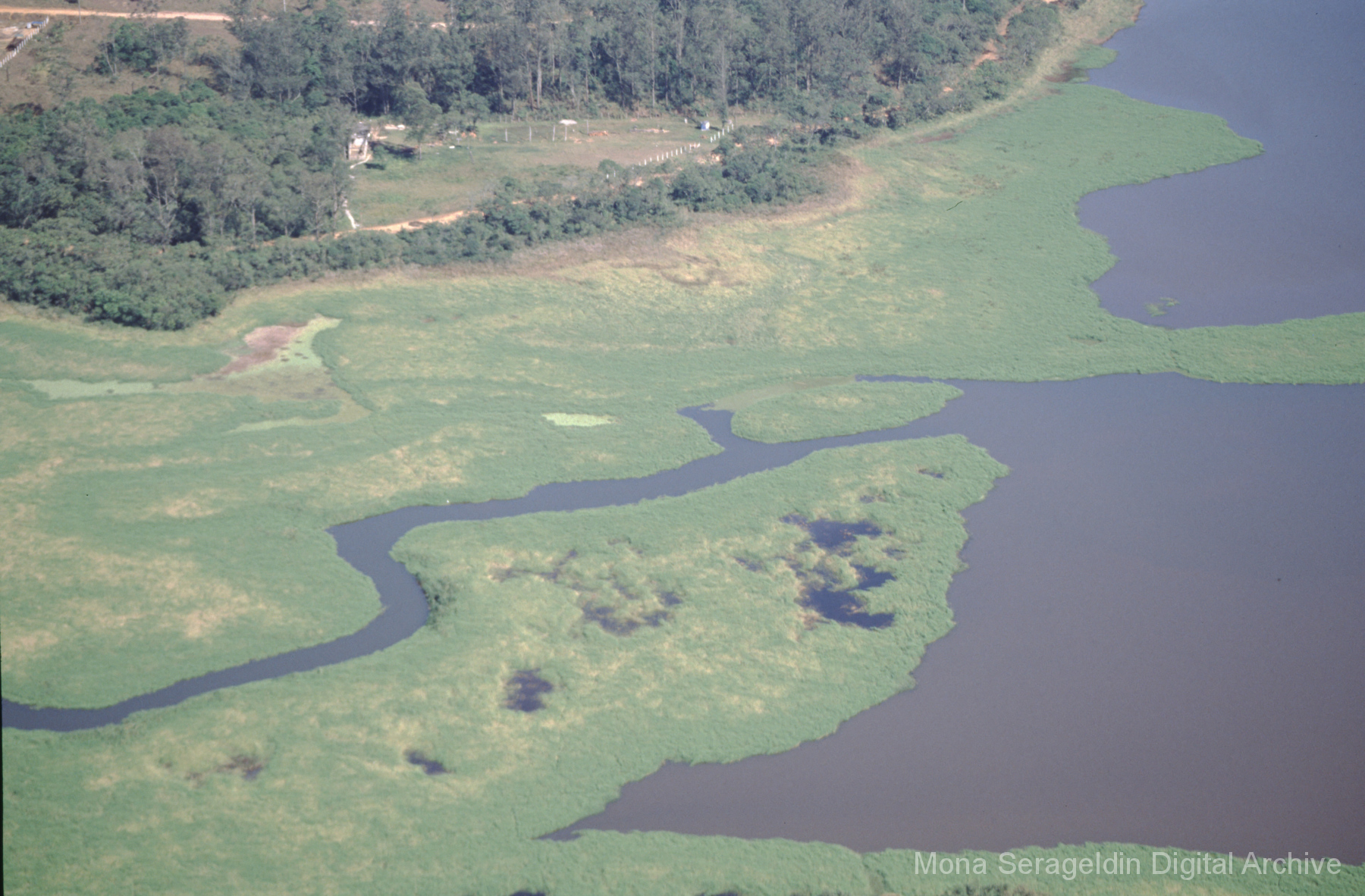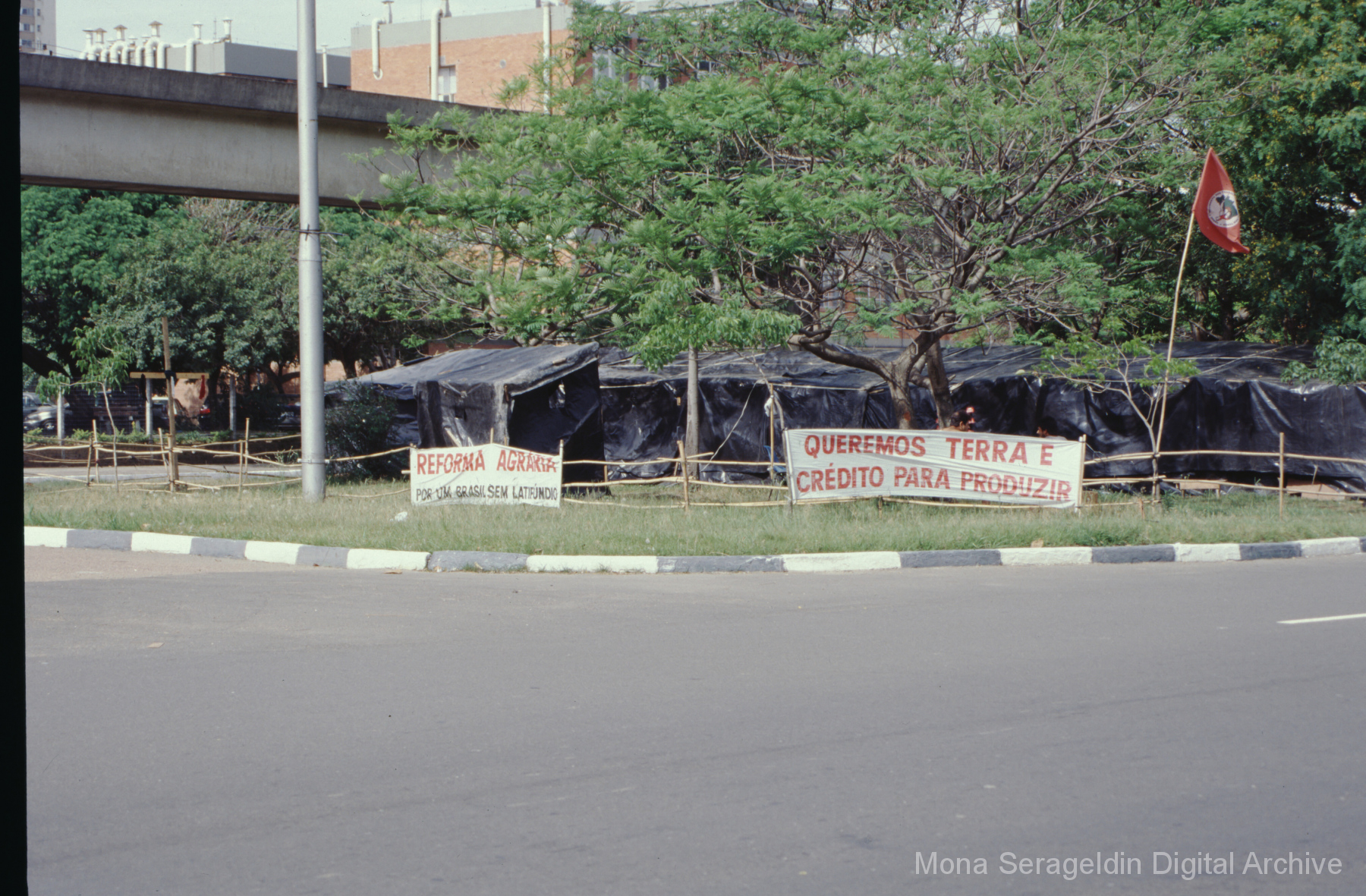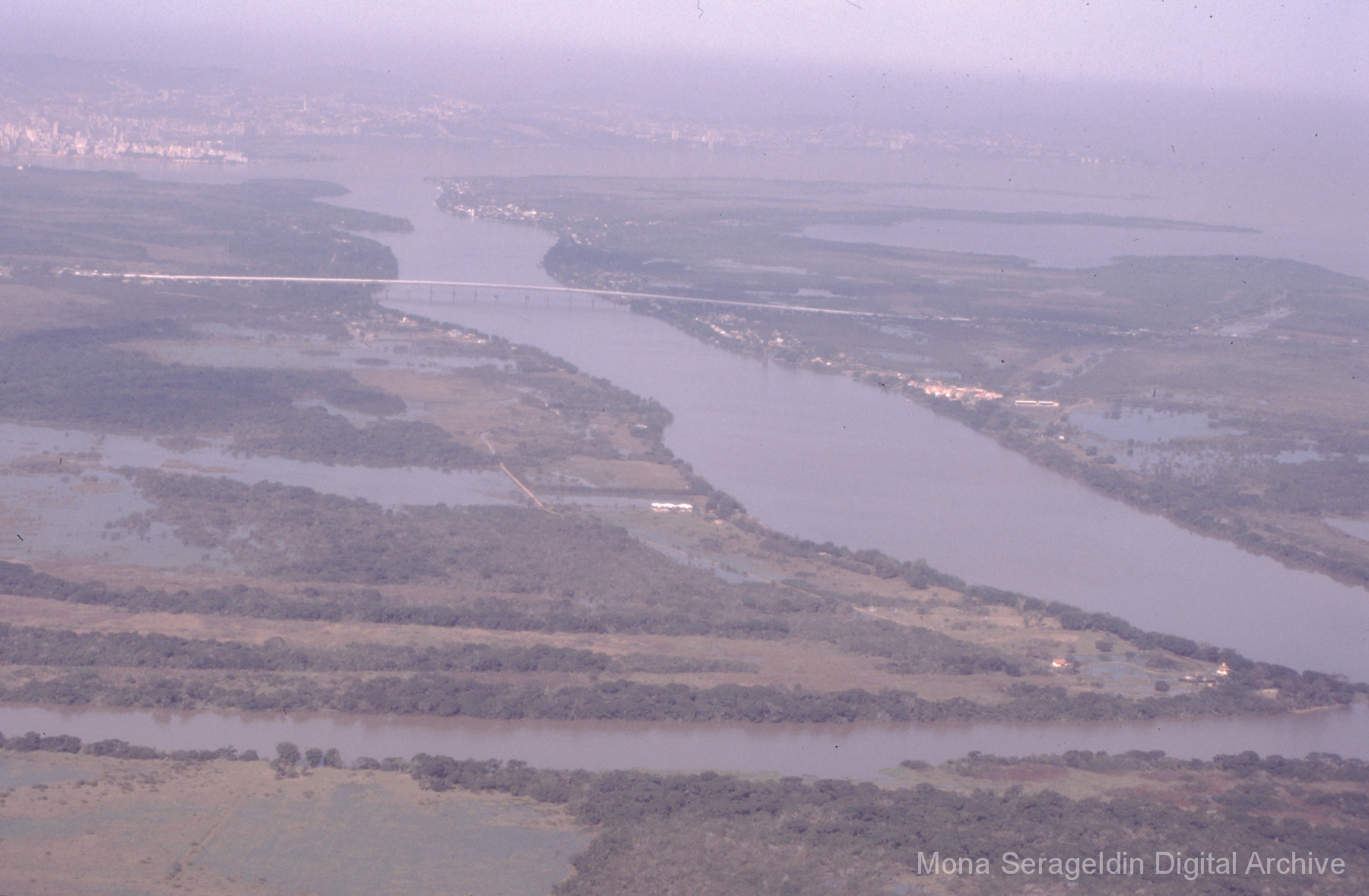 This gallery covers Porto Alegre, the capital city of the state of Rio Grande do Sul state in southern Brazil from around 2001. The photographs document participatory budgeting meetings and related initiatives, development corridor region of the city, and social inclusion projects. Views include portraits of municipal officials and meeting participants, landscapes showing natural reserves and reserve encroachments, and exterior views of housing and facilities projects, along with aerial views of river and urban environments. Images also show a land reform demonstration encampment of the MST Landless Workers’ Movement (Movimento dos Trabalhadores Rurais Sem Terra). Mona Serageldin is pictured.