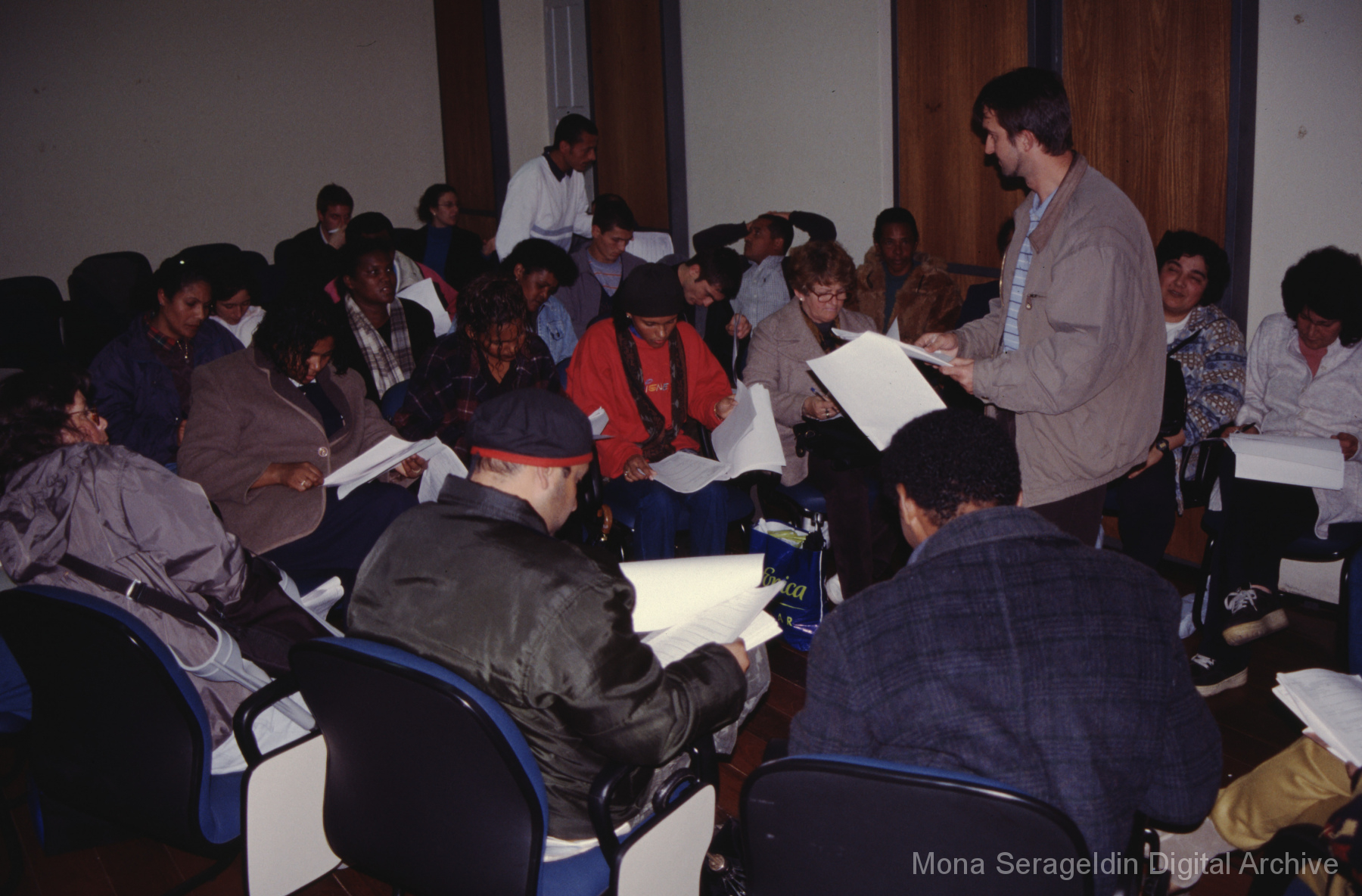 Photographs of the city of Juiz de Fora in the state of Minas Gerais in southeast Brazil from 2001. The gallery covers a participatory budget training program, housing projects, and a Young Gardeners program. Views primarily include housing interiors and exteriors and portraits of program participants. Serageldin is pictured.