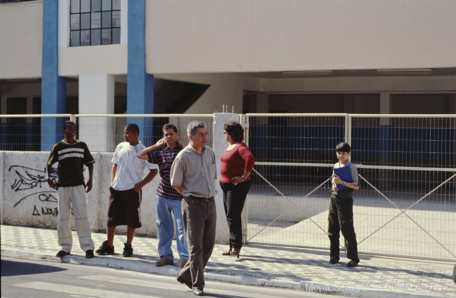 Photographs of the neighboring municipalities of Barra Mansa and Volta Redonda, both in the state of Rio de Janeiro in southeast Brazil, from around 2001. The gallery shows a project to engaging young people in urban development topics, a rural agricultural project, and general views of both locations. Views include portraits of project participants, agricultural landscapes, school facades, and views over Volta Redonda from a hill. Mona Serageldin is pictured.
