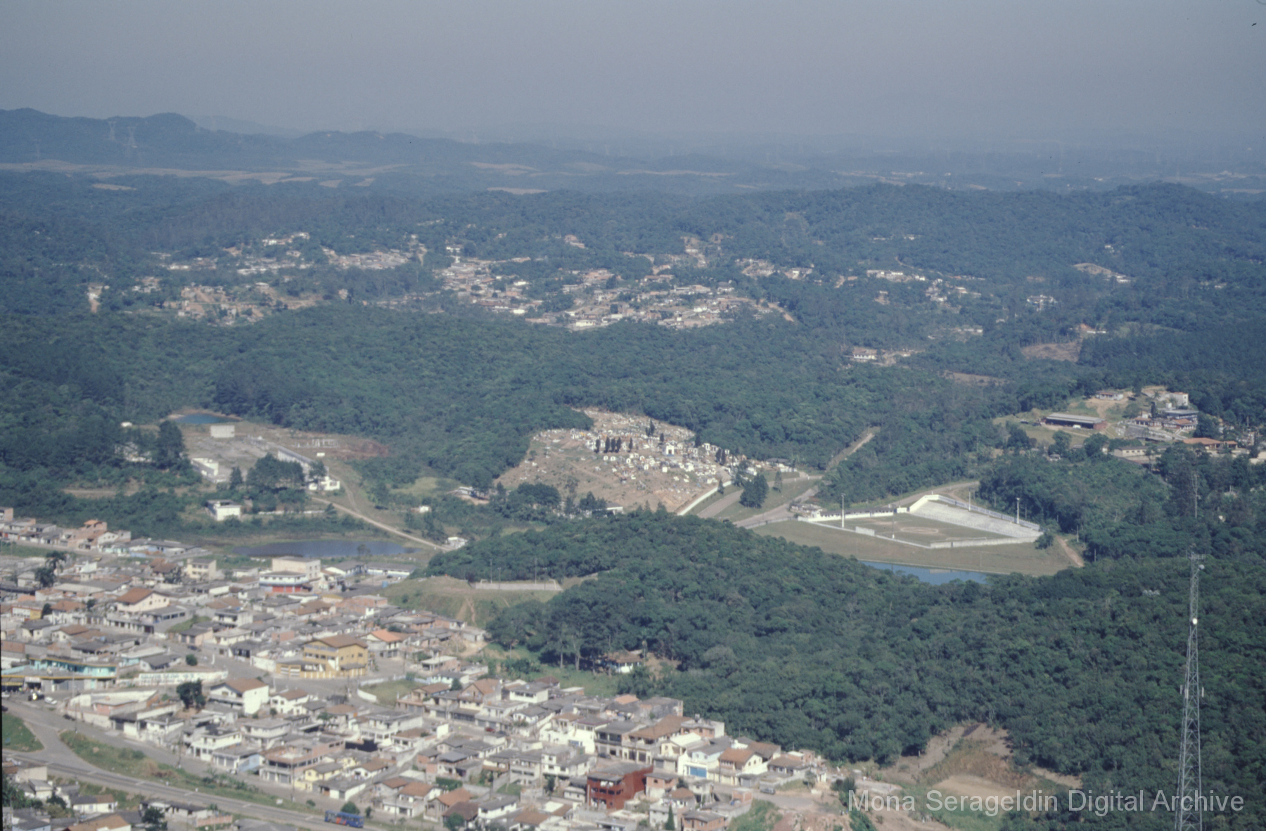 This gallery covers the city of Santo André in the state of São Paulo in southeast Brazil from around 2001. Photographs document general views of the city downtown (as well as some of São Paulo city), surrounding ecological zones and industrial zones, aerial views of various urban and natural landscapes, and examples of participatory budgeting for the city. These latter include a public open space project and a women’s training center. Views of these include portraits of meetings with community members, playground areas, and interiors of the training center.