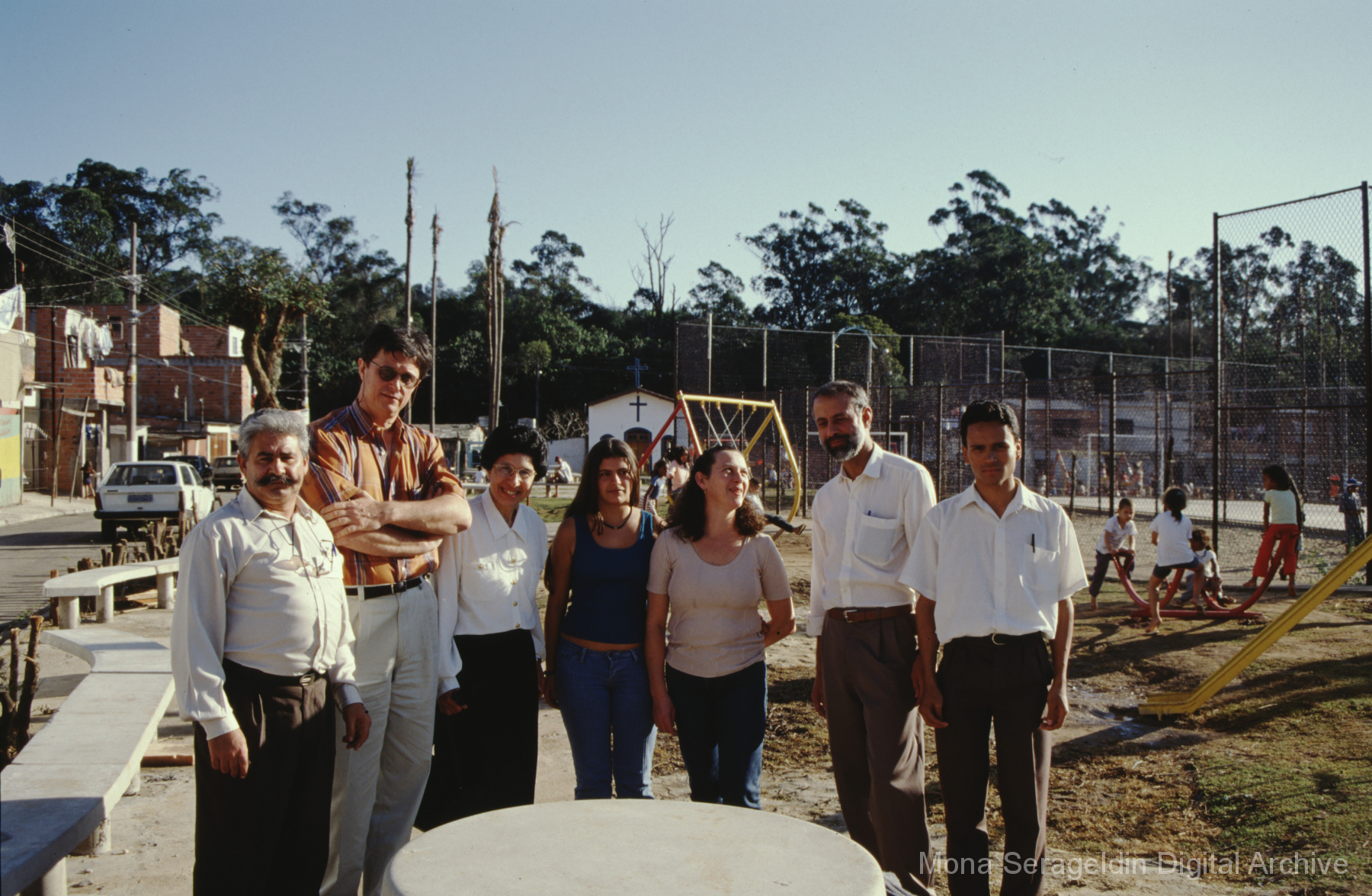 This gallery documents community development in the municipality of Gravataí in the state of Rio Grande do Sul in southern Brazil from around 2001. Images include portraits of the community development team and municipal officials, as well as examples of municipal facilities improvements through participatory budgeting, including a health center and park. Serageldin is pictured.
