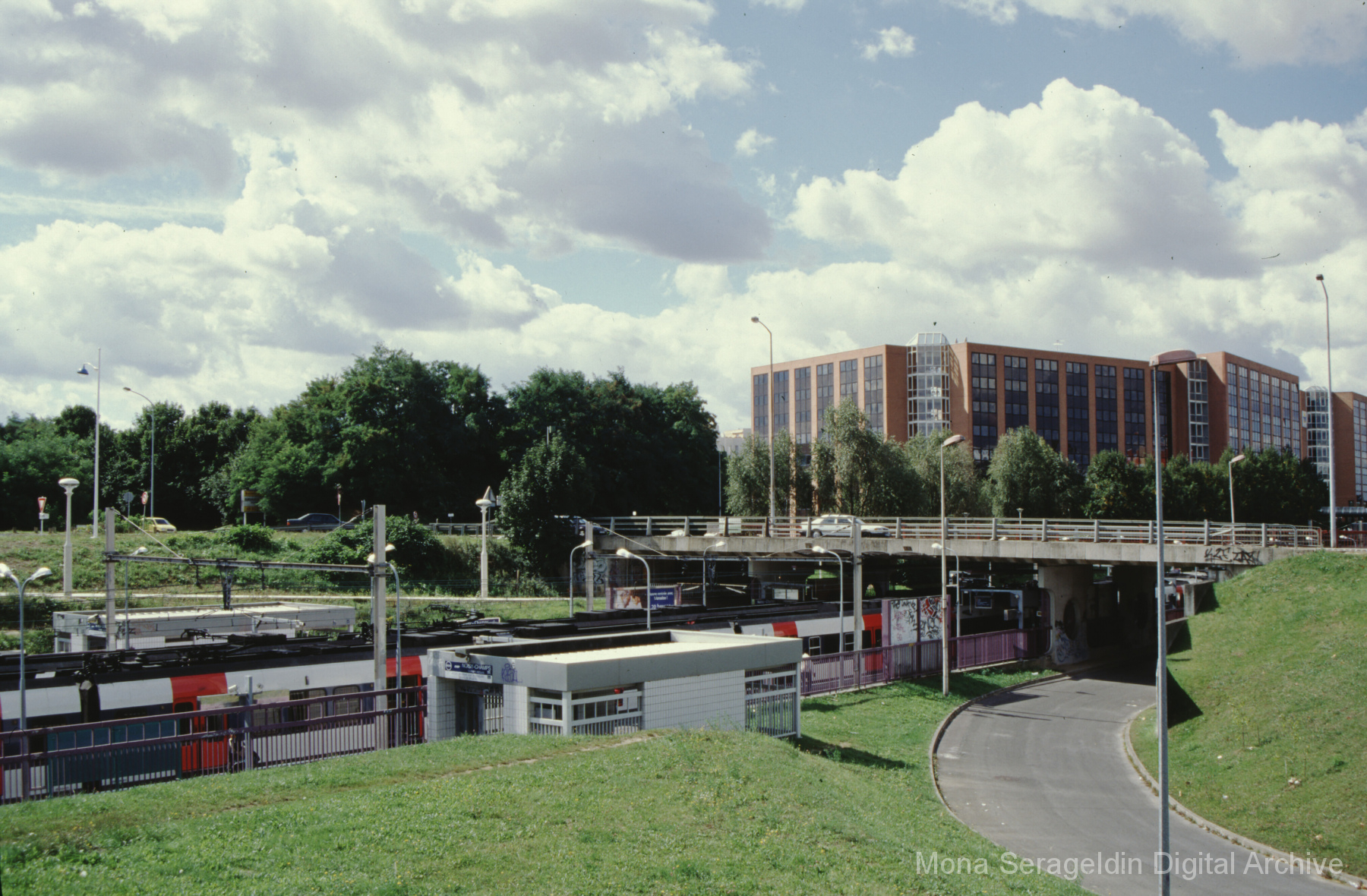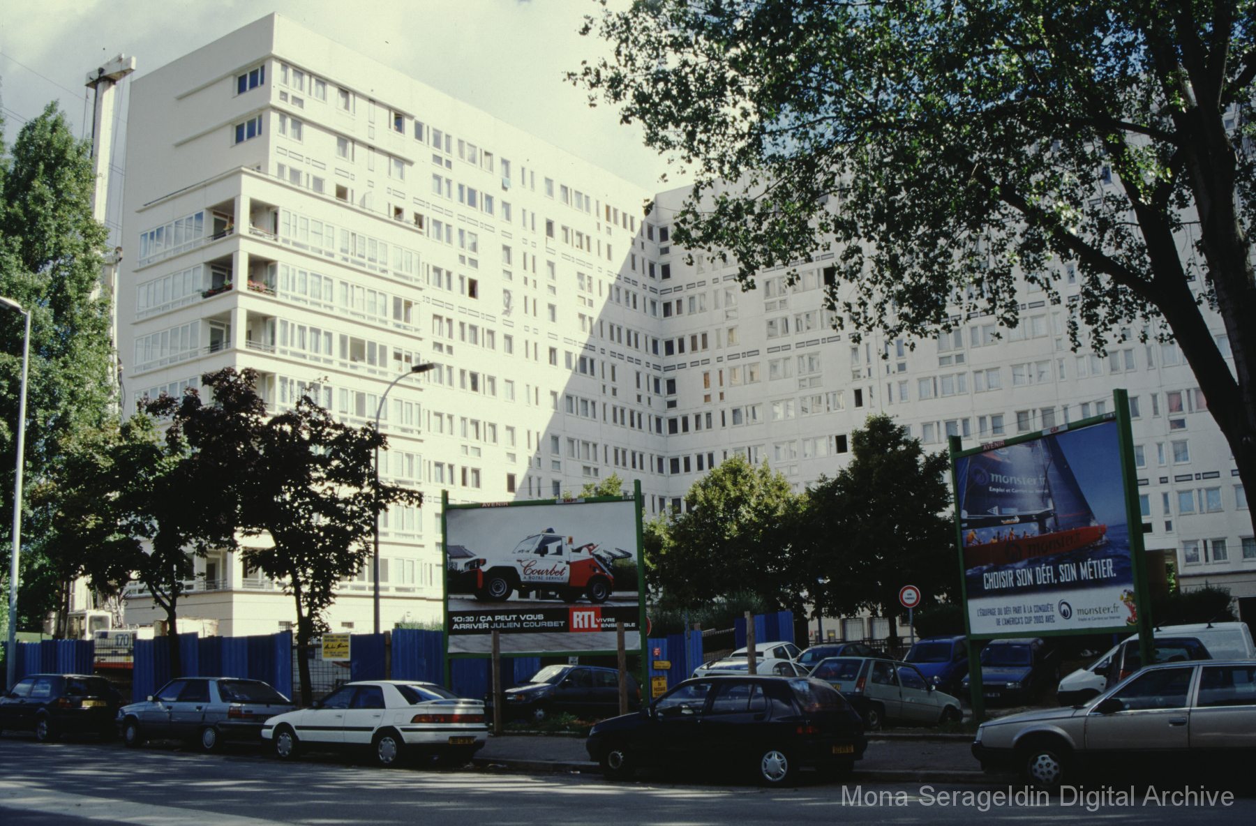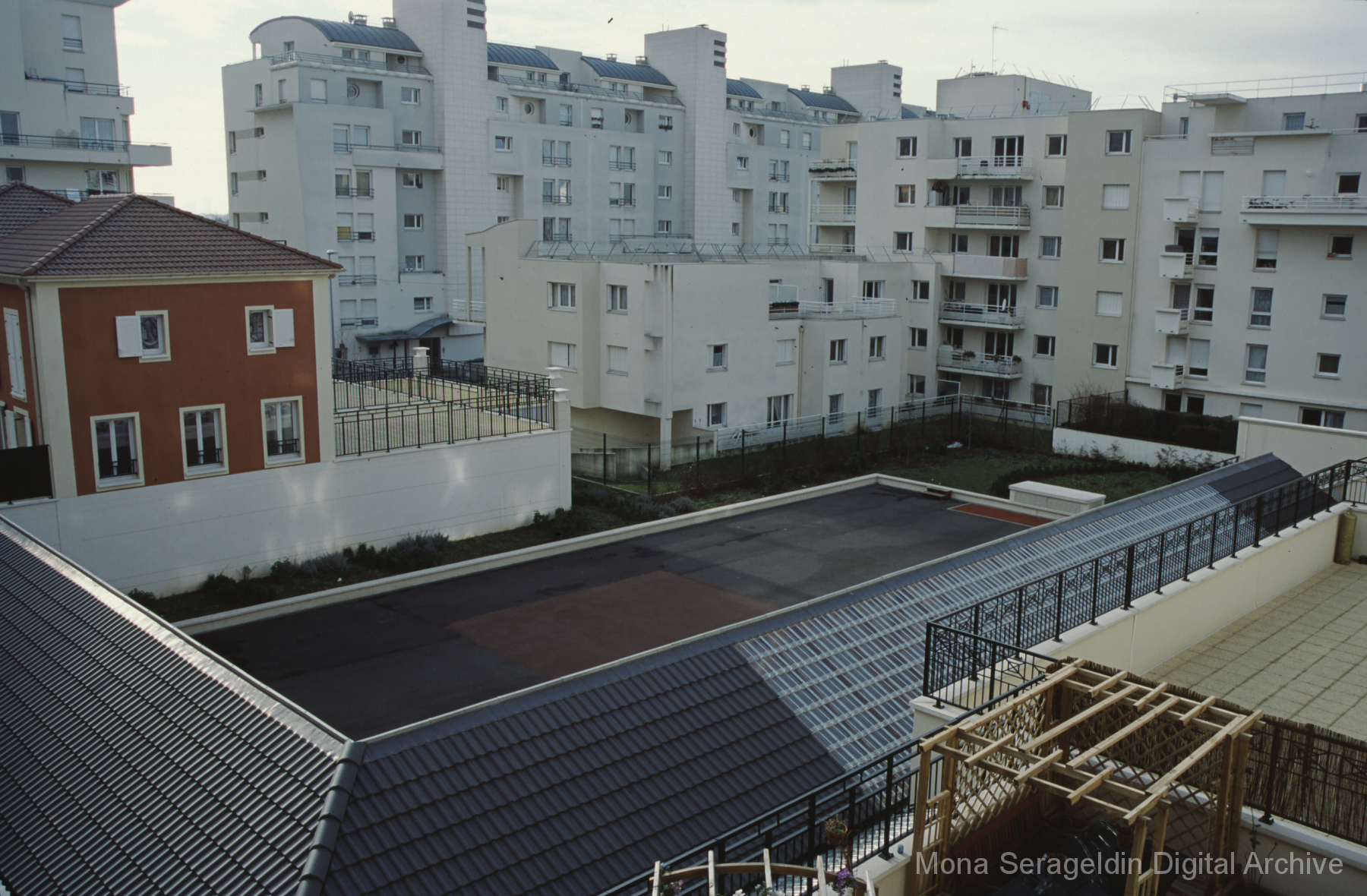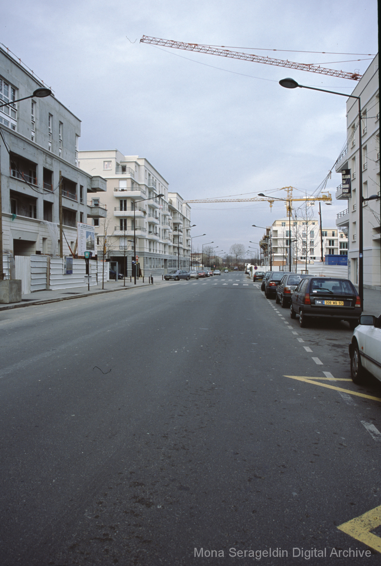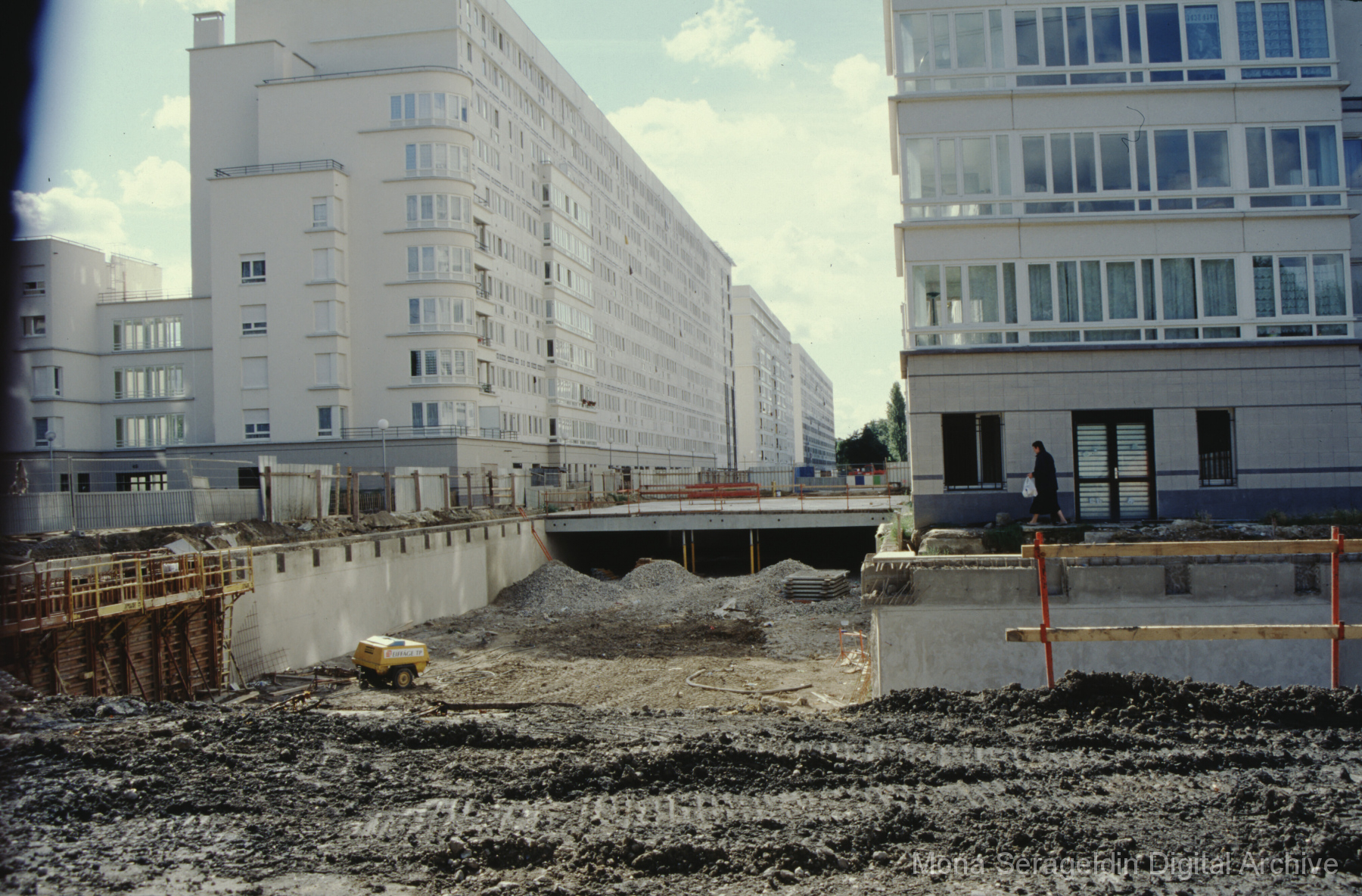 This selection of photographs documents infrastructure development and housing revitalization in communes and towns in the Paris Metropolitan region, including the northern suburbs of Aubervilliers and Saint-Denis, the planned communities of Marne-la-Vallée and Saint-Quentin-en-Yvelines, La Défense business district, as well as the commune of Bonneval south of Paris. Views in the collection include streetscapes, a variety of housing styles and conditions, urban infrastructure under renovation or construction, and aerial views.