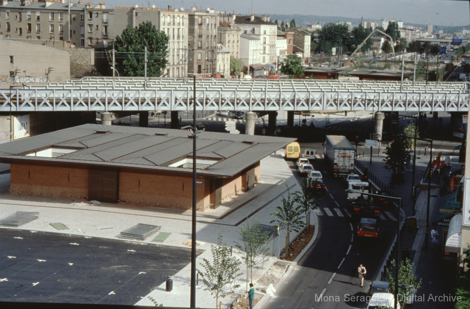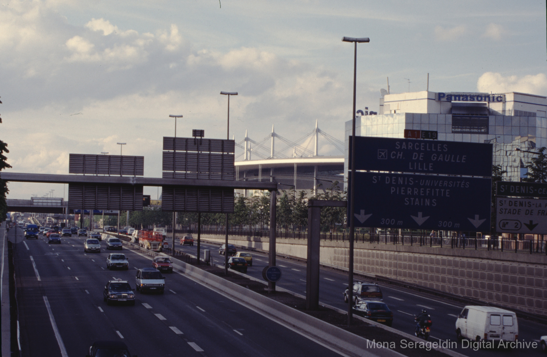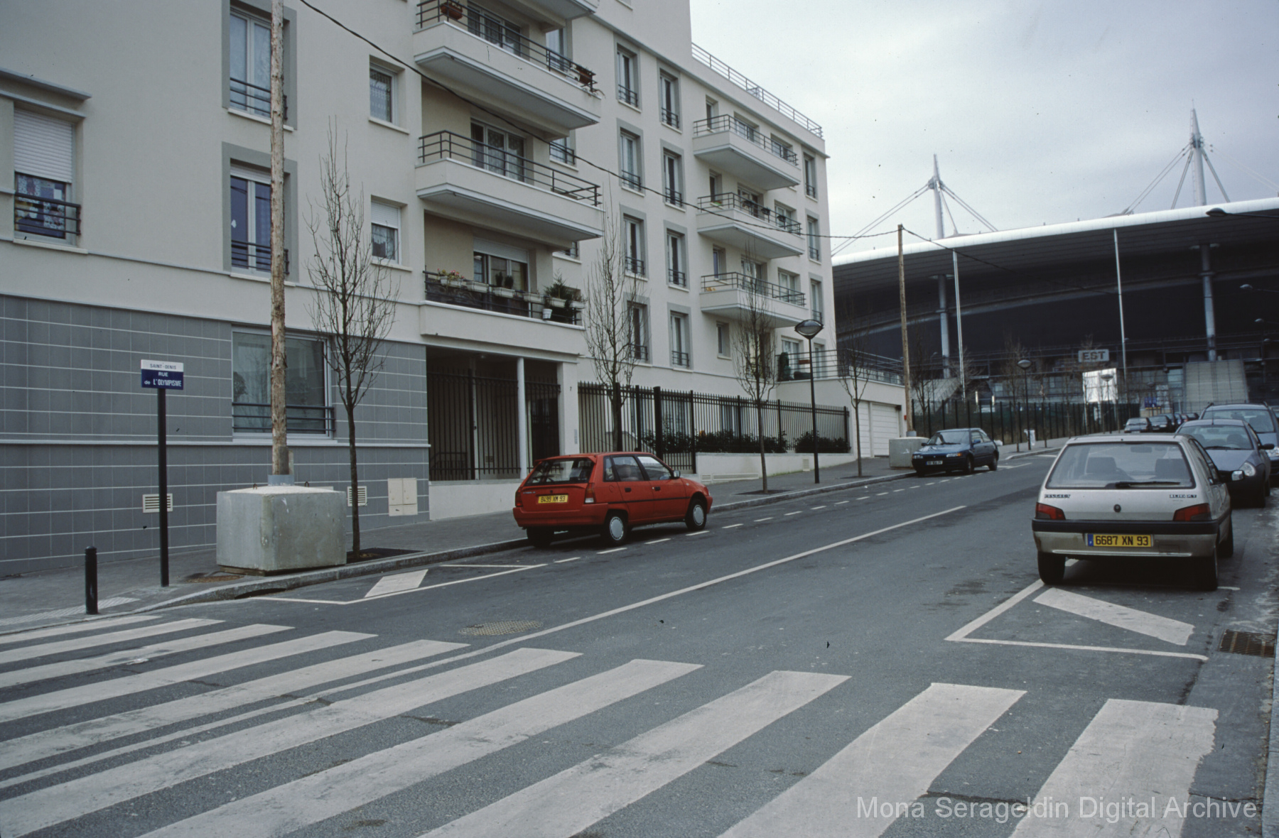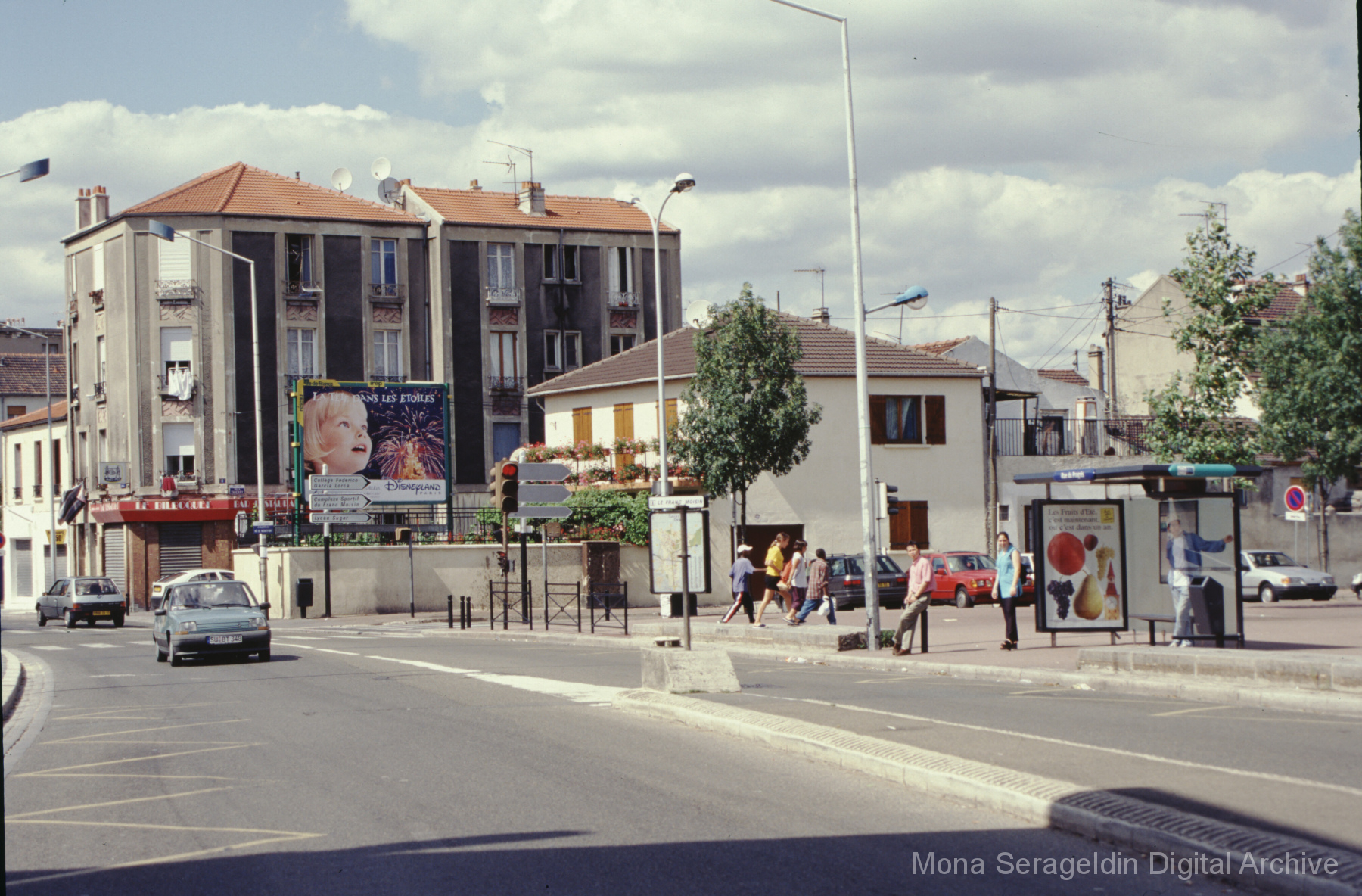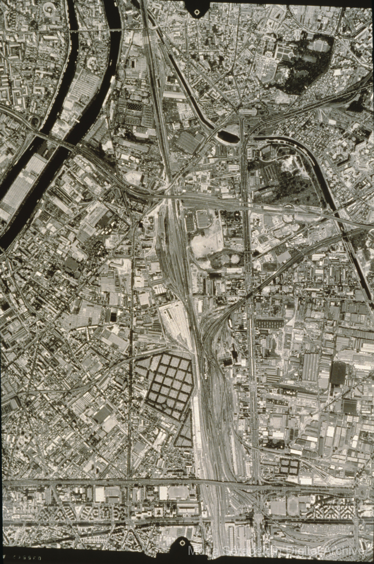 This gallery documents the commune of Saint-Denis in the suburbs north of Paris, France from 1991 through 2003. Photographs cover transportation and housing in the region, including the Autoroute du Nord and a Réseau Express Régional (Regional Express Network) project site for implementing a rail transit system around Paris and its suburbs. A variety of housing developments are represented, including low-income, public, and private housing developments. The gallery also shows the Saint-Denis commercial center, canals, and industrial zones, and the Stade de France. Views include portraits of residents, building interiors and exteriors, streetscapes, and maps and diagrams.