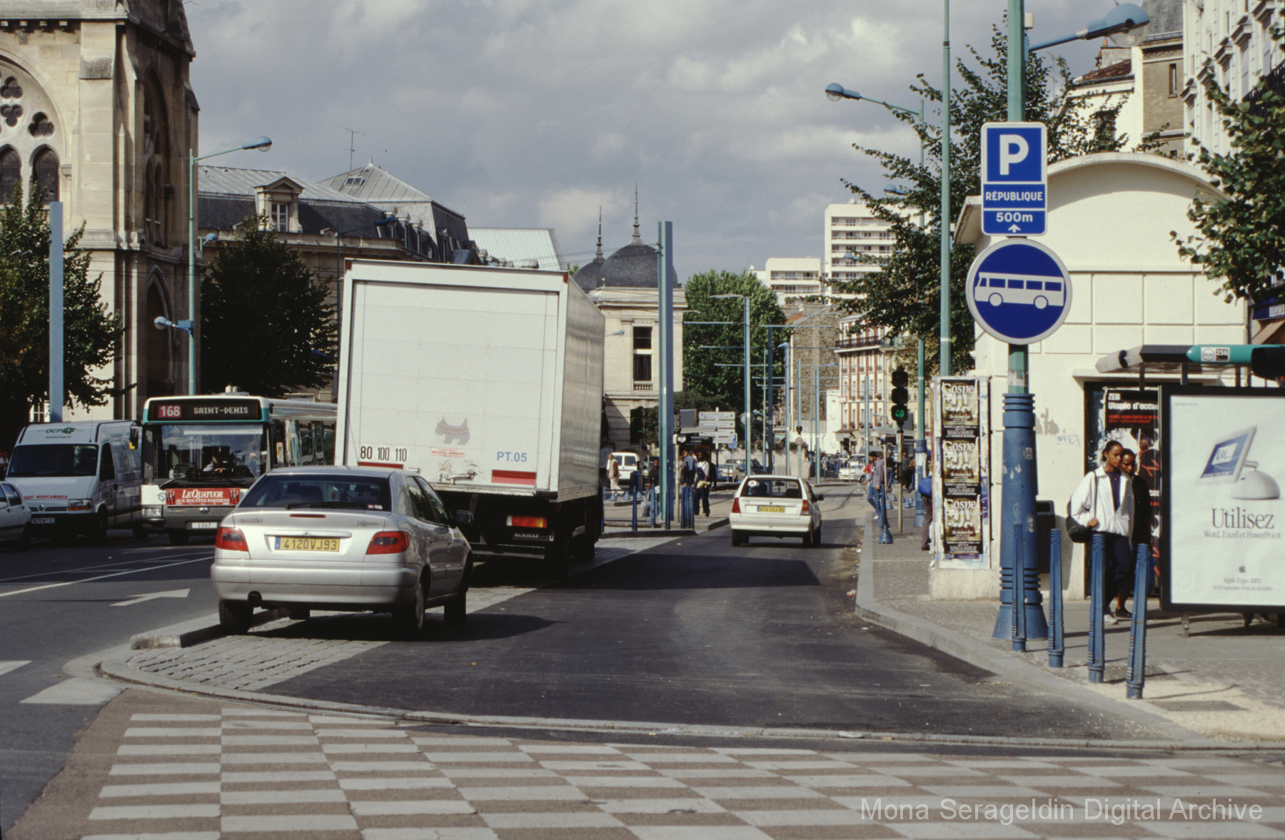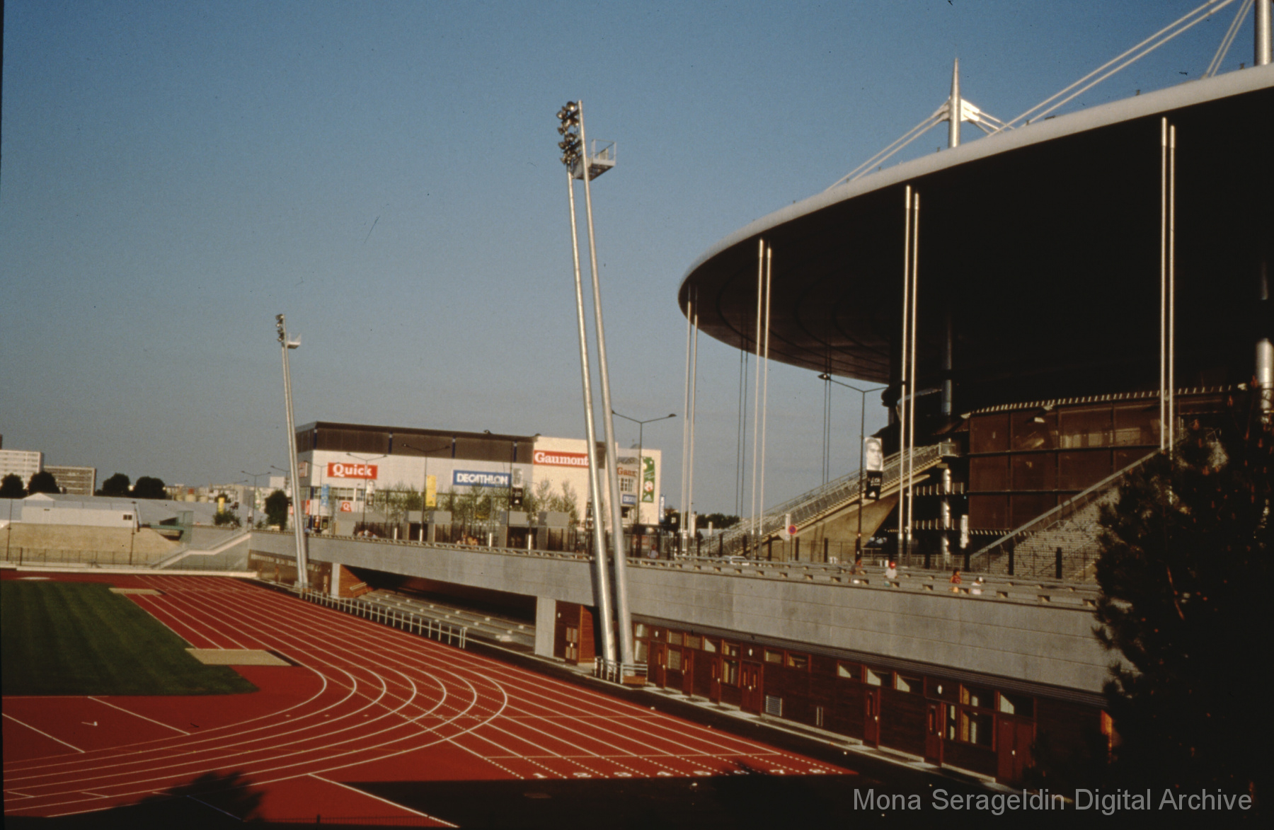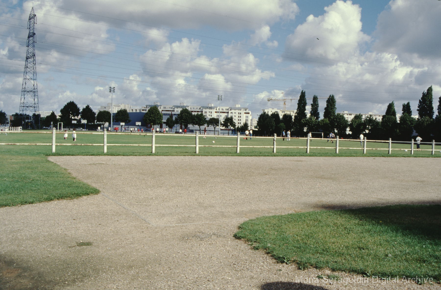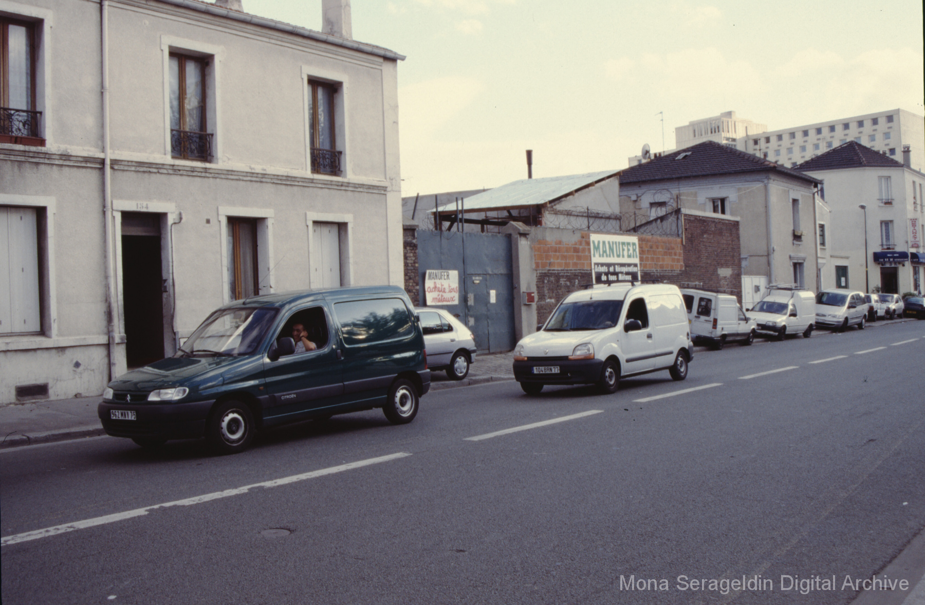 This gallery documents the commune of Saint-Denis in the suburbs north of Paris, France from 1991 through 2003. Photographs cover transportation and housing in the region, including the Autoroute du Nord and a Réseau Express Régional (Regional Express Network) project site for implementing a rail transit system around Paris and its suburbs. A variety of housing developments are represented, including low-income, public, and private housing developments. The gallery also shows the Saint-Denis commercial center, canals, and industrial zones, and the Stade de France. Views include portraits of residents, building interiors and exteriors, streetscapes, and maps and diagrams.
