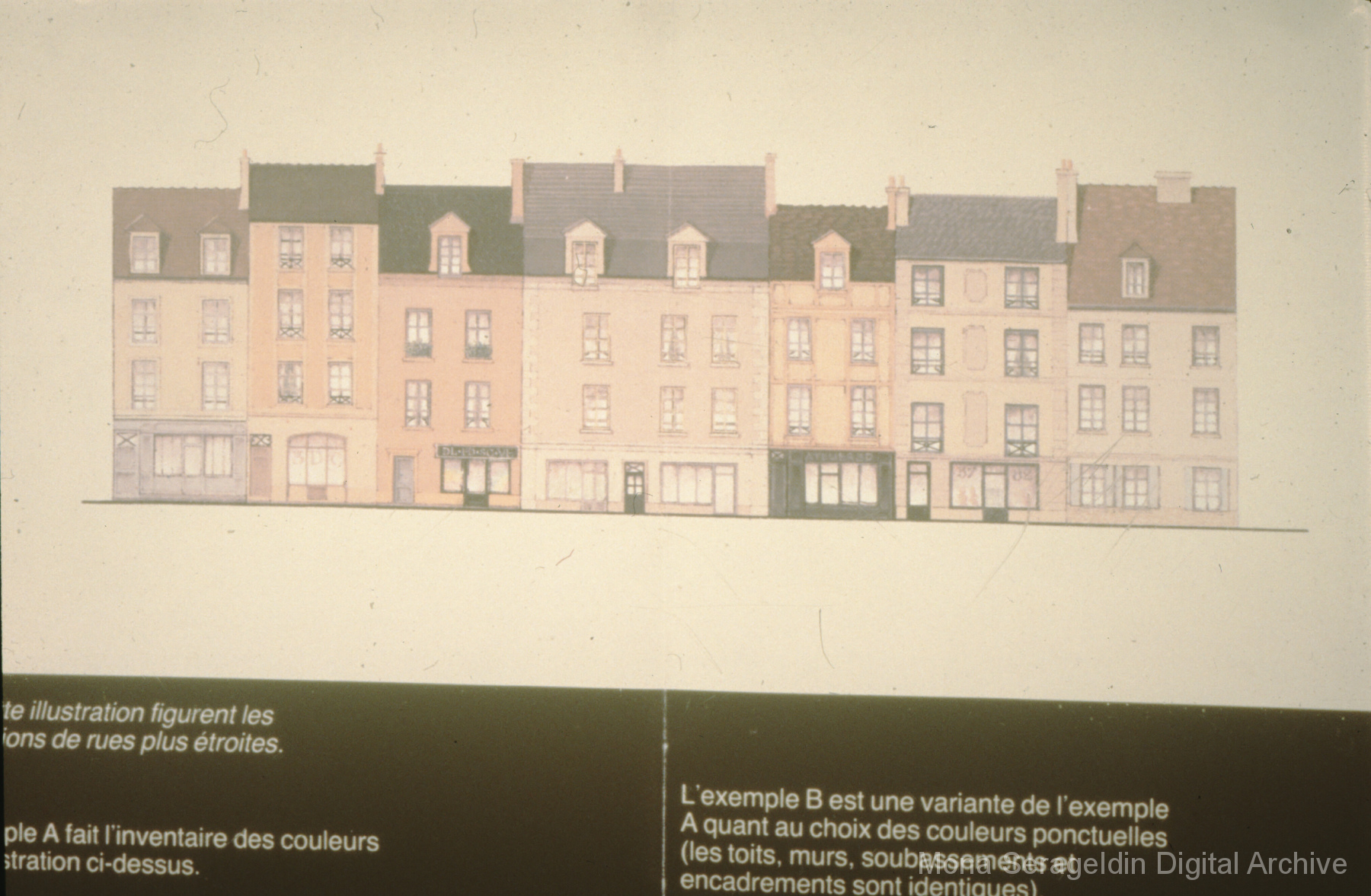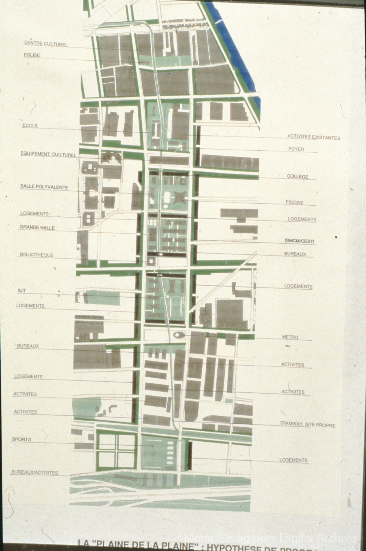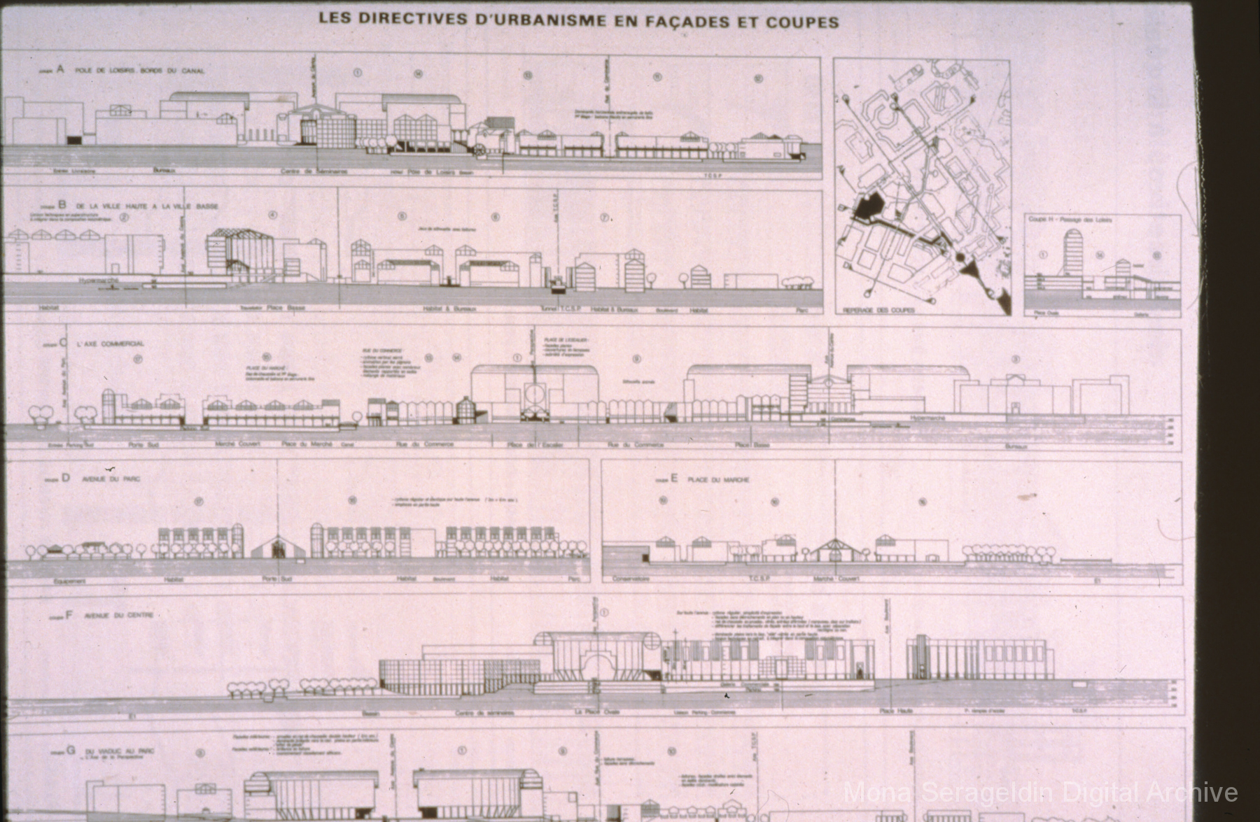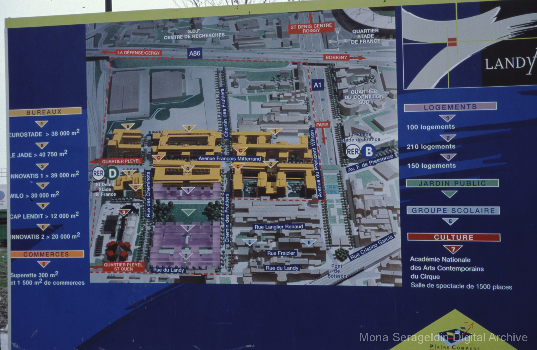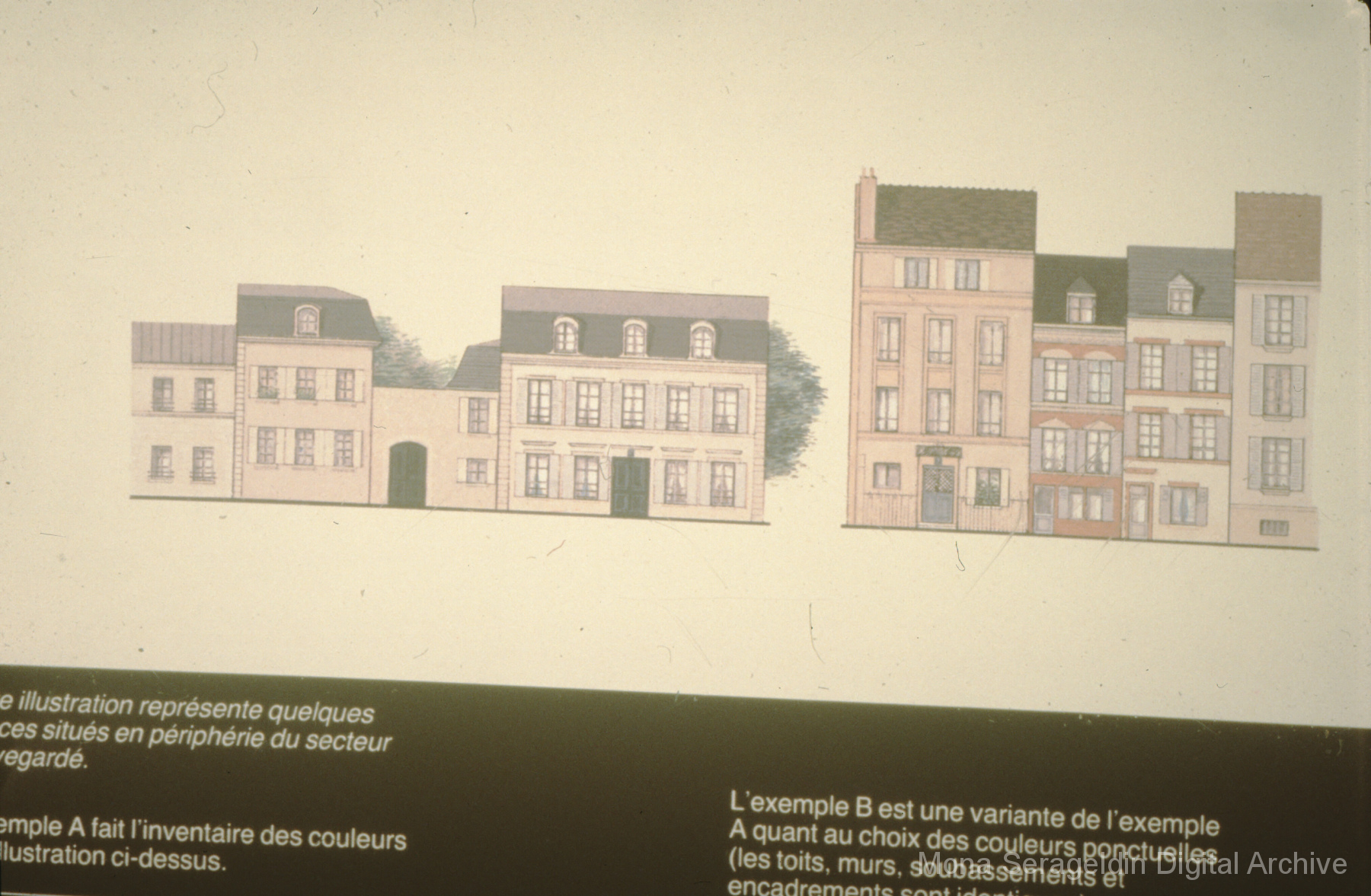 The following 5 galleries represent Mona Serageldin’s 35mm film slide collection on city revitalization, as arranged in box M27, “France: Peinture Rouge, St. Denis, Lyon, Datar, Plans, New Towns, Defense, Montpellier, Defense, Bonneval,” and consist of color photographs and planning maps and diagrams. Note that only some of the locations in the box title are included in this digital collection.