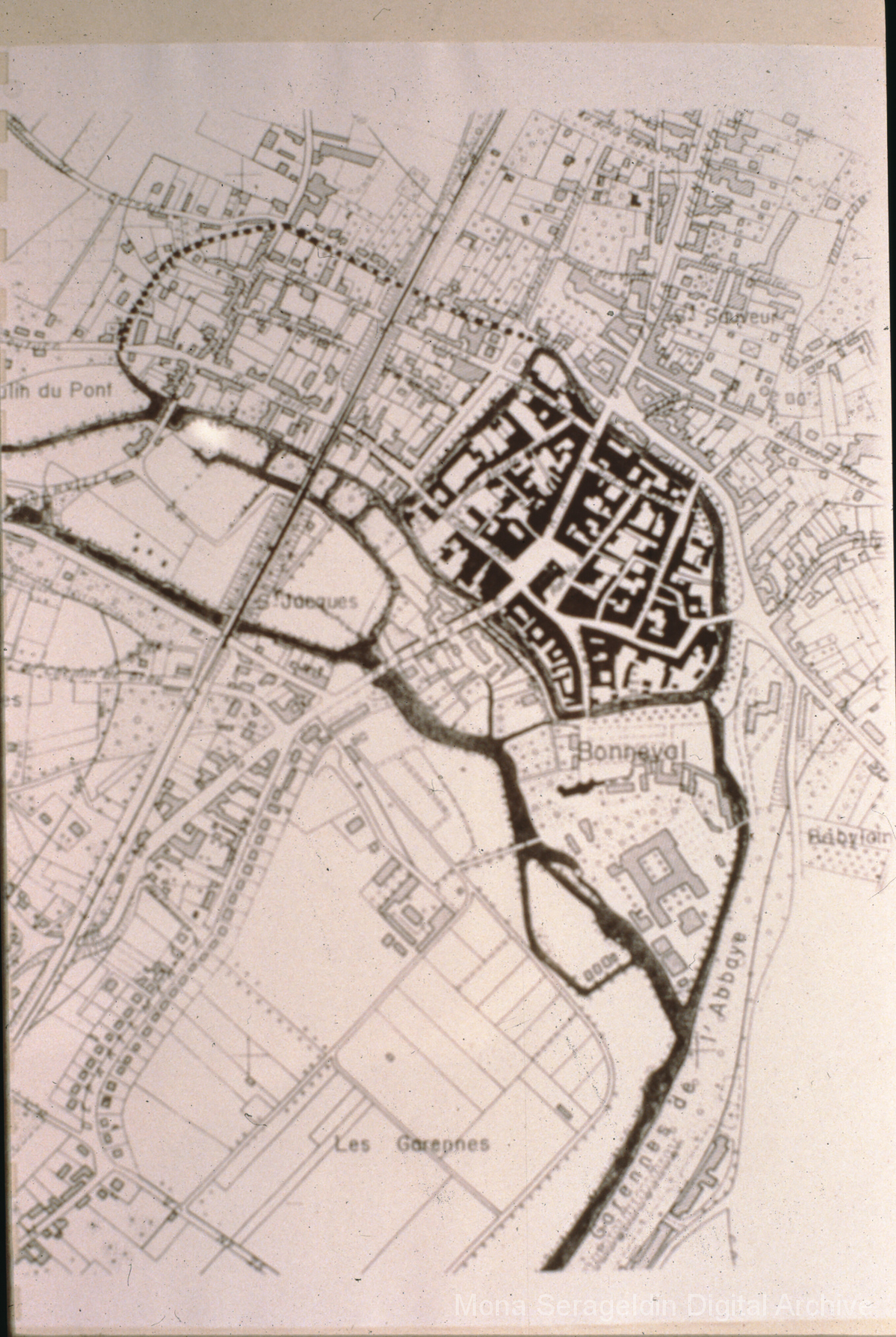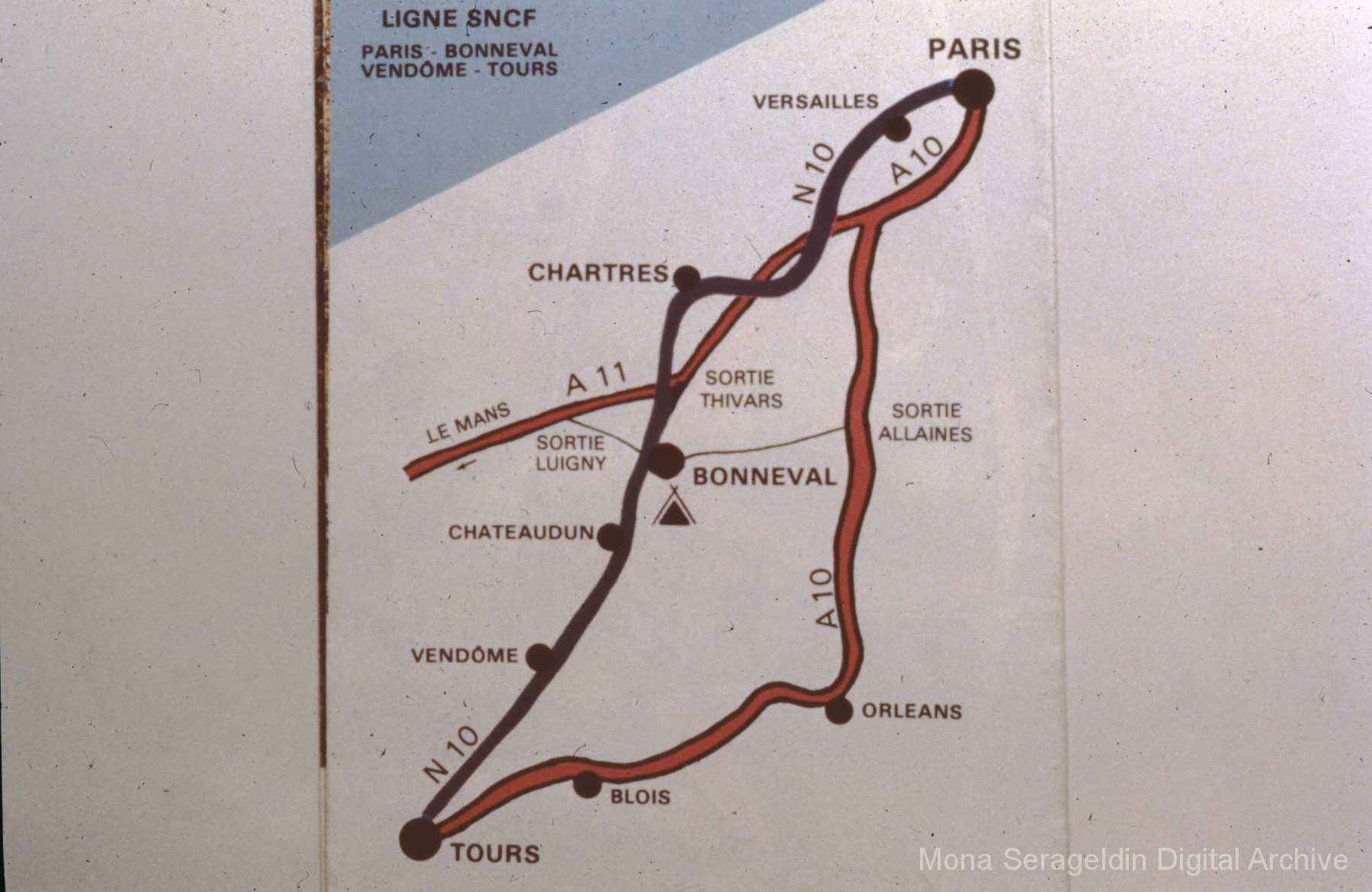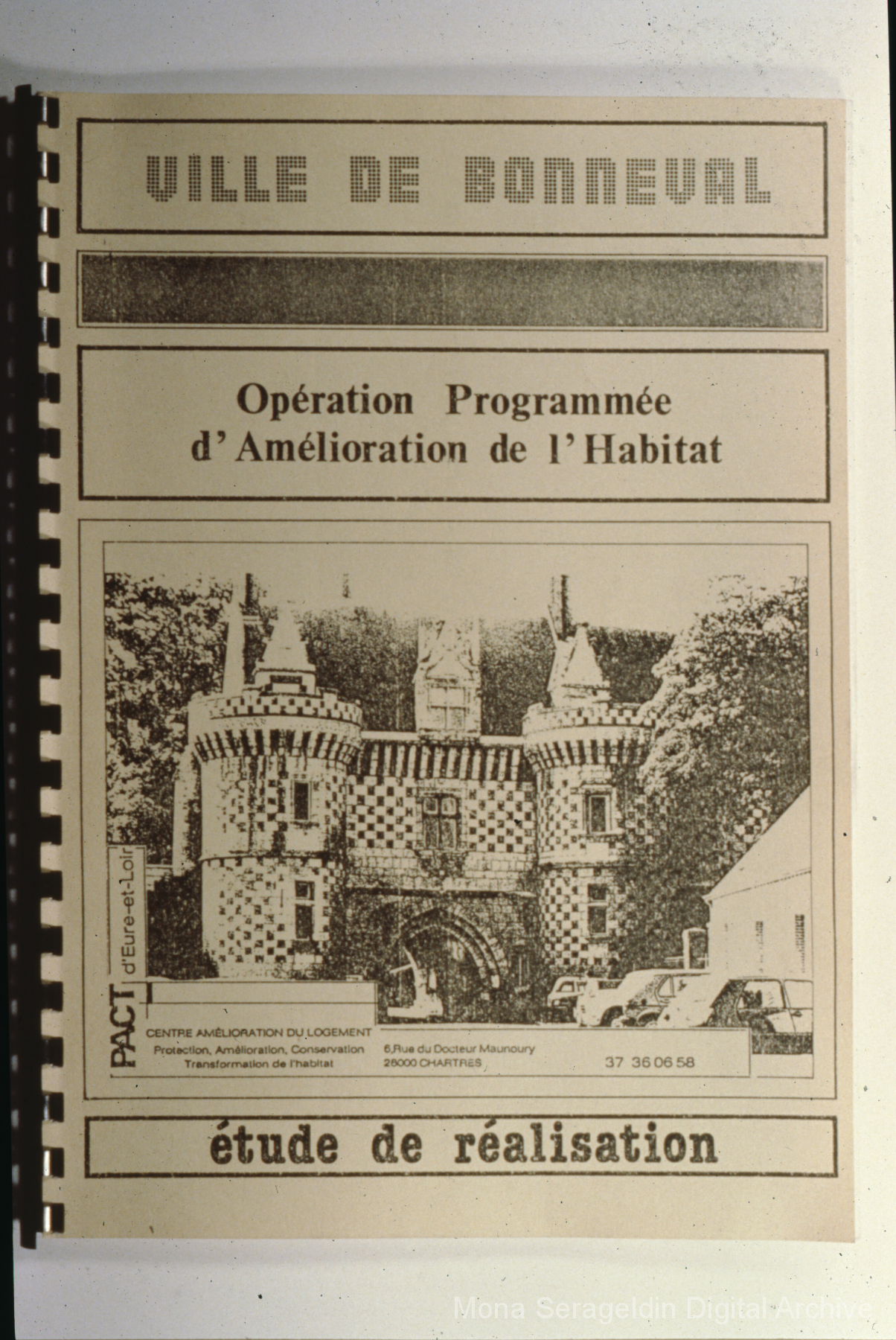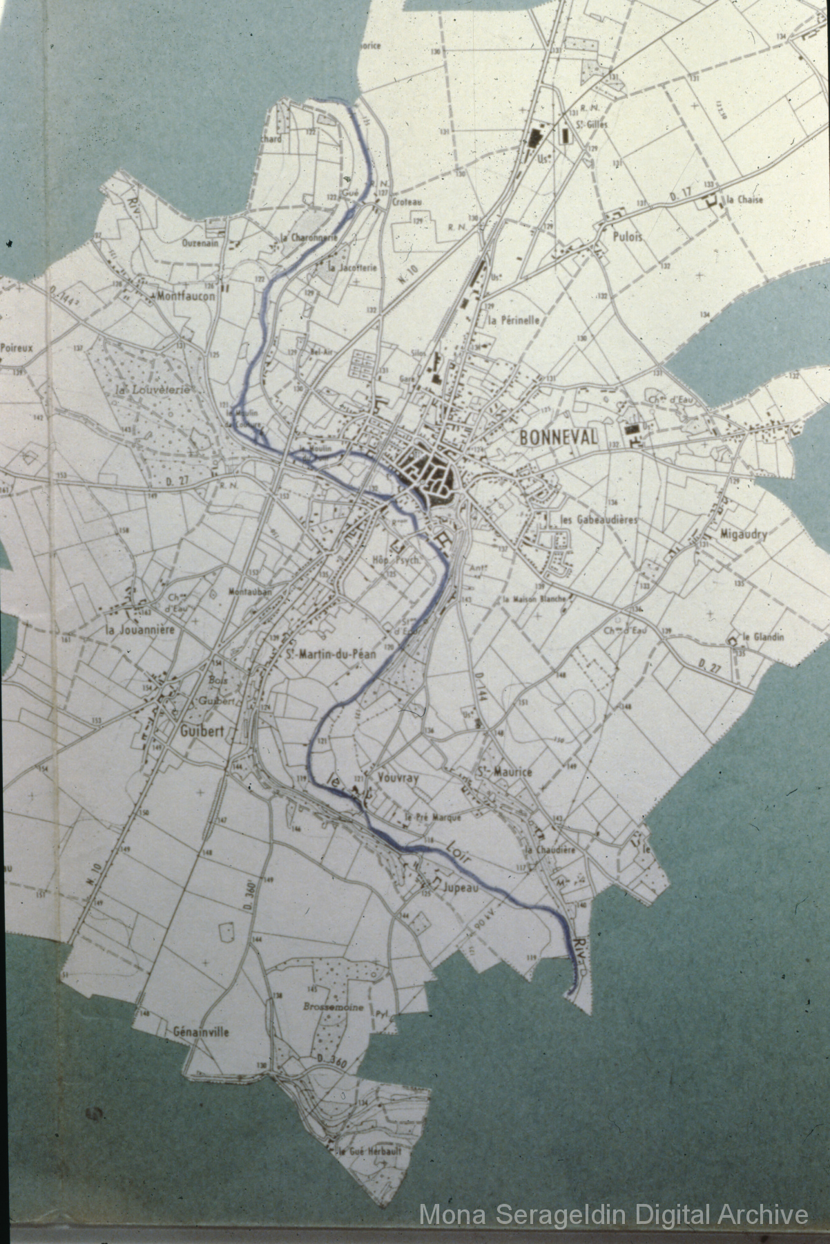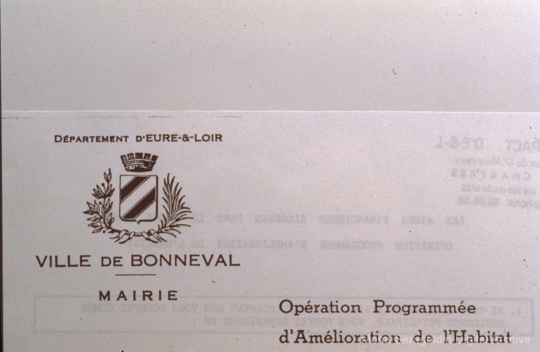 This gallery covers the commune of Bonneval in the northern Centre-Val de Loire region of France from around 1993. It contains photographs of residential and commercial buildings of the town, streetscapes, and improvement initiatives, as well as graphics of improvement plans and topographical maps for Bonneval and the surrounding metropolitan region south of Paris.