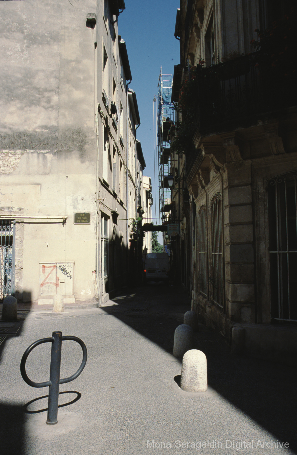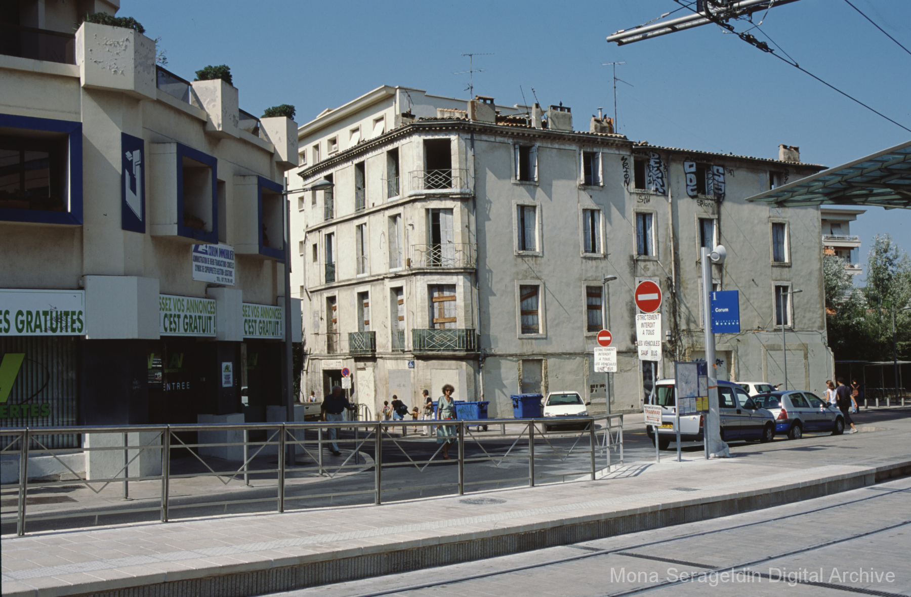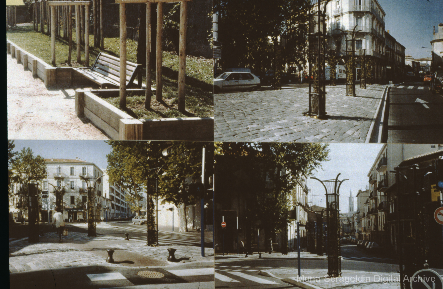 Photographs of the Antigone neighborhood in eastern portion of Montpellier, France from 1999 through 2004. The gallery documents the area’s urban fabric, including housing, streetscapes, commercial activities, and city buildings. Images show street views and architectural overviews.