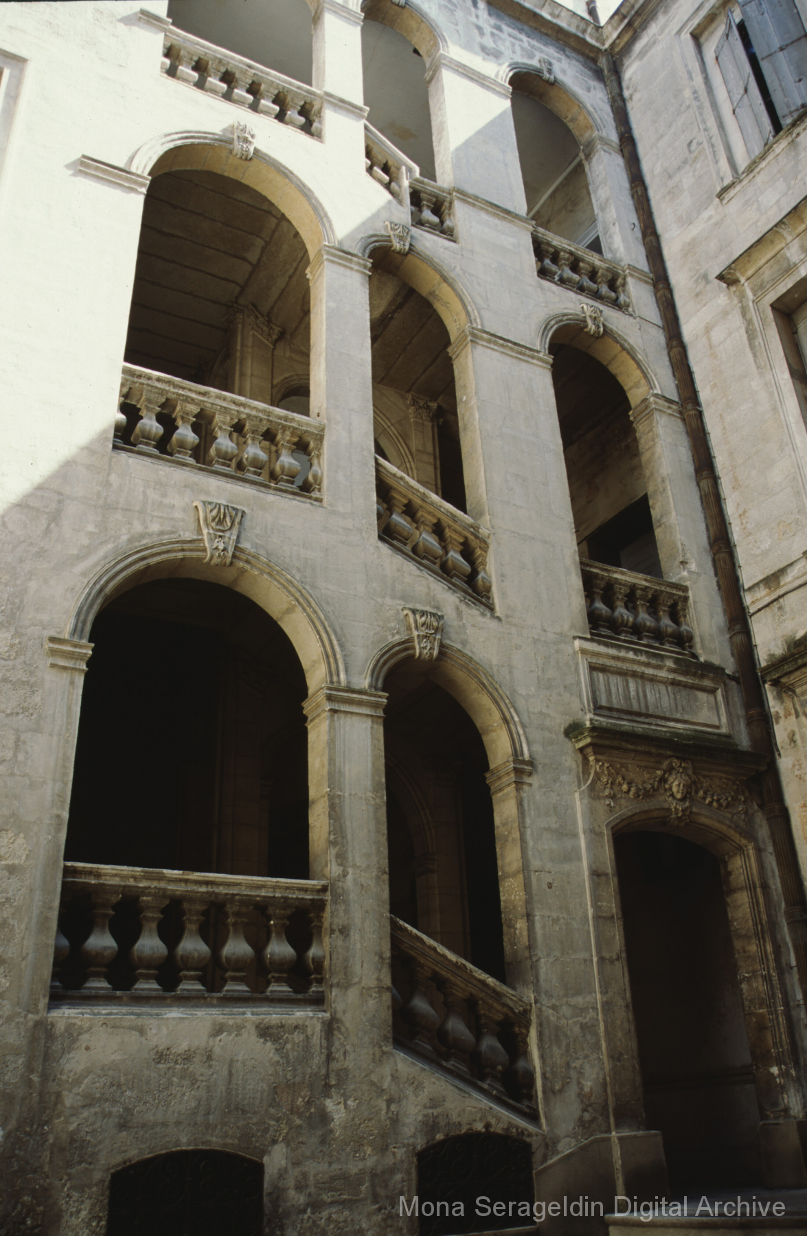 This gallery covers the city of Montpellier in the Occitania region of southern France from 1998 through 2004. The photographs and graphics document the Church of St. Anne, the Montepellier Technopole economic area, and the neighborhoods of Ursulines and La Paillade. Images include streetscapes, architectural details and overviews, presentation graphics, and planning maps. One section of photographs is credited to Alaiñ Gensac.