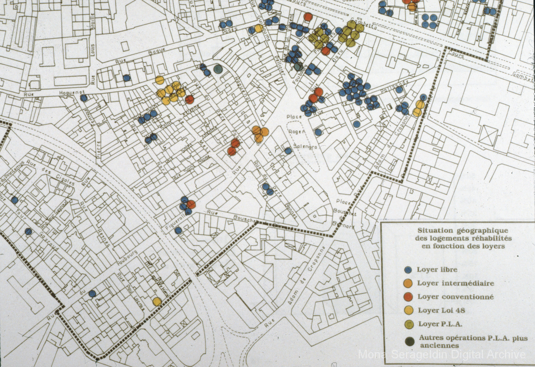 The following 7 galleries represent Mona Serageldin’s analog slide collection on upgrading older neighborhoods and urban infrastructure, as arranged in box M10, “China, France, St. Denis,” consisting of color photographs and charts for presentation slides.