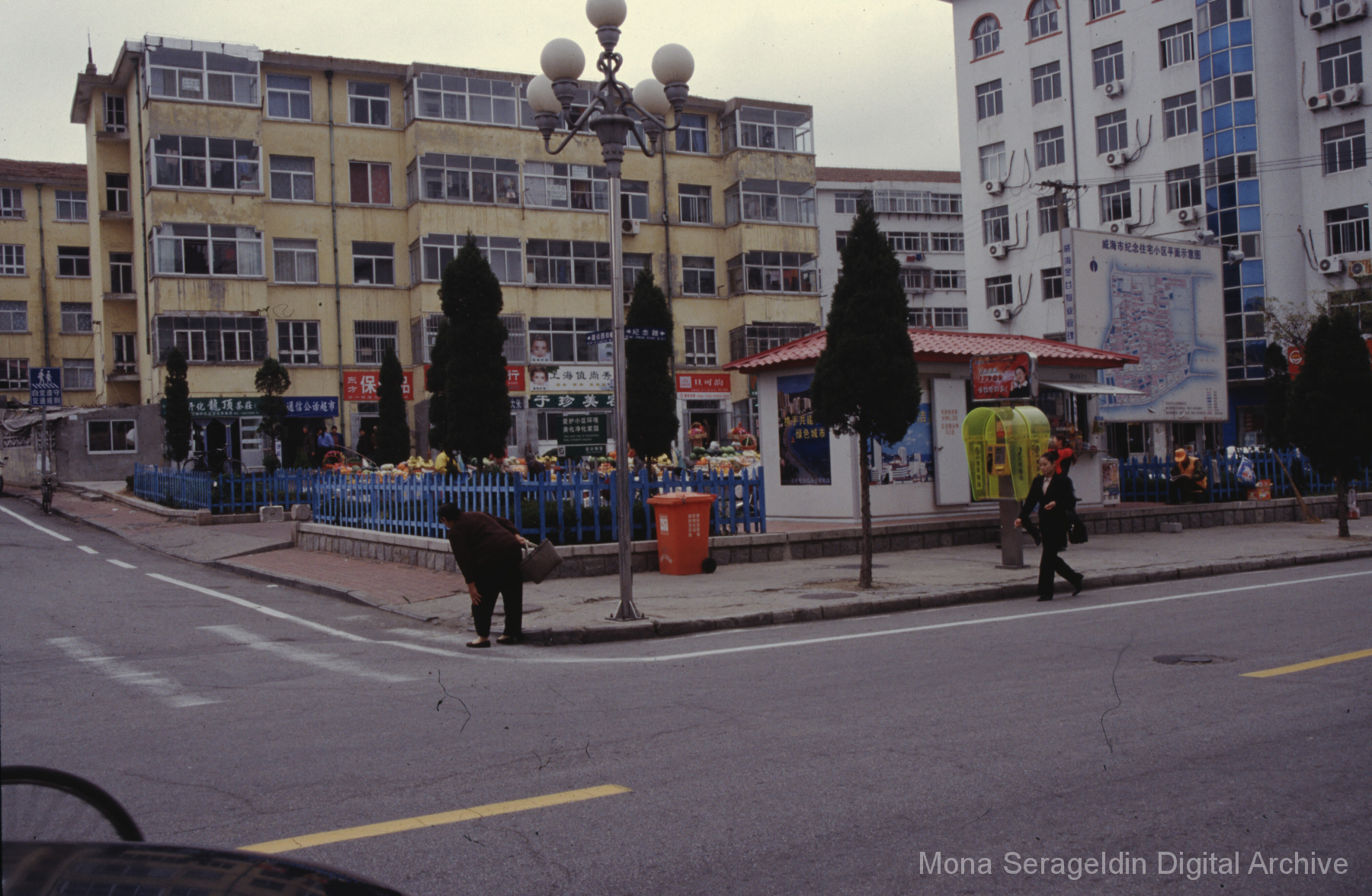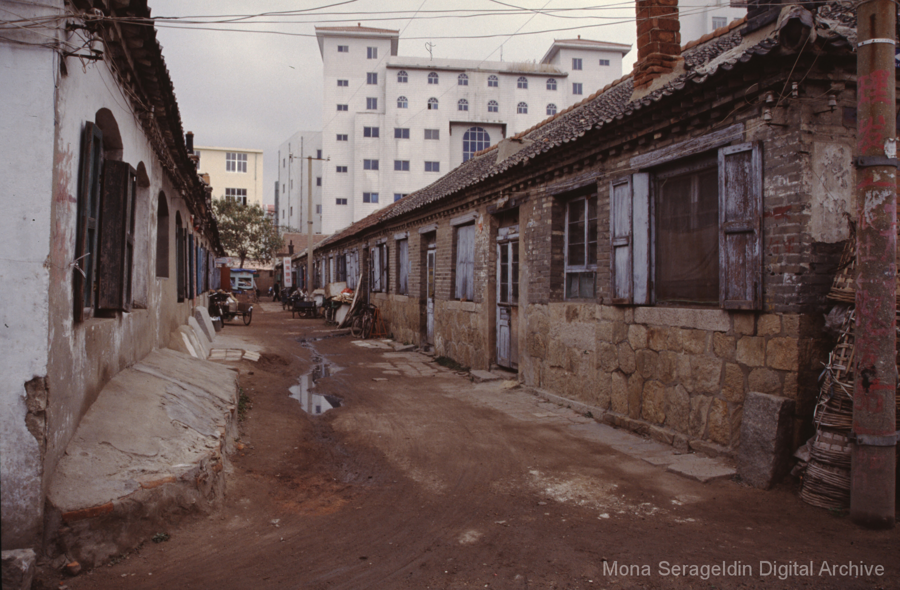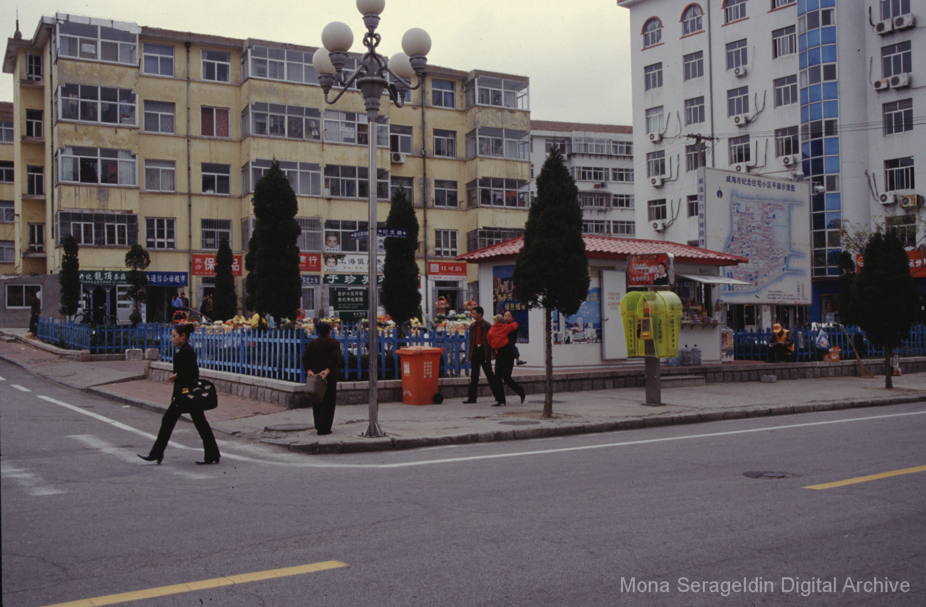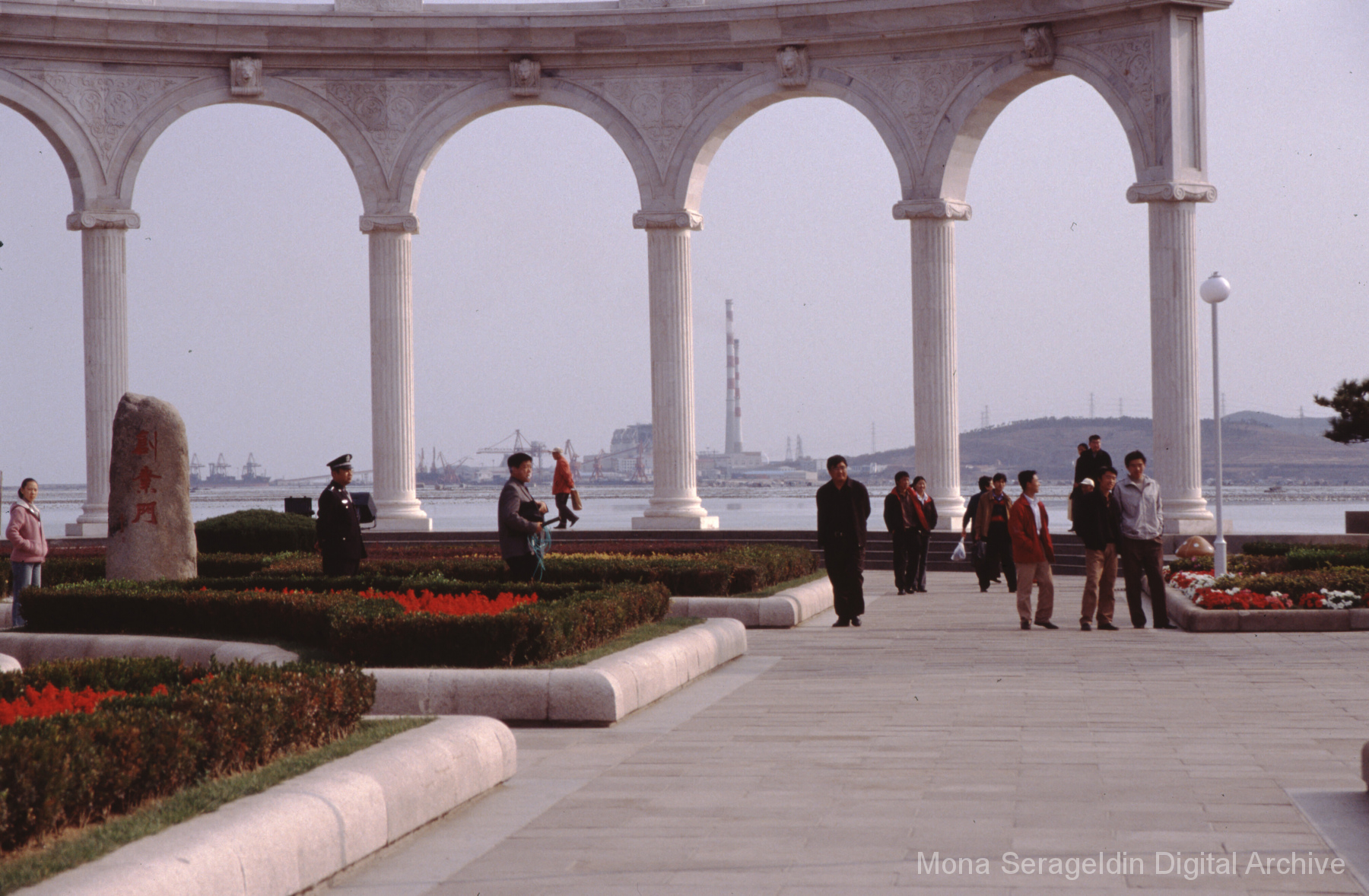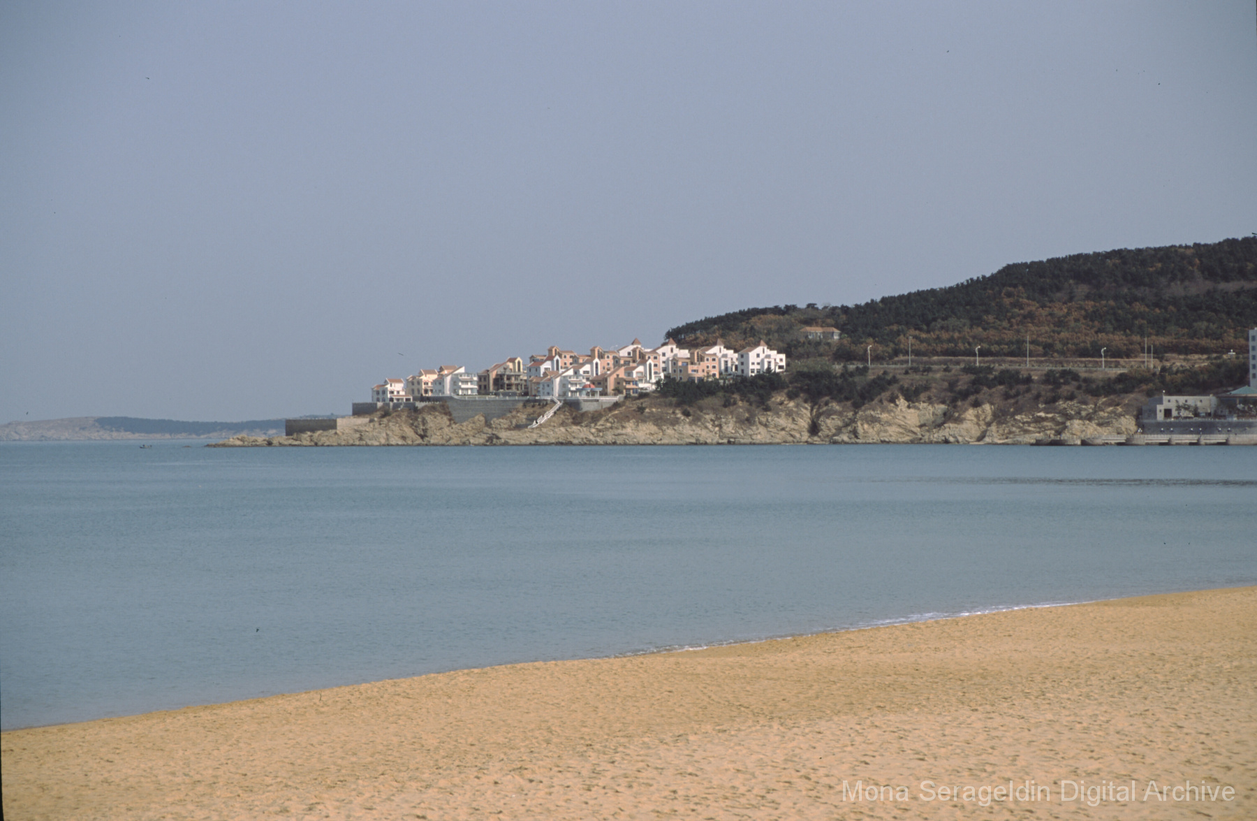 Photographs of the city of Weihai in the Shandong province of China from around 1999. The gallery documents the urban center and housing, including architecture, economic activities, and coastal landscapes. Views include portraits, housing overviews and details, streetscapes, and aerial views. Mona Serageldin is pictured.
