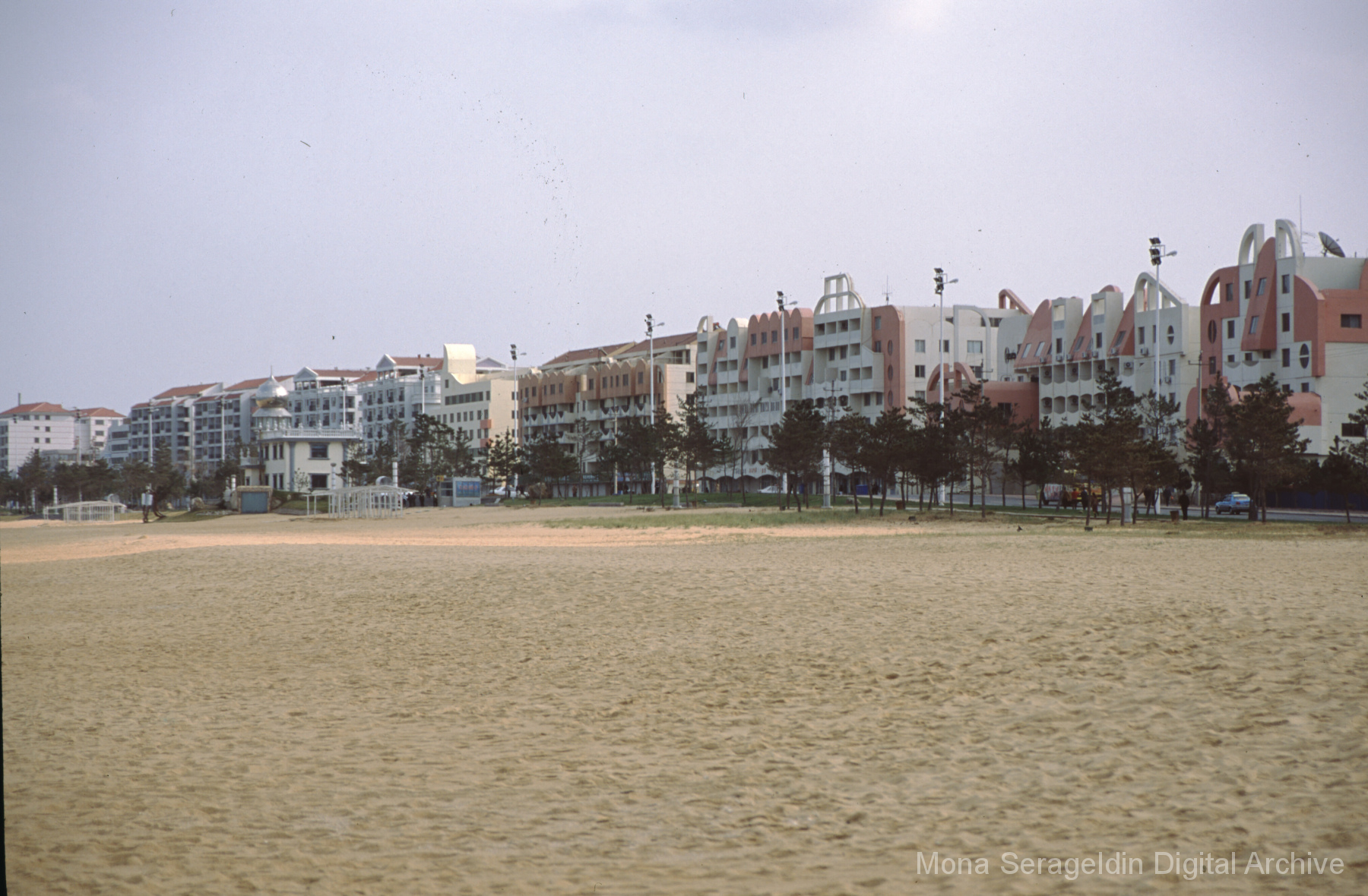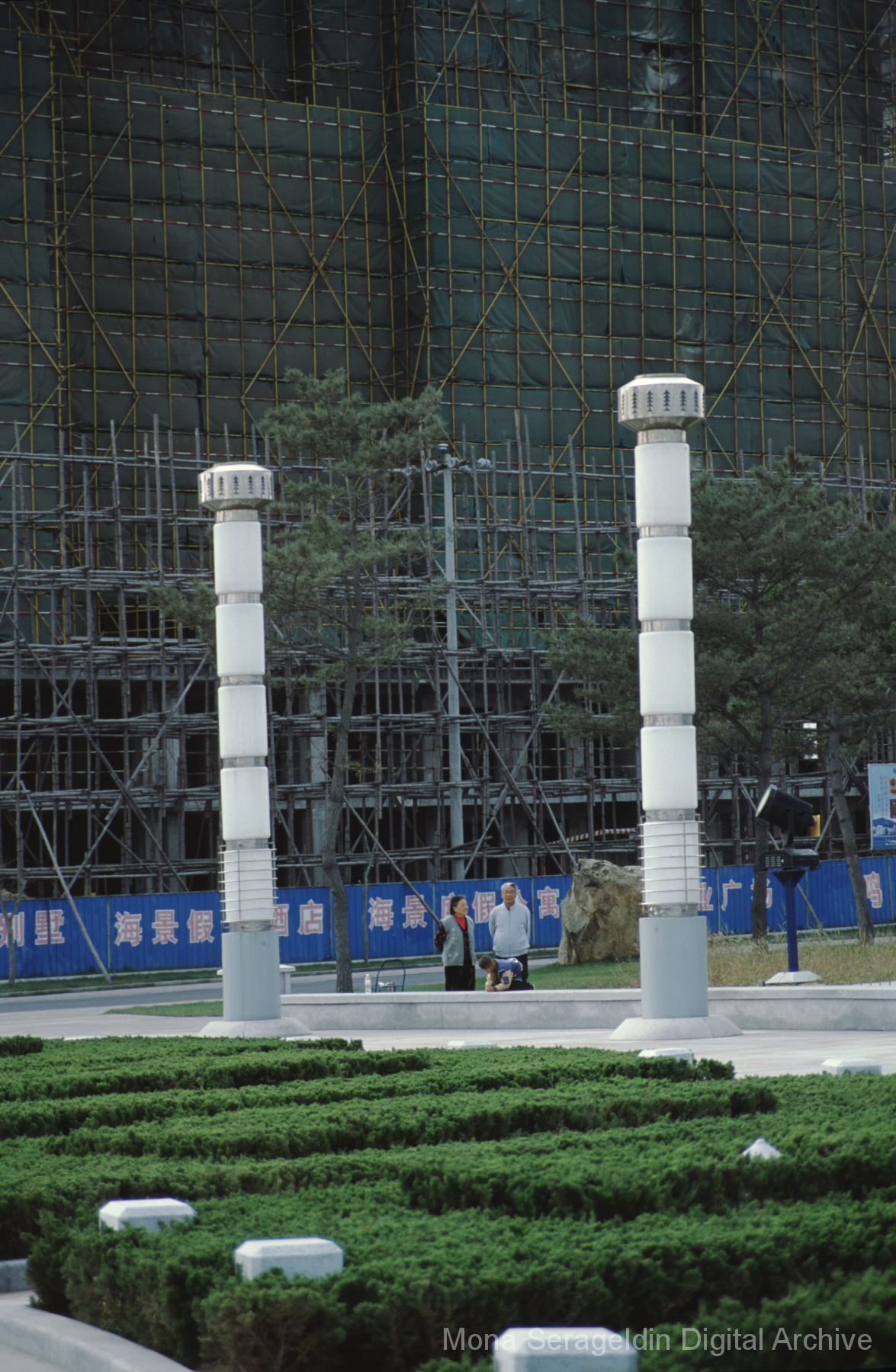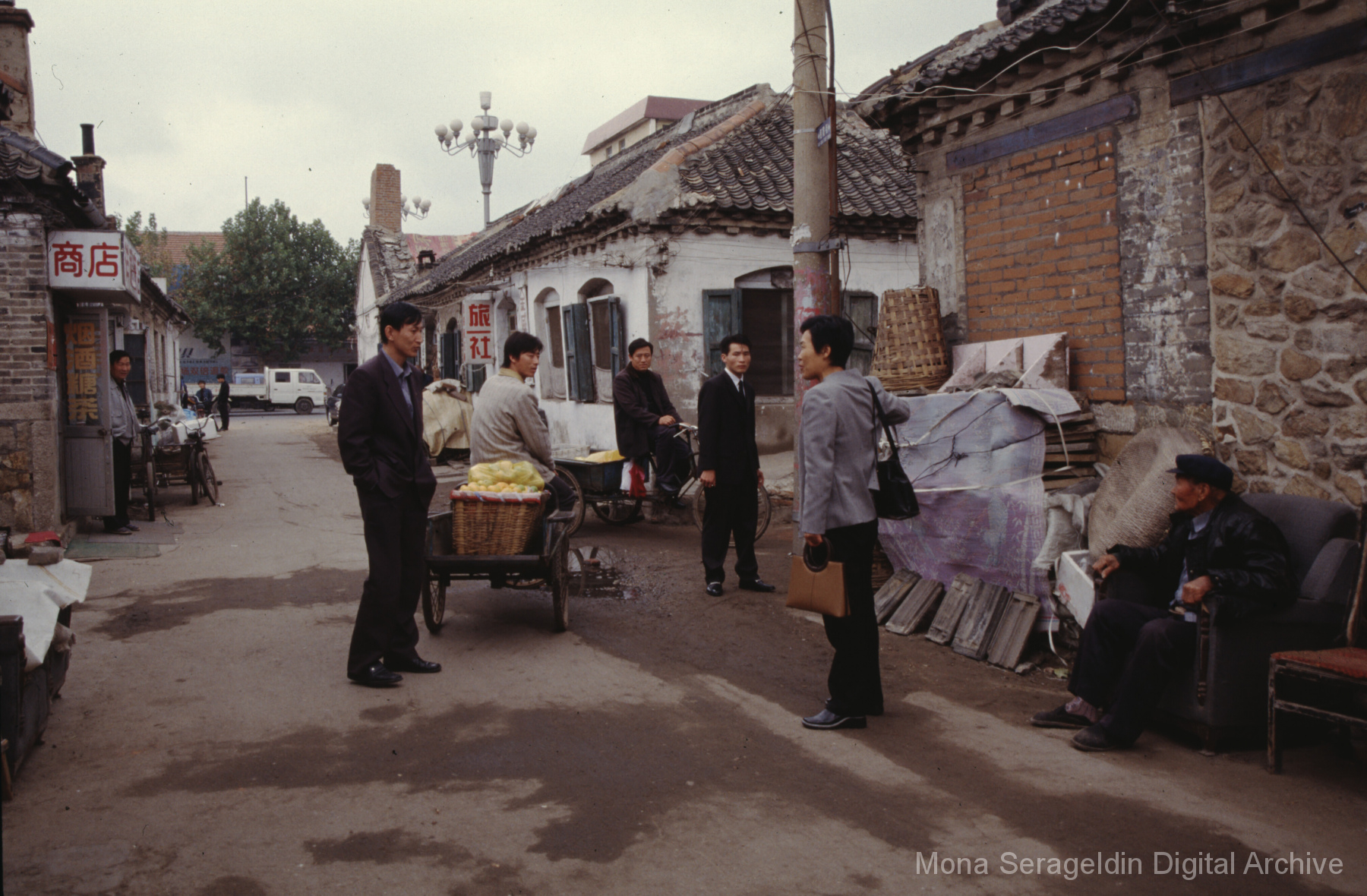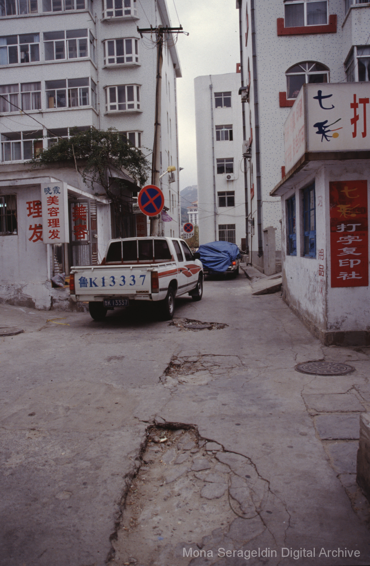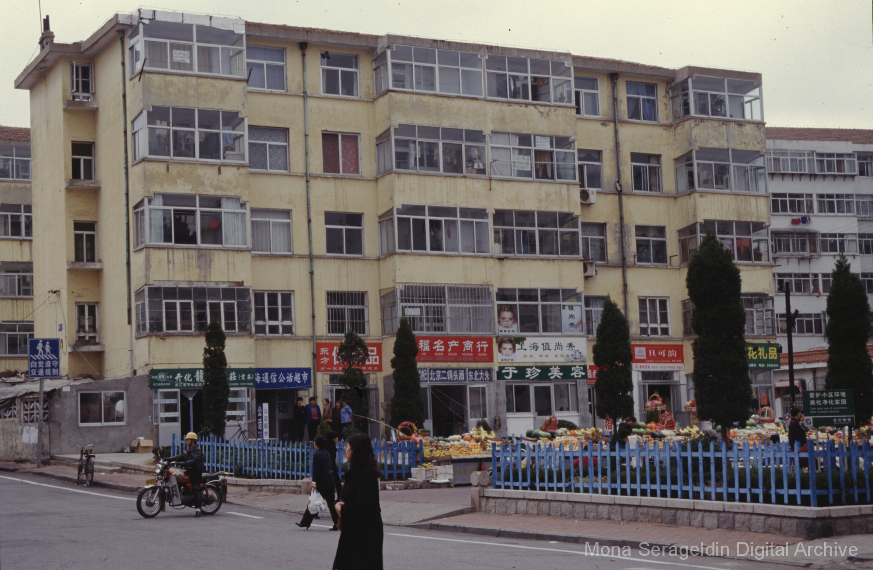 Photographs of the city of Weihai in the Shandong province of China from around 1999. The gallery documents the urban center and housing, including architecture, economic activities, and coastal landscapes. Views include portraits, housing overviews and details, streetscapes, and aerial views. Mona Serageldin is pictured.