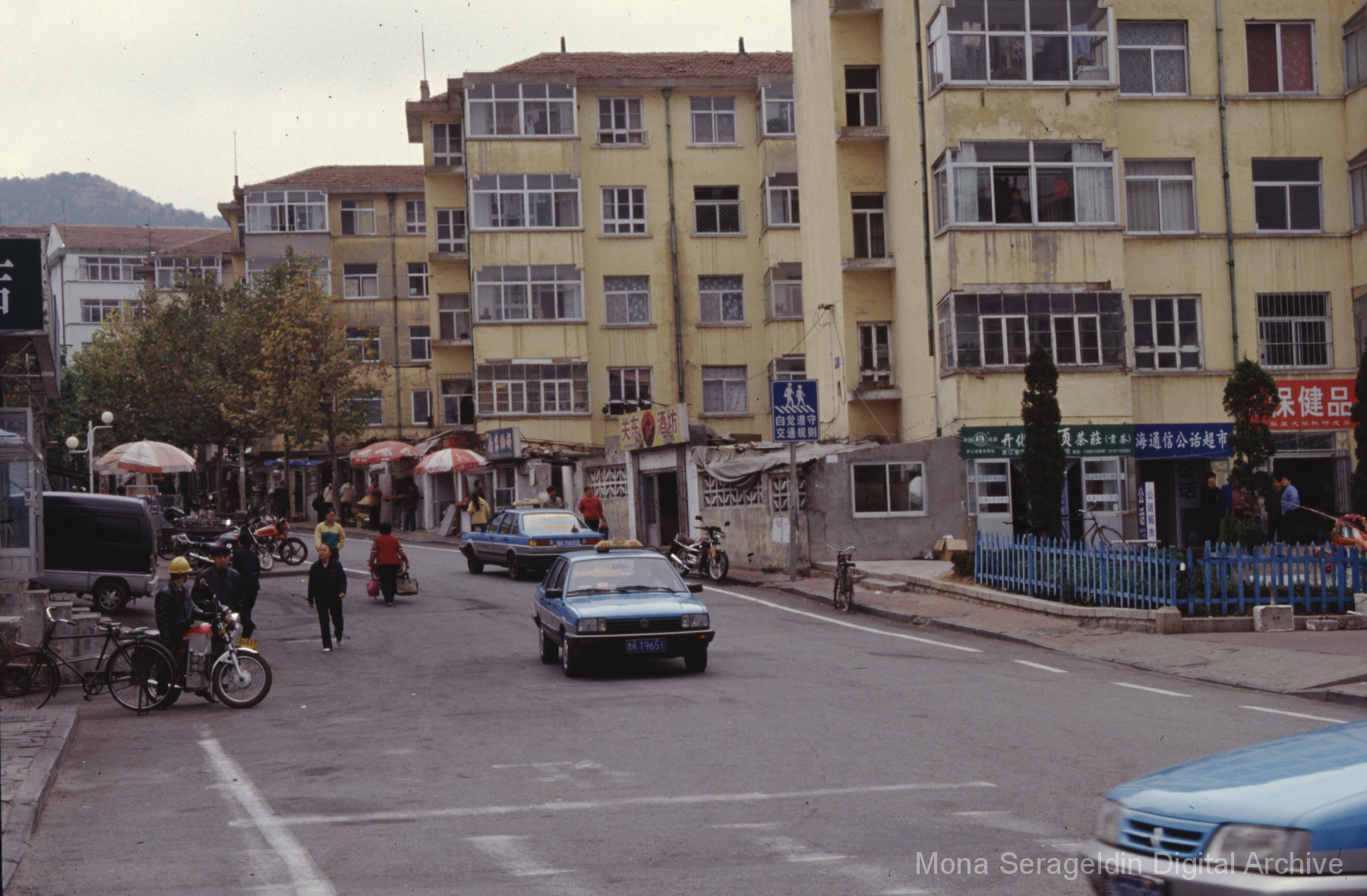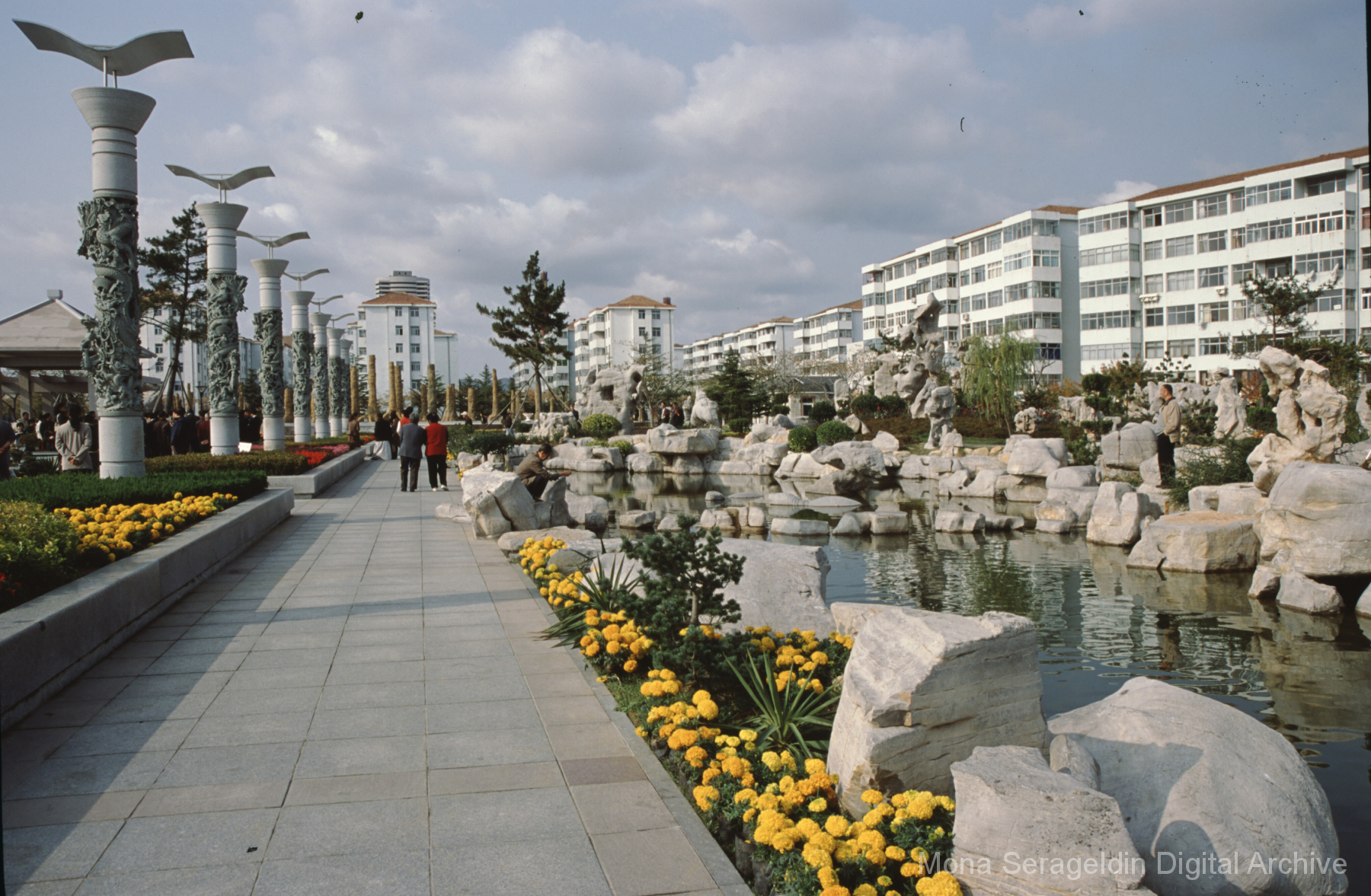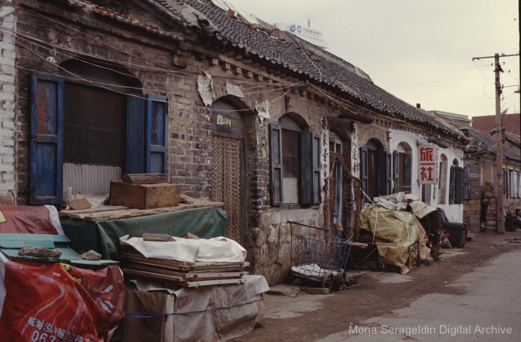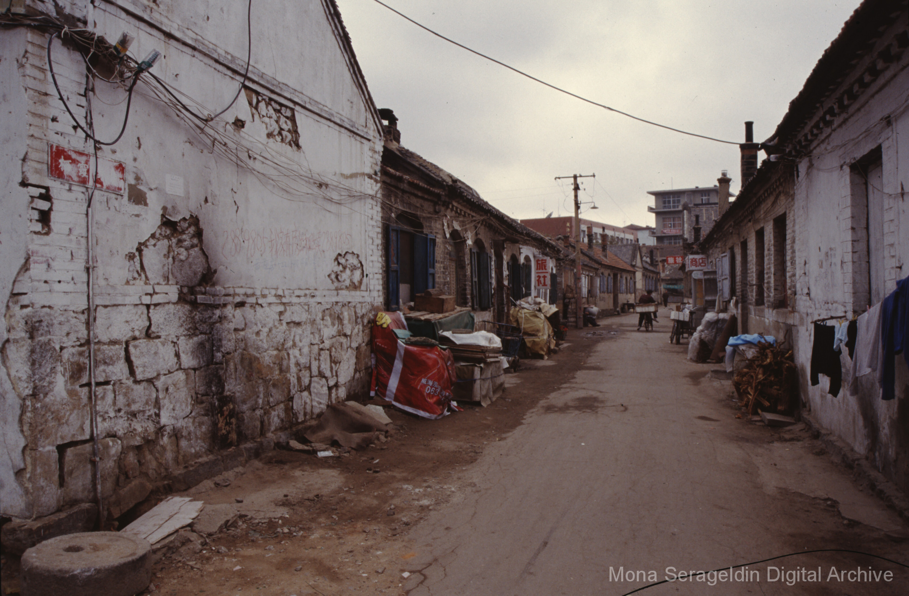 Photographs of the city of Weihai in the Shandong province of China from around 1999. The gallery documents the urban center and housing, including architecture, economic activities, and coastal landscapes. Views include portraits, housing overviews and details, streetscapes, and aerial views. Mona Serageldin is pictured.