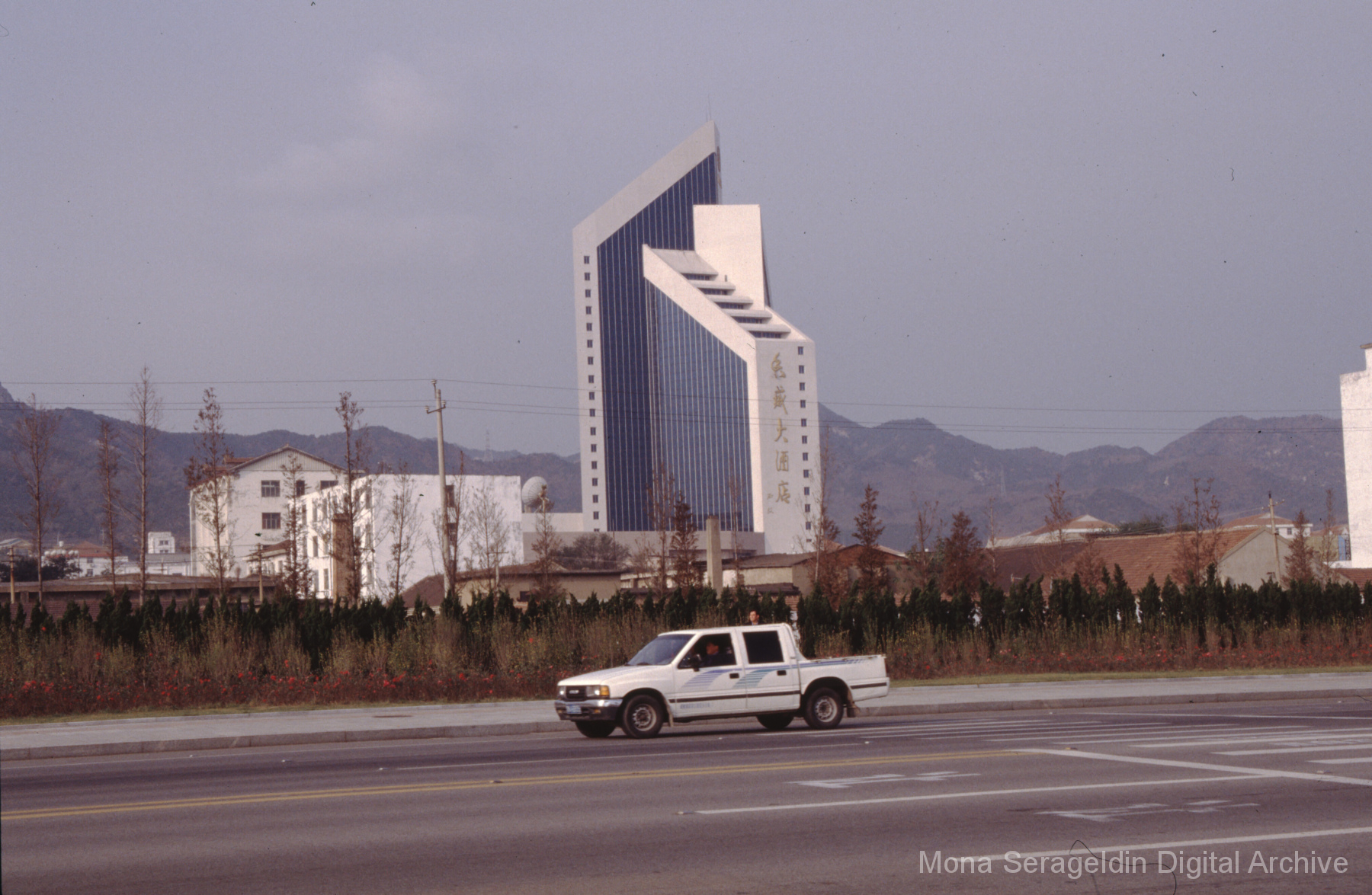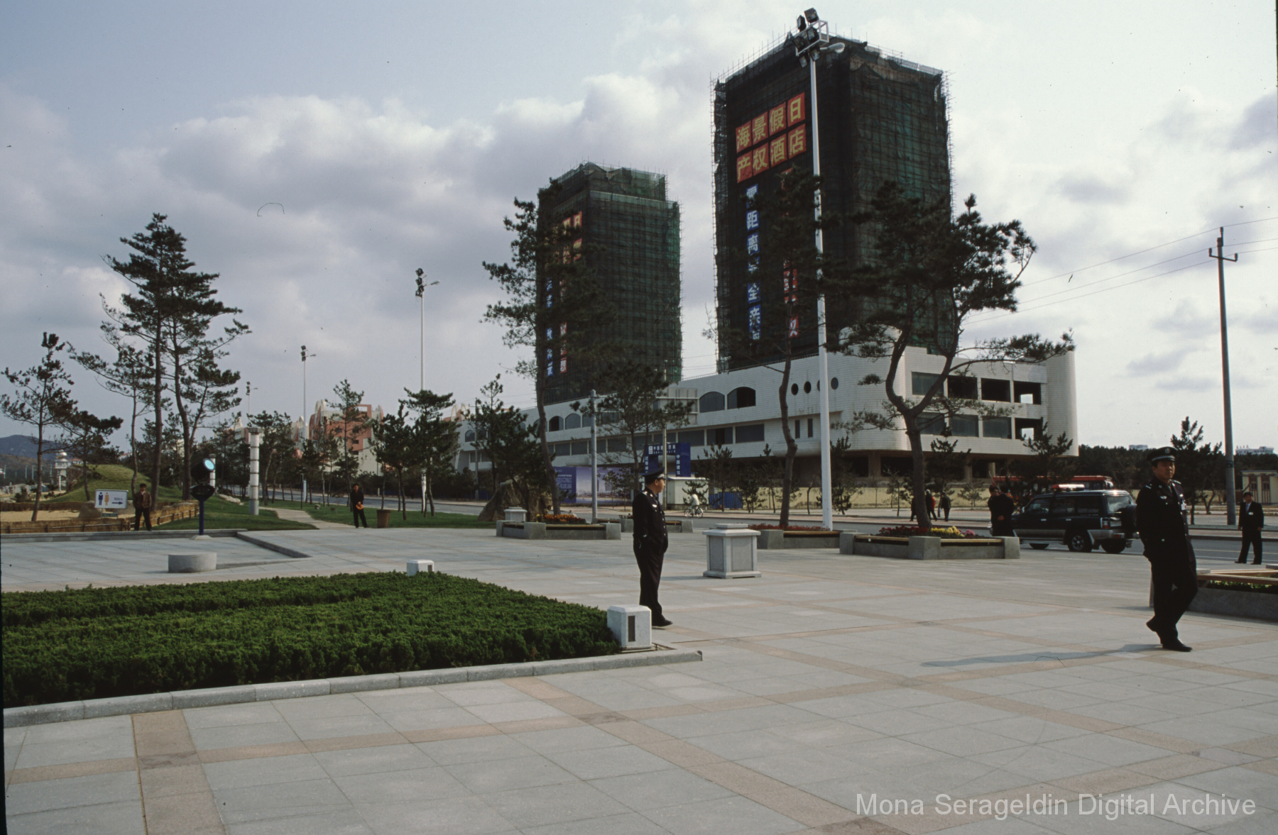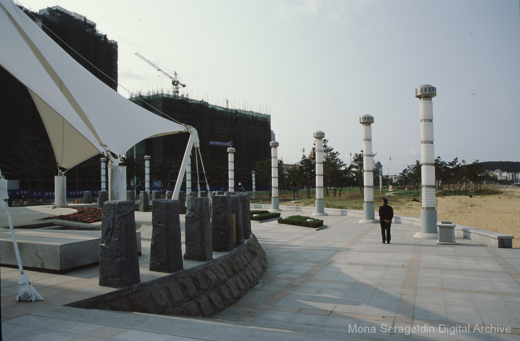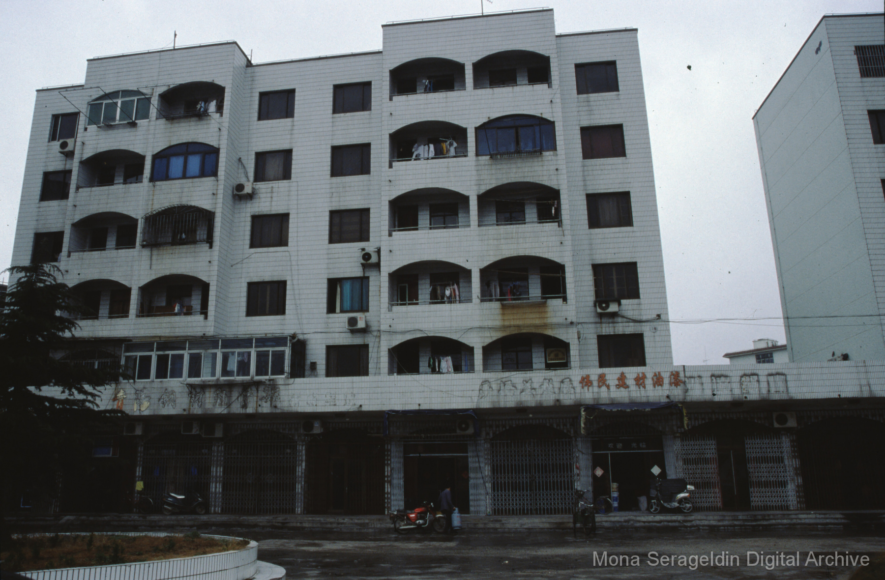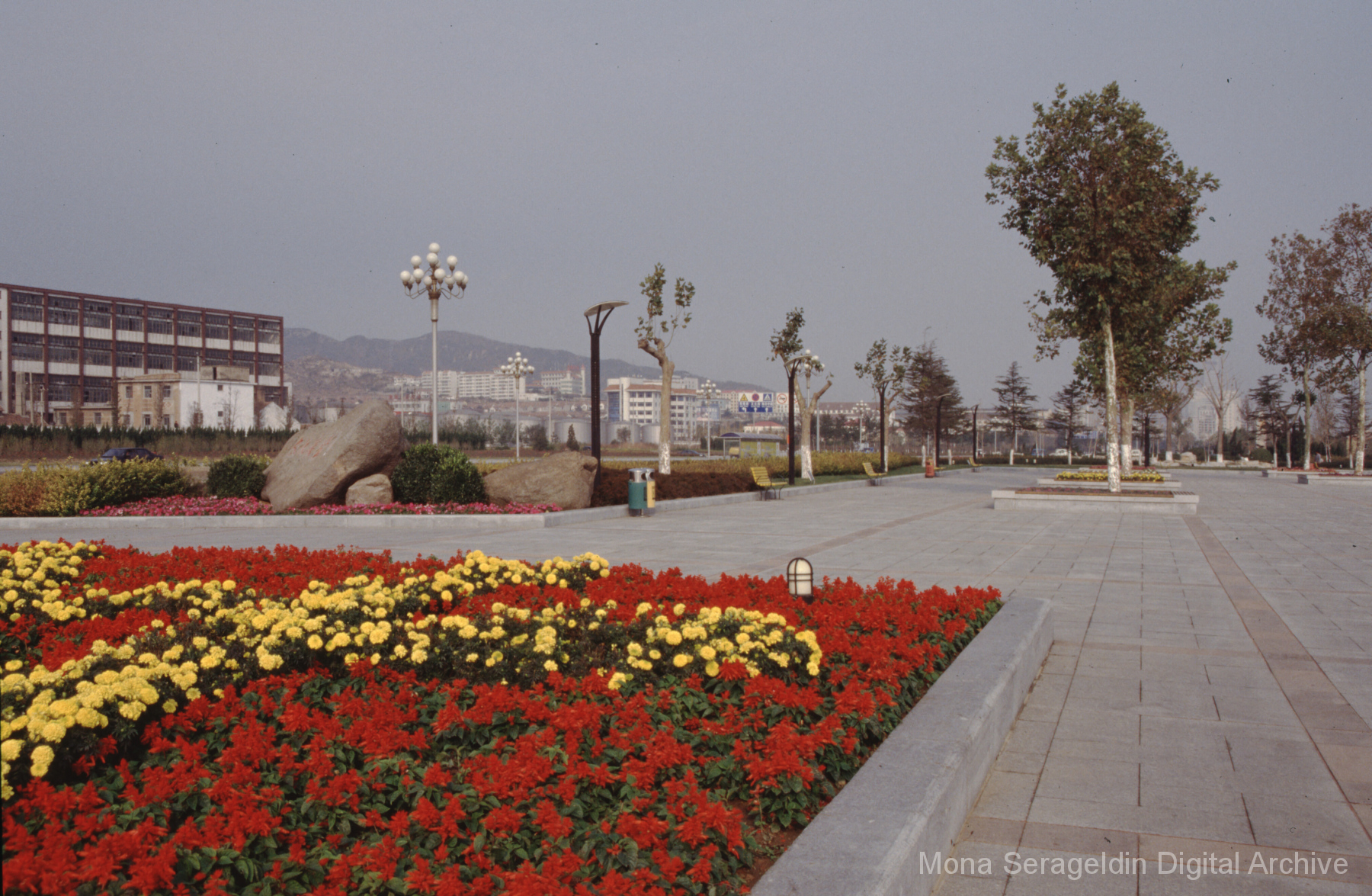 Photographs of the city of Weihai in the Shandong province of China from around 1999. The gallery documents the urban center and housing, including architecture, economic activities, and coastal landscapes. Views include portraits, housing overviews and details, streetscapes, and aerial views. Mona Serageldin is pictured.