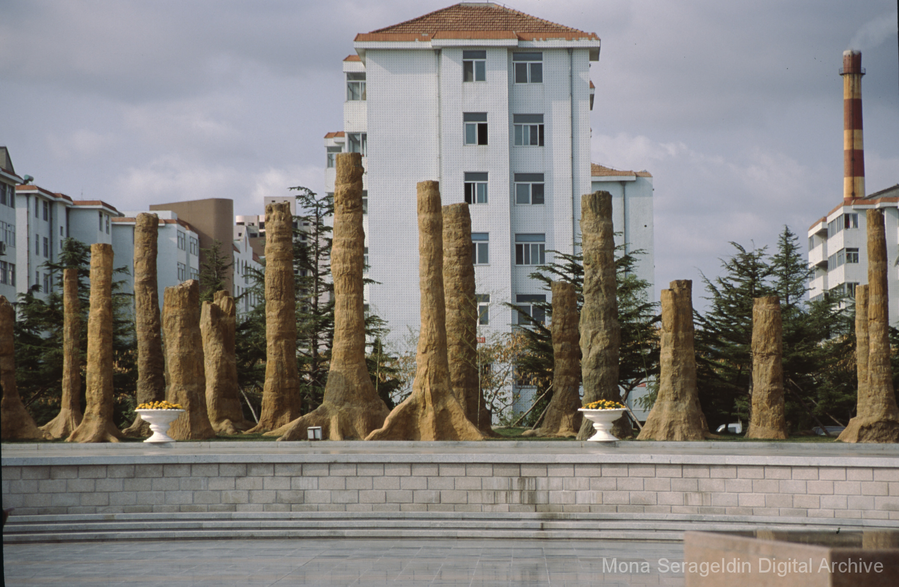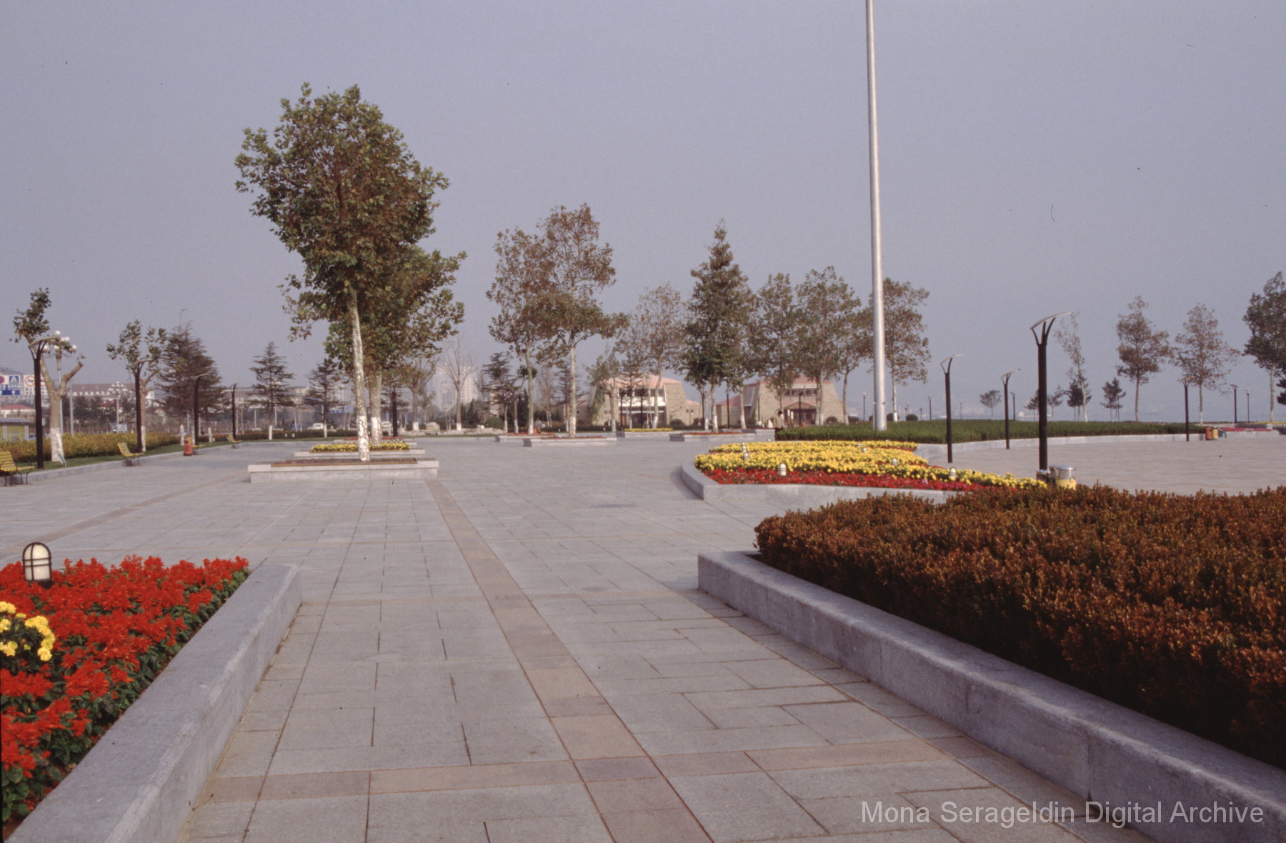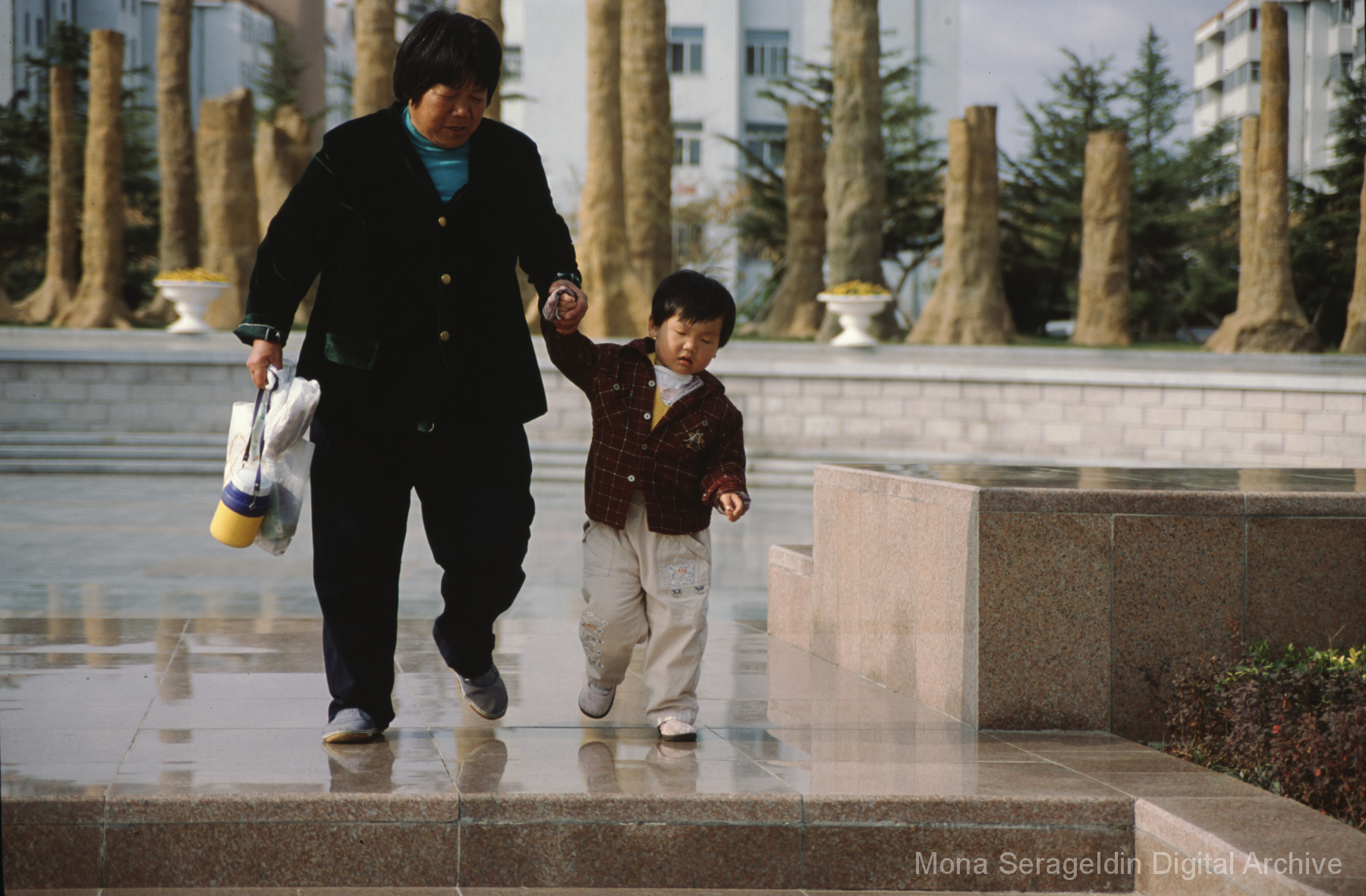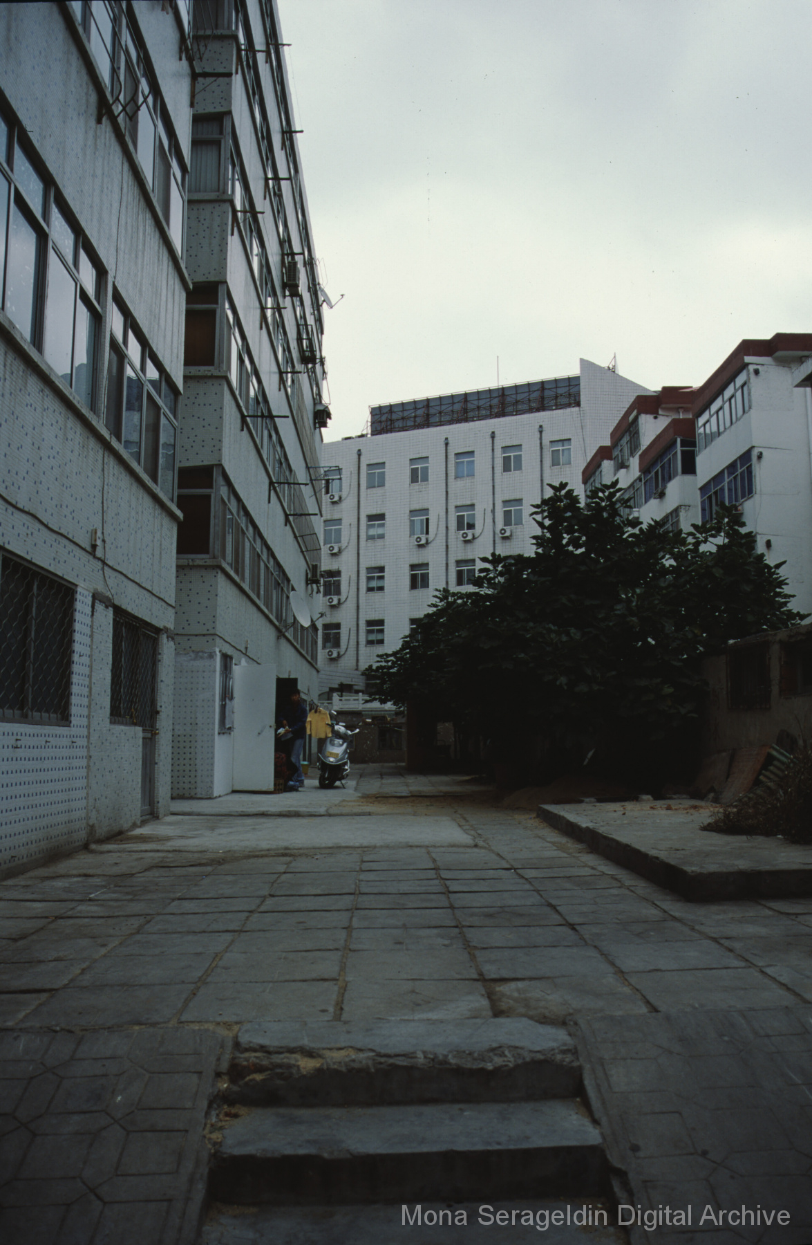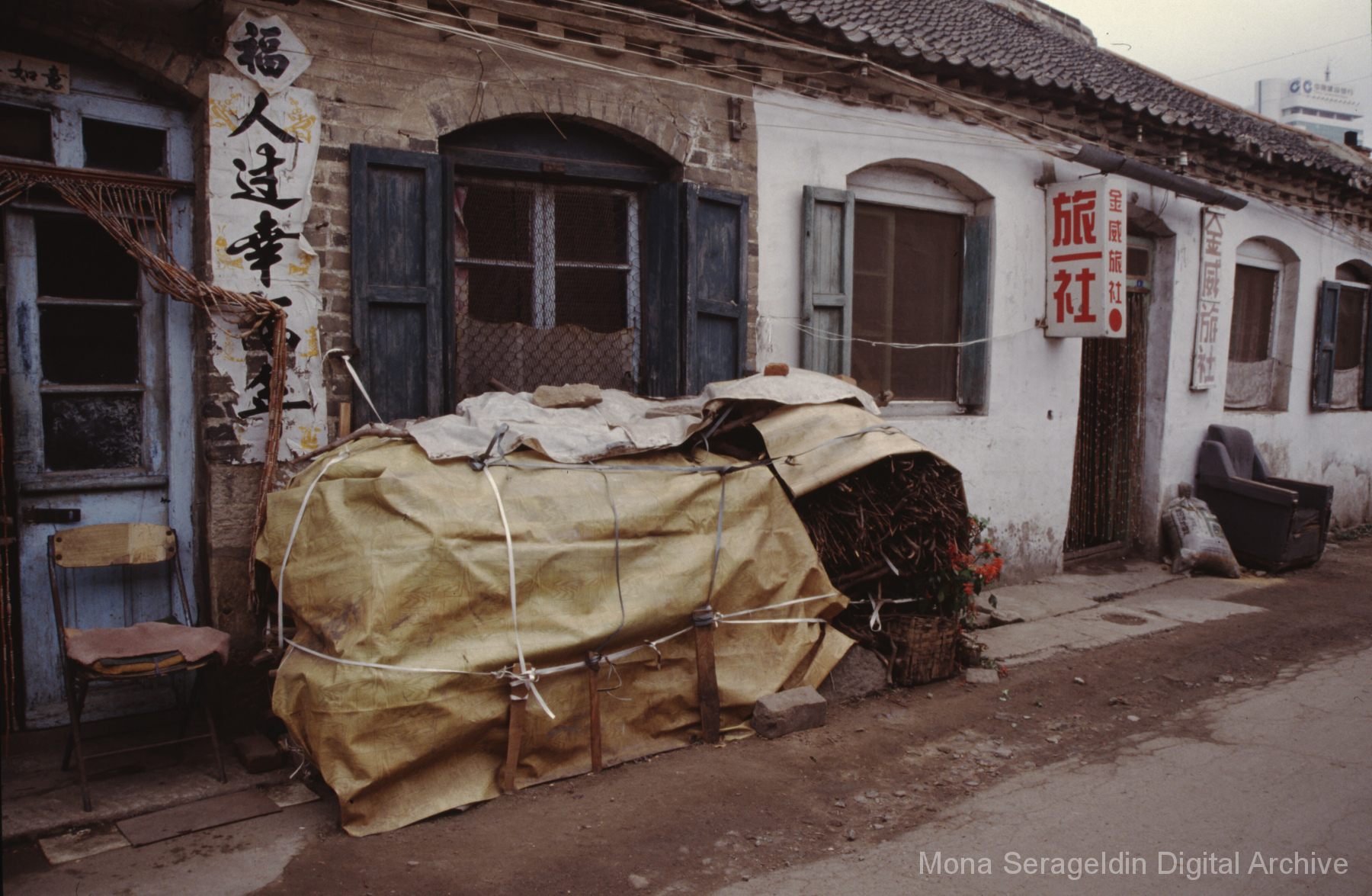 Photographs of the city of Weihai in the Shandong province of China from around 1999. The gallery documents the urban center and housing, including architecture, economic activities, and coastal landscapes. Views include portraits, housing overviews and details, streetscapes, and aerial views. Mona Serageldin is pictured.