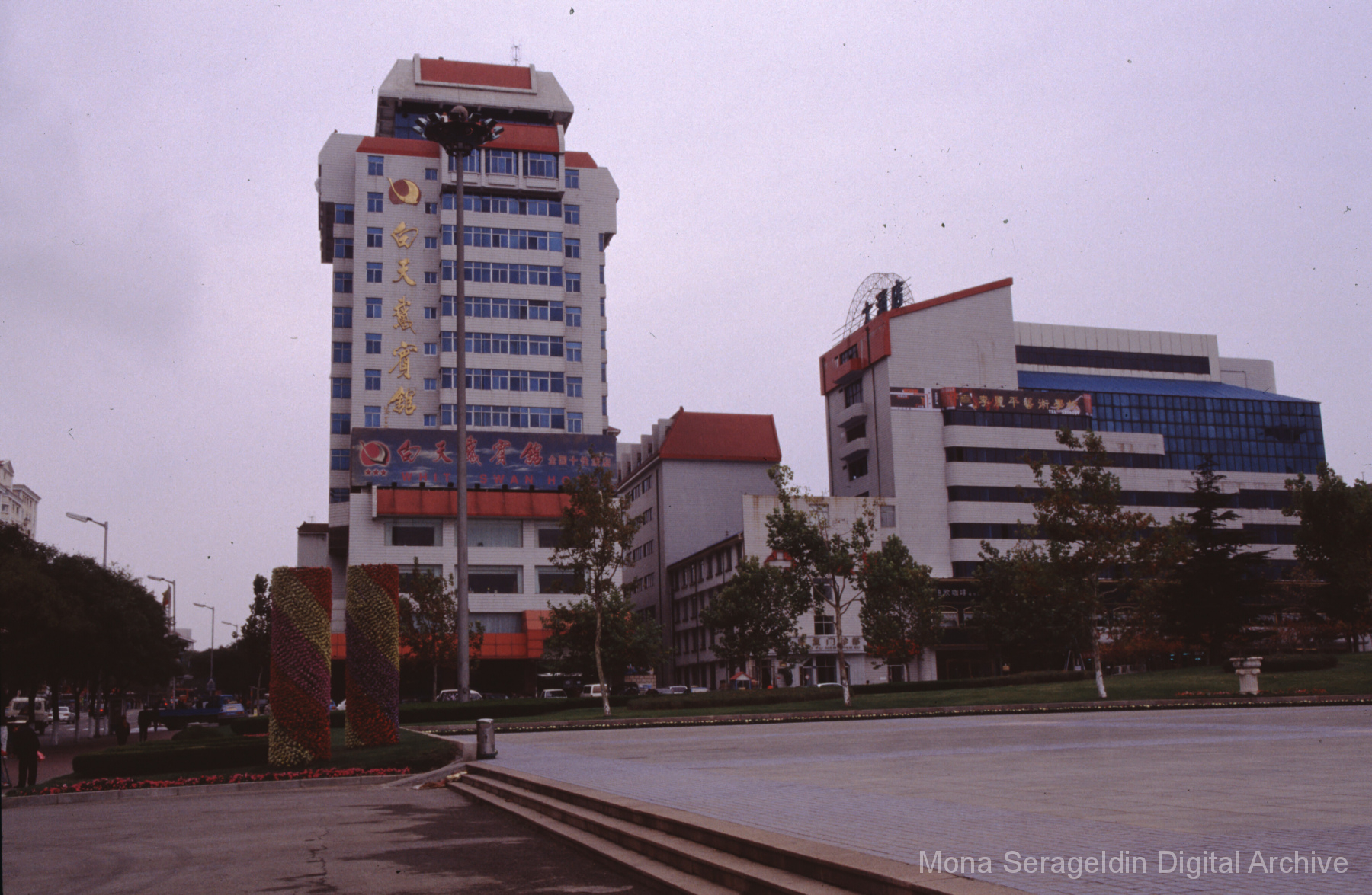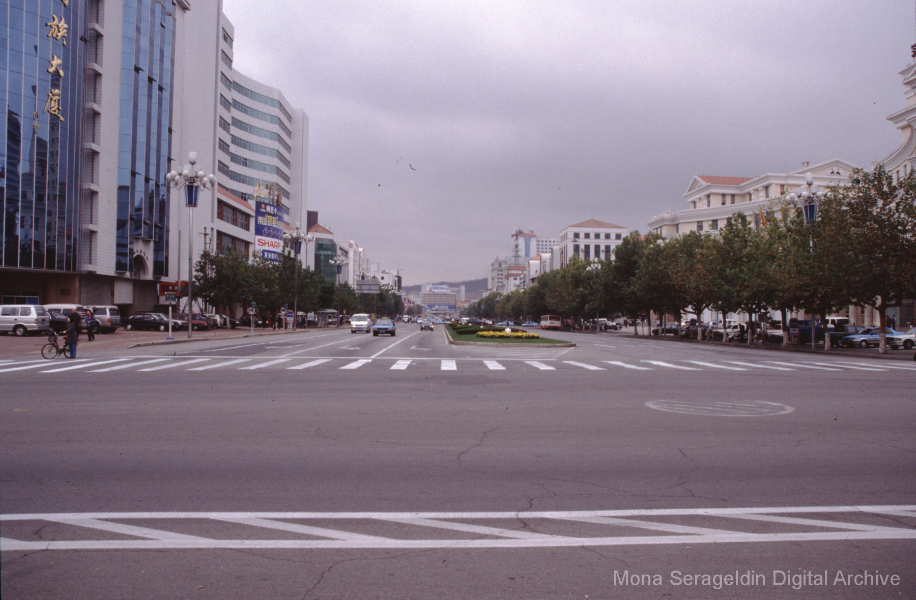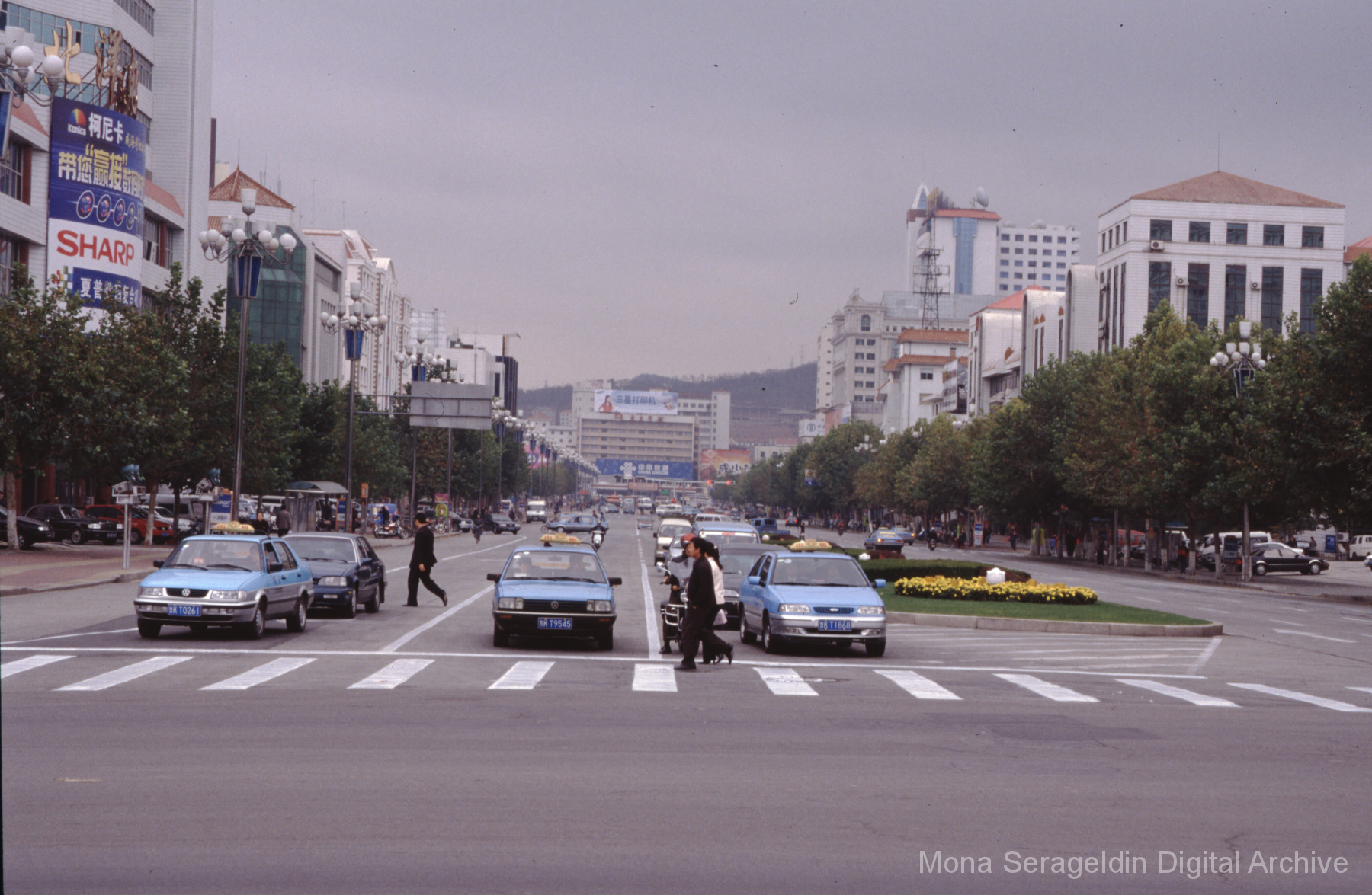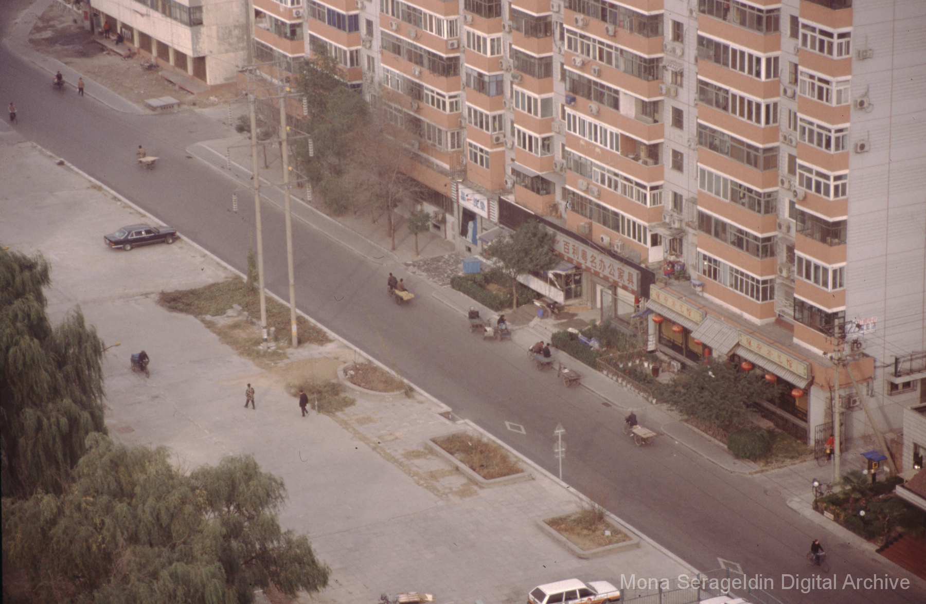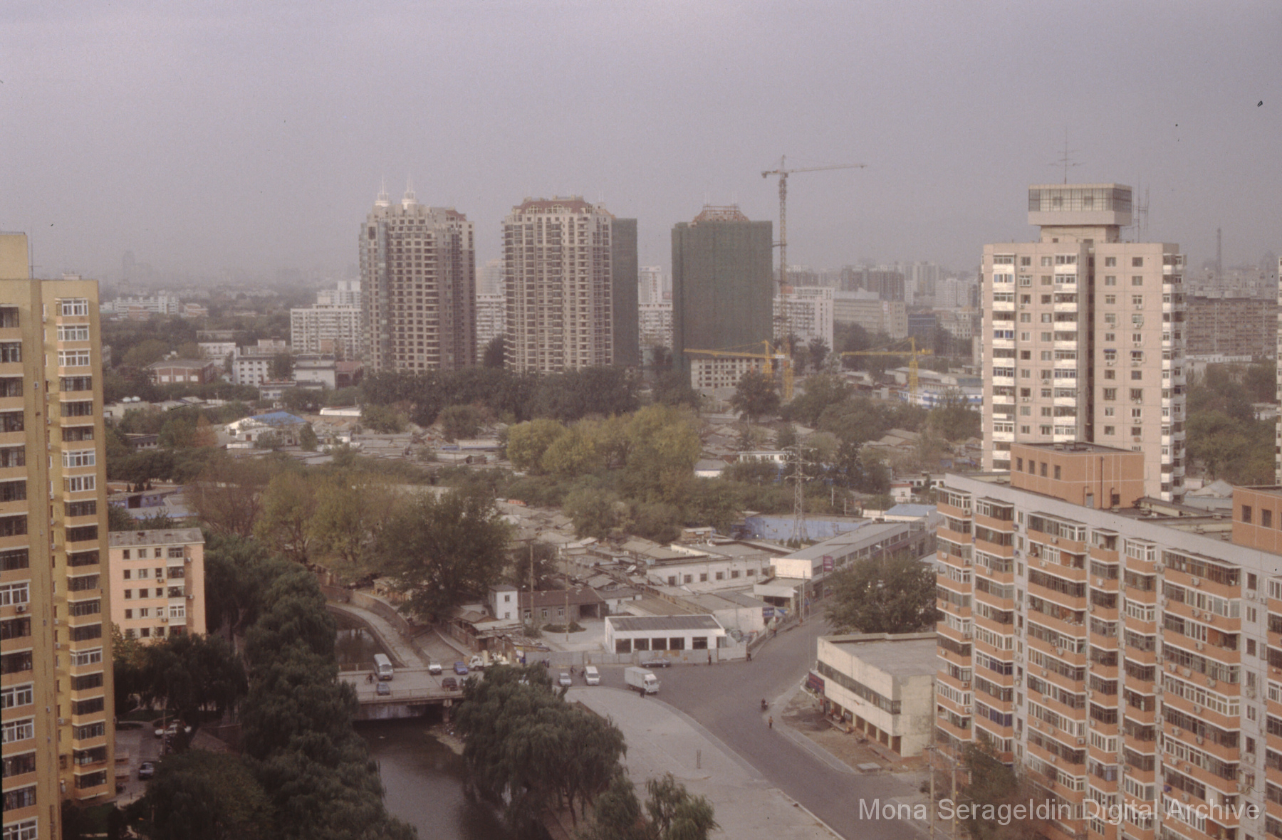Photographs of the city of Weihai in the Shandong province of China from around 1999. The gallery documents the urban center and housing, including architecture, economic activities, and coastal landscapes. Views include portraits, housing overviews and details, streetscapes, and aerial views. Mona Serageldin is pictured.
