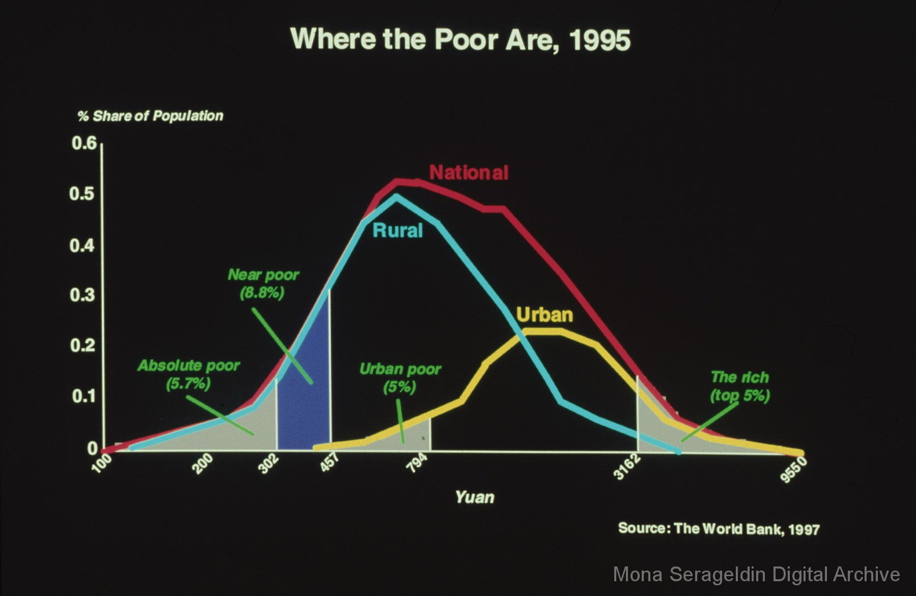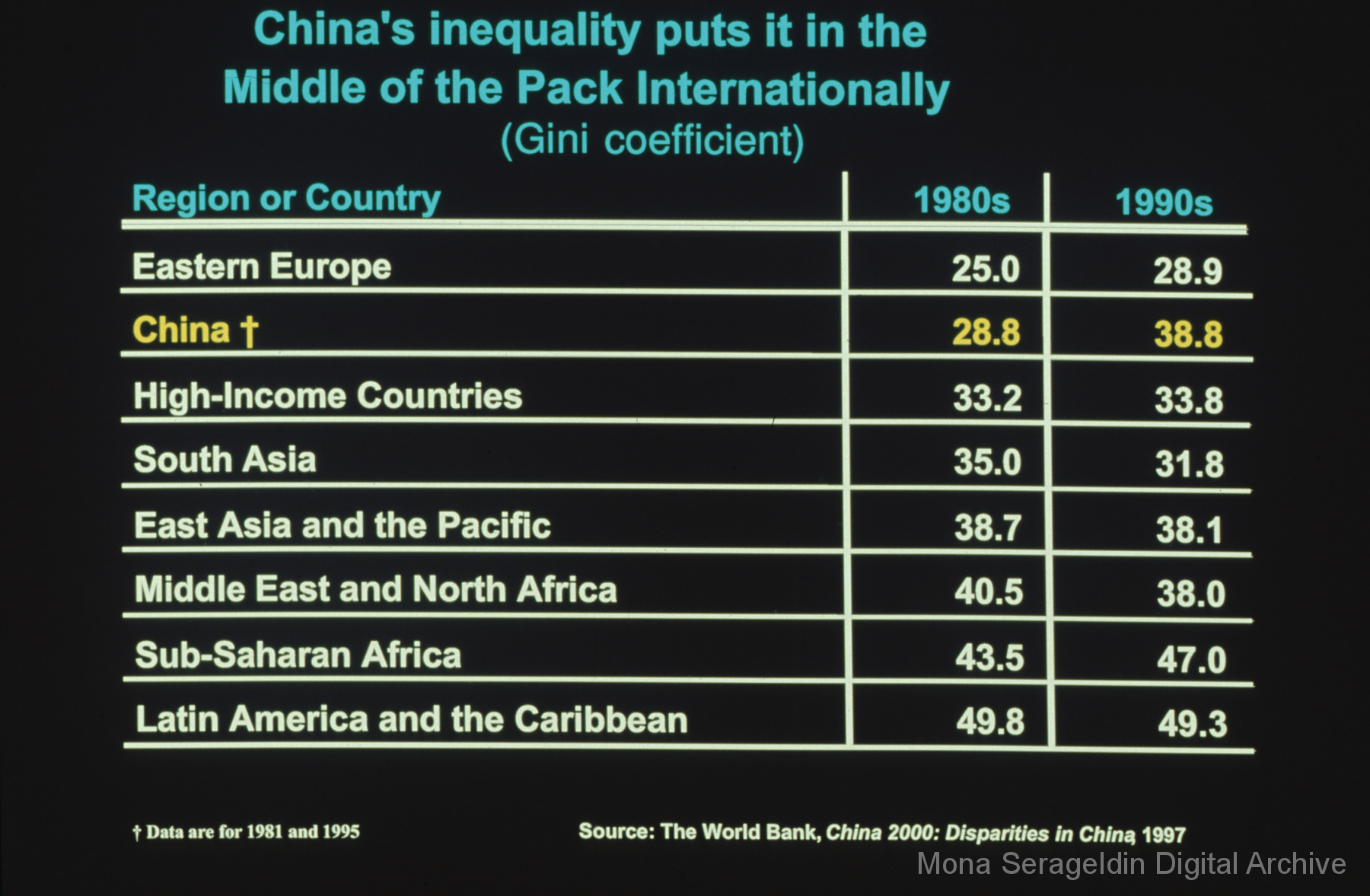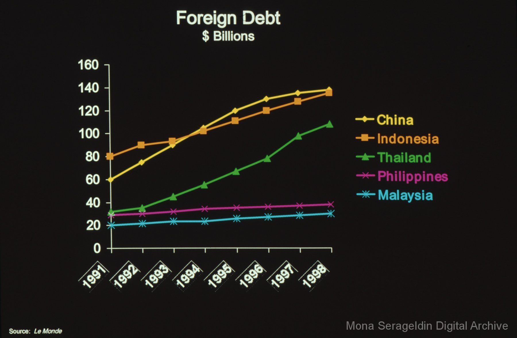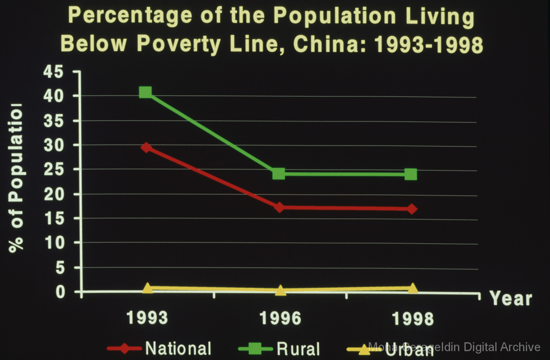 Photographs and graphics for China from 1999 through 2004. The gallery includes views of housing developments and urban streetscapes in Beijing, China, as well as charts and graphs for presentation slides. These graphics cover income disparities in China from 1991-1999 and the Asian Financial Crisis from 1997-2000.
