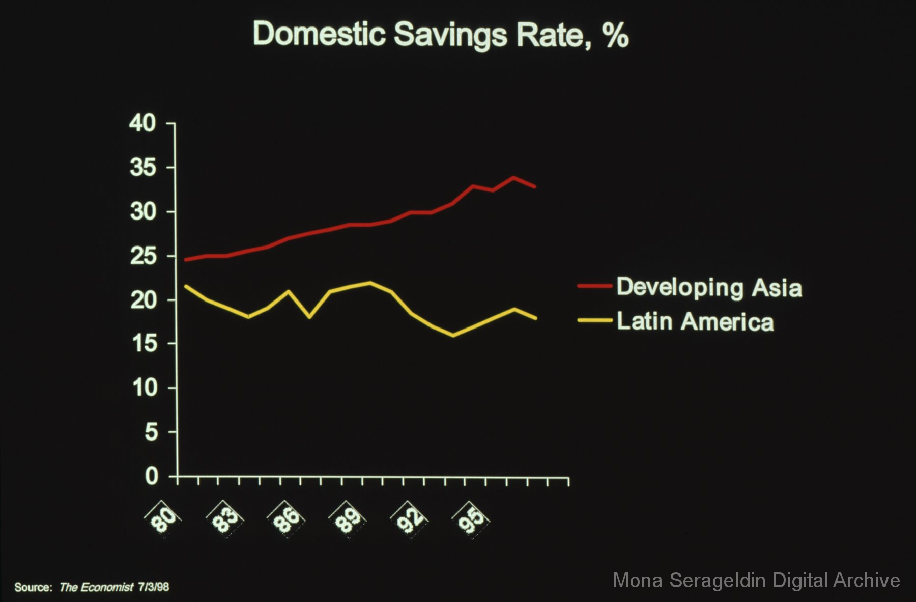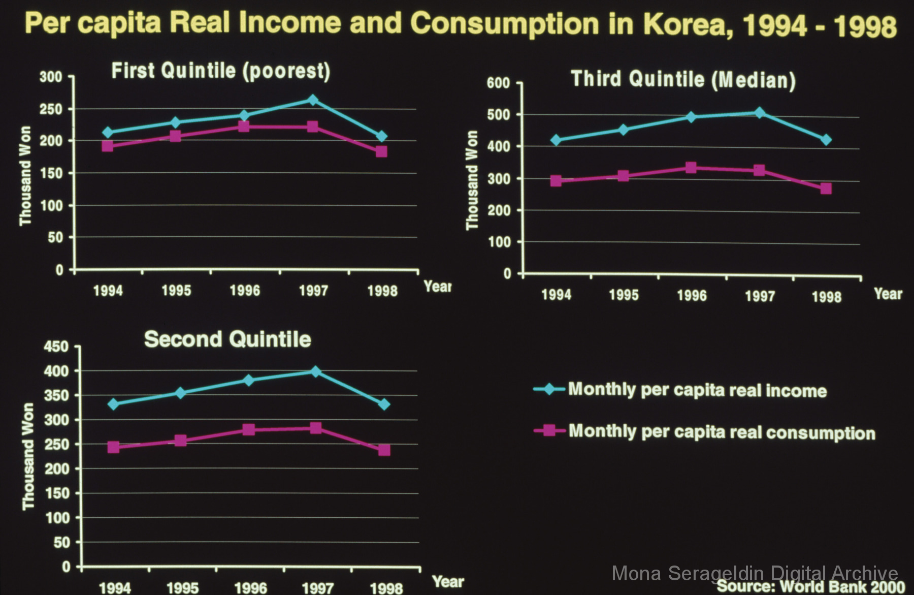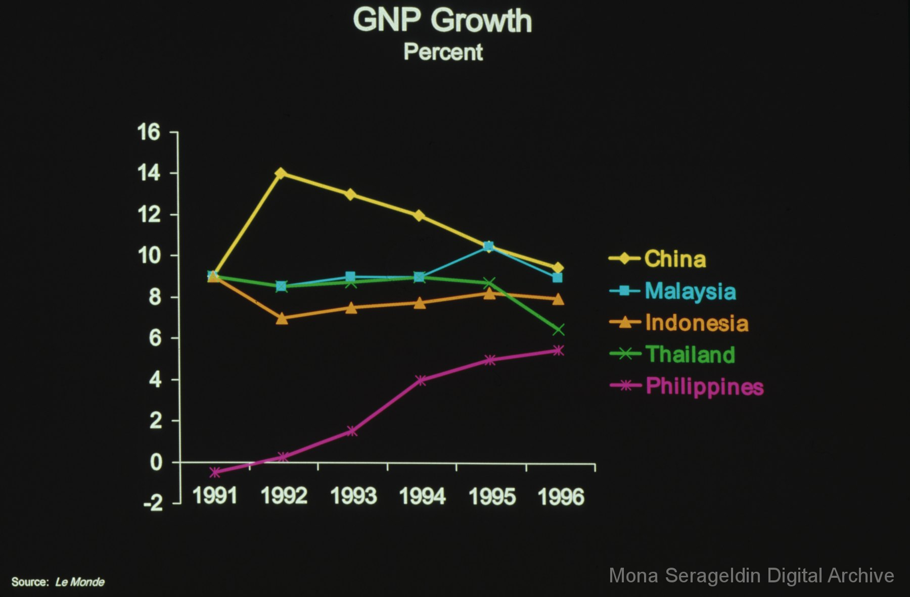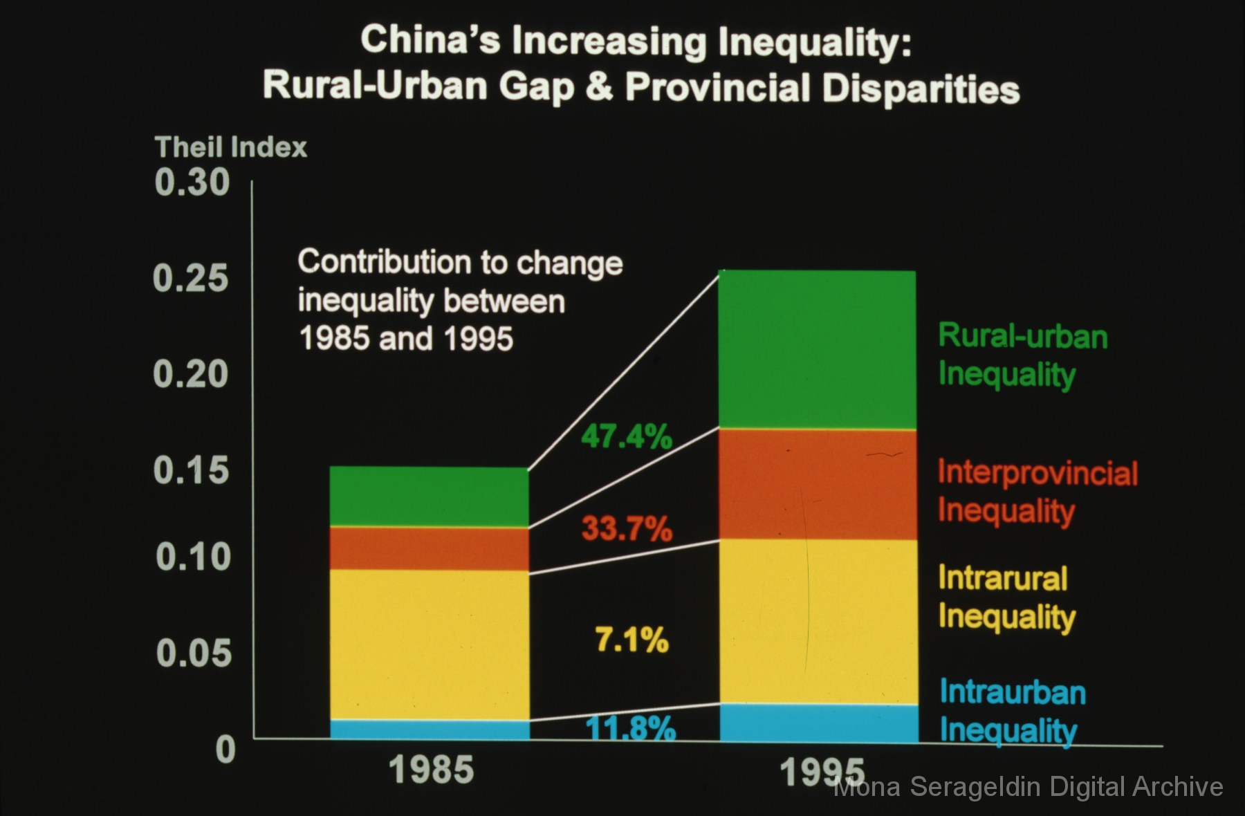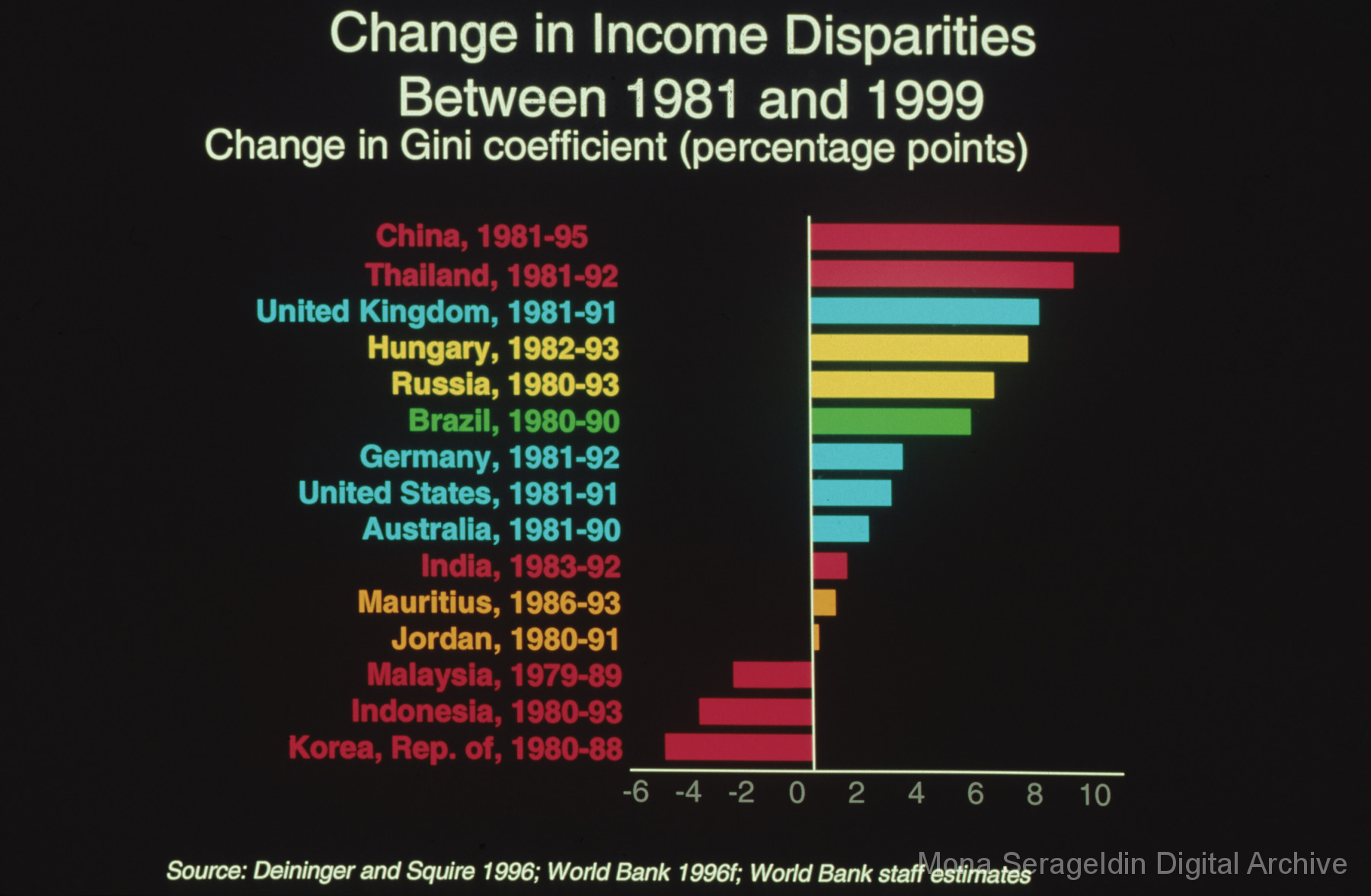 Photographs and graphics for China from 1999 through 2004. The gallery includes views of housing developments and urban streetscapes in Beijing, China, as well as charts and graphs for presentation slides. These graphics cover income disparities in China from 1991-1999 and the Asian Financial Crisis from 1997-2000.