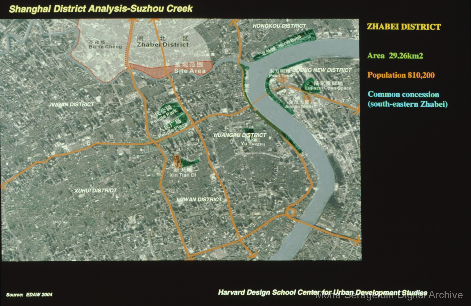 Photographs of Shanghai, China from 1999 through 2004. The gallery shows images of Pudong, a district of Shanghai, including city models of residential blocks and high-rise buildings. The gallery also covers Puxi, the historic center of Shanghai, and documents the Bund district, Nanjing Road and pedestrians, an old French quarter, and older residential and commercial neighborhoods slated for demolition. Views include streetscapes, details and overviews of buildings, and some graphics.