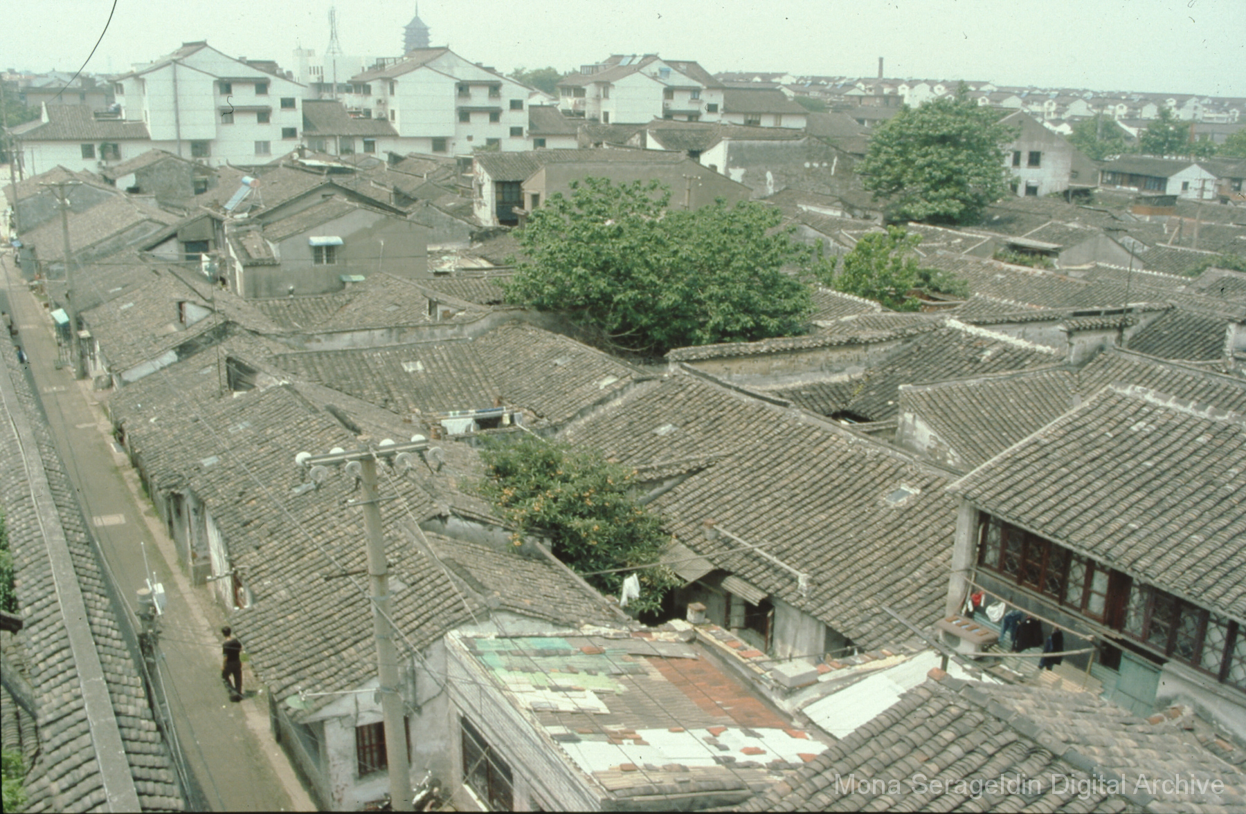Photographs of the city of Zhouzhuang in the Jiangsu province of China from around 1999. Images show houses along canal and the road to Zhouzhuang.