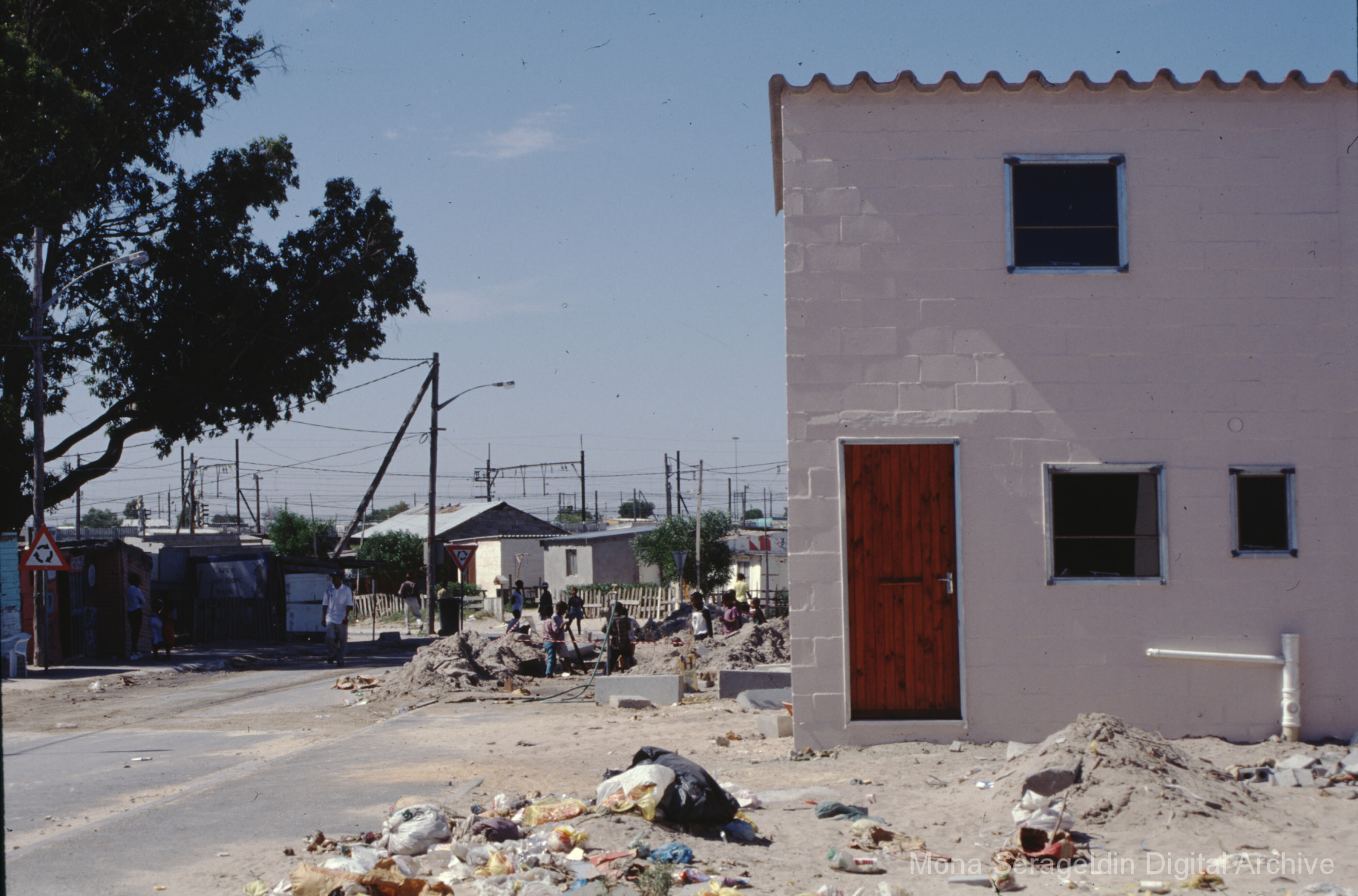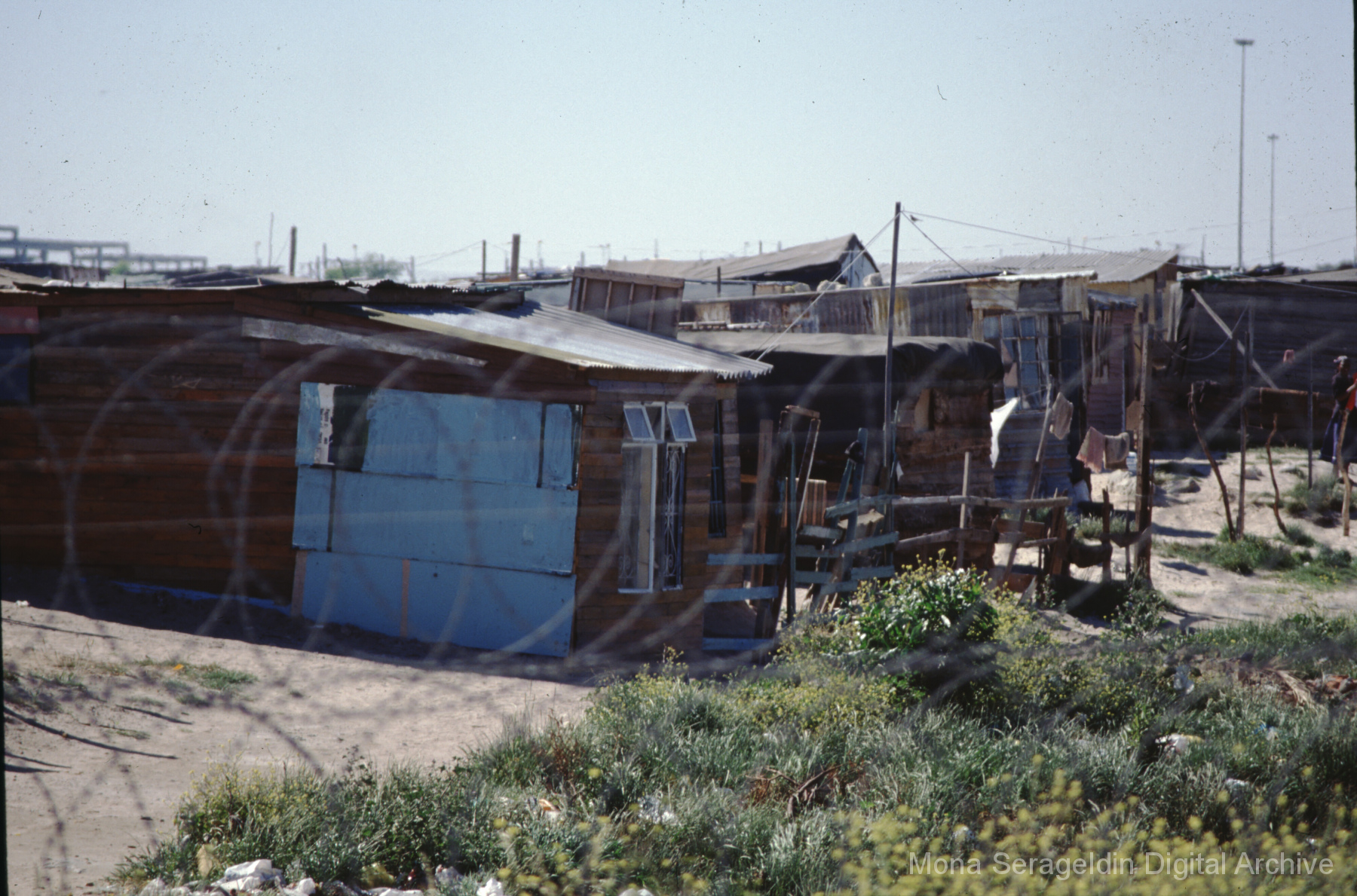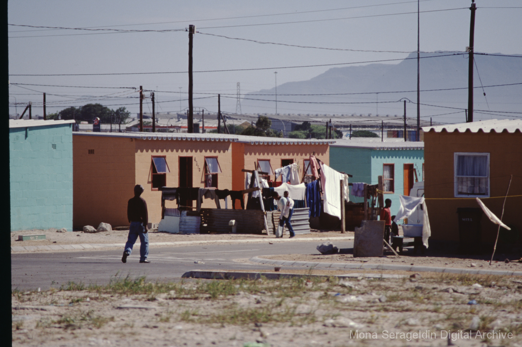 This gallery covers housing and upgrading projects in Cape Town in the Western Cape province of South Africa, from around 1998 through 2002. Photographs include views of informal settlements, new housing projects, and locations with environmental issues, including an area previously hit by a tornado. The gallery also shows Mona Serageldin at various landmarks near Cape Town, including the Cape of Good Hope.