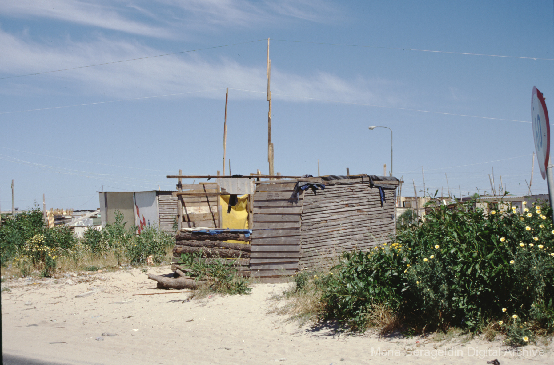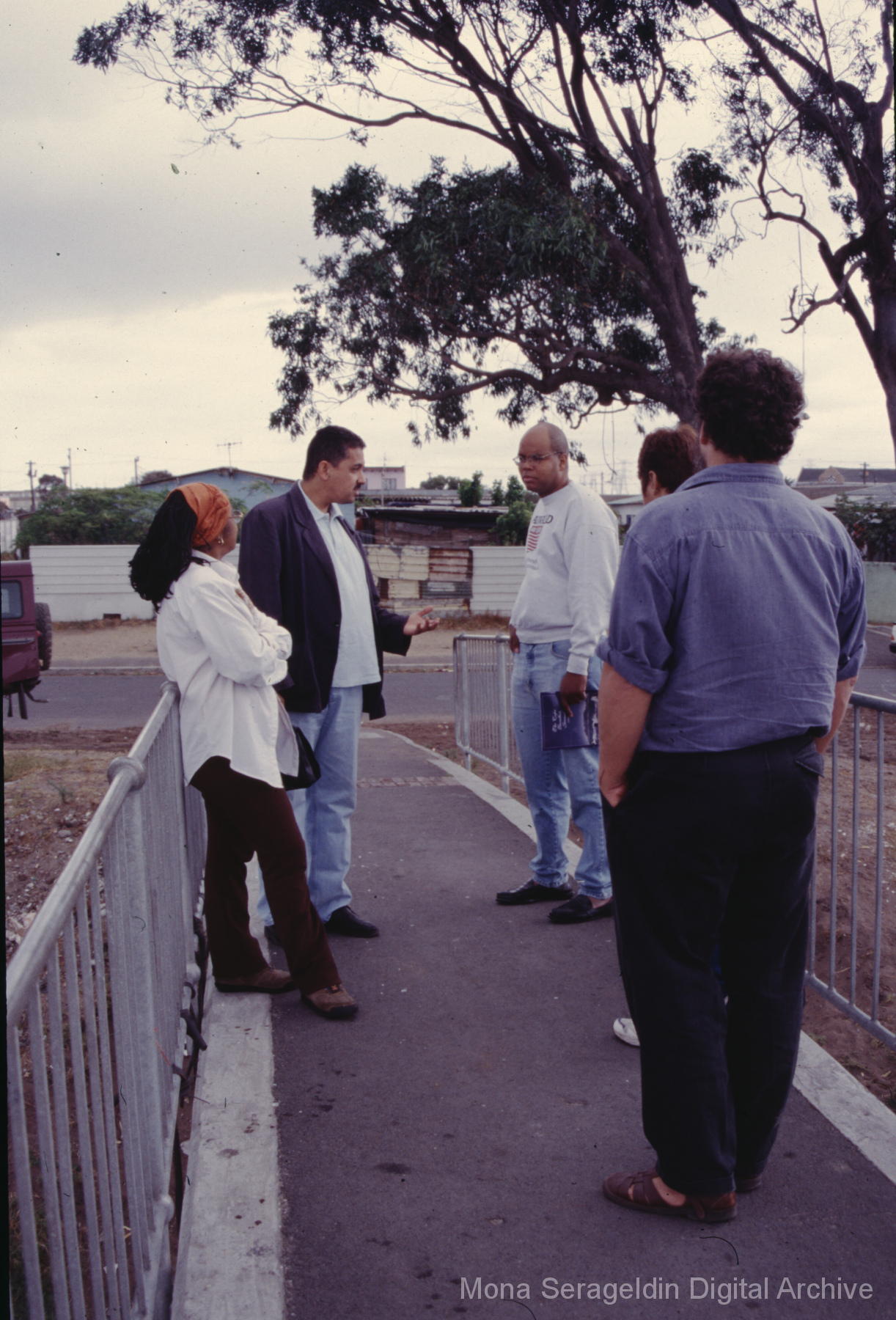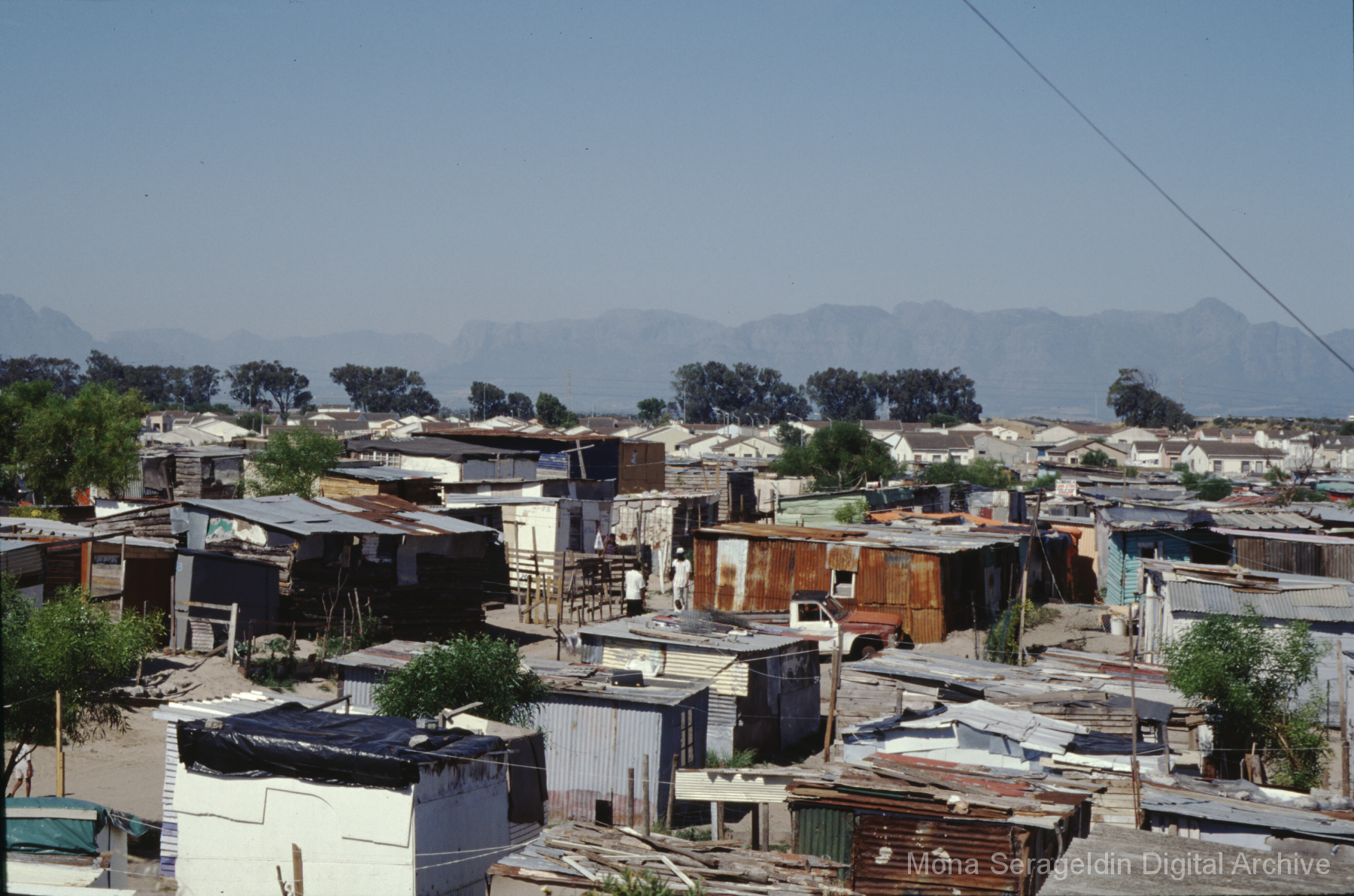 This gallery covers housing and upgrading projects in Cape Town in the Western Cape province of South Africa, from around 1998 through 2002. Photographs include views of informal settlements, new housing projects, and locations with environmental issues, including an area previously hit by a tornado. The gallery also shows Mona Serageldin at various landmarks near Cape Town, including the Cape of Good Hope.
