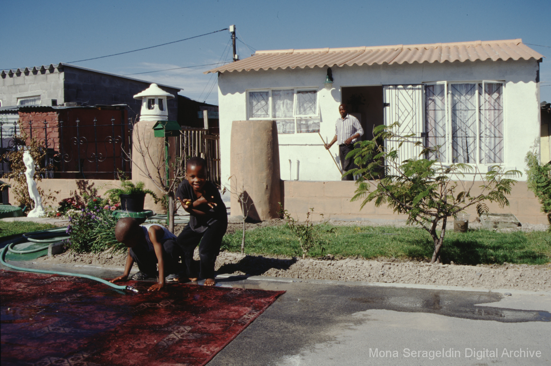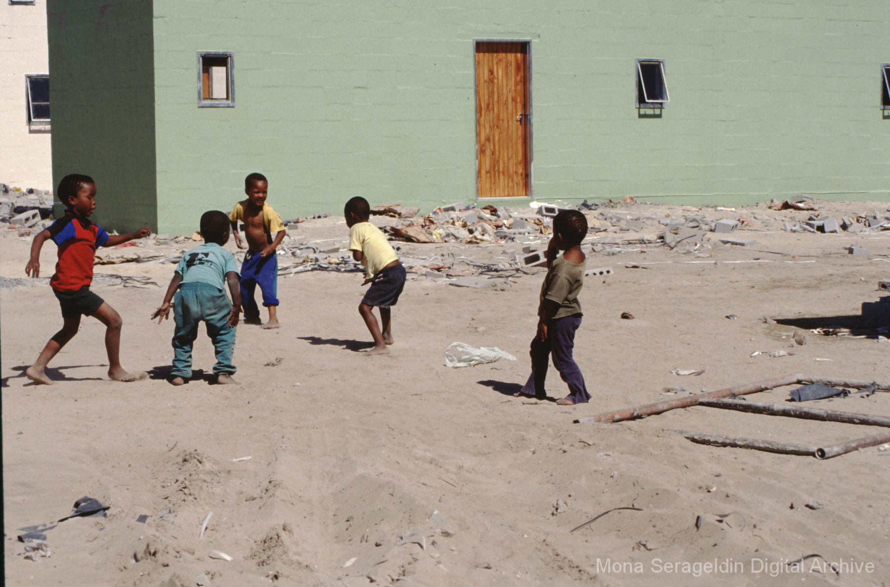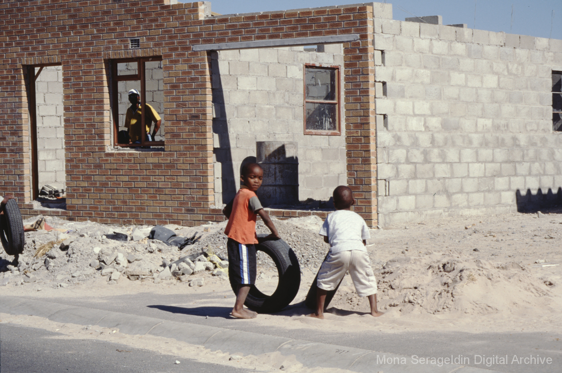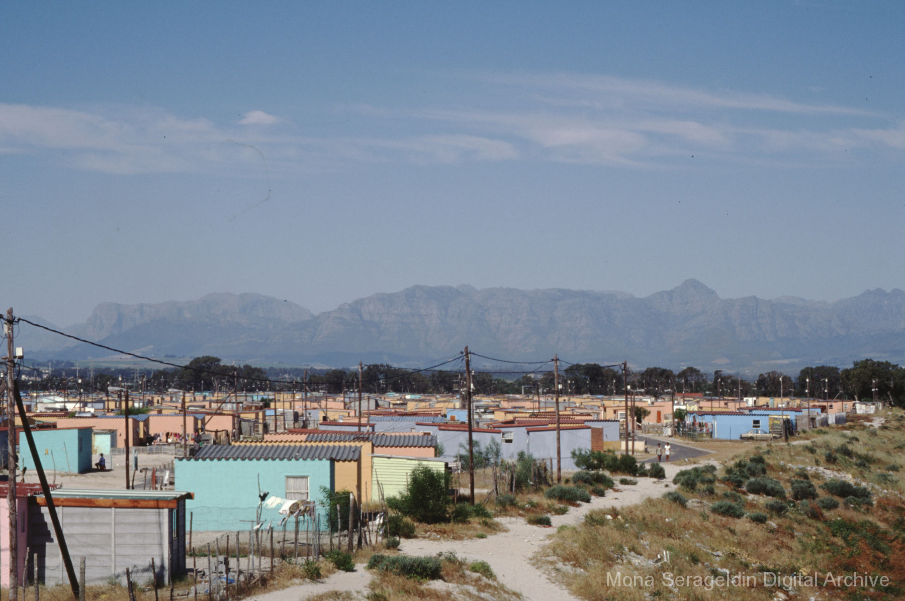 These image collections document housing and infrastructure projects and natural landscapes from around South Africa from 1996 through 2002, primarily from 2000-2002, and accompany Serageldin’s other photograph collections on South Africa from around the same years, these focusing on Municipal Infrastructure Programs and case studies of individual towns. The Western Cape province is most widely represented, covering primarily Cape Town and the Cederberg mountain range. Views of the area show aerial views, landscapes, streetscapes, and portraits.
