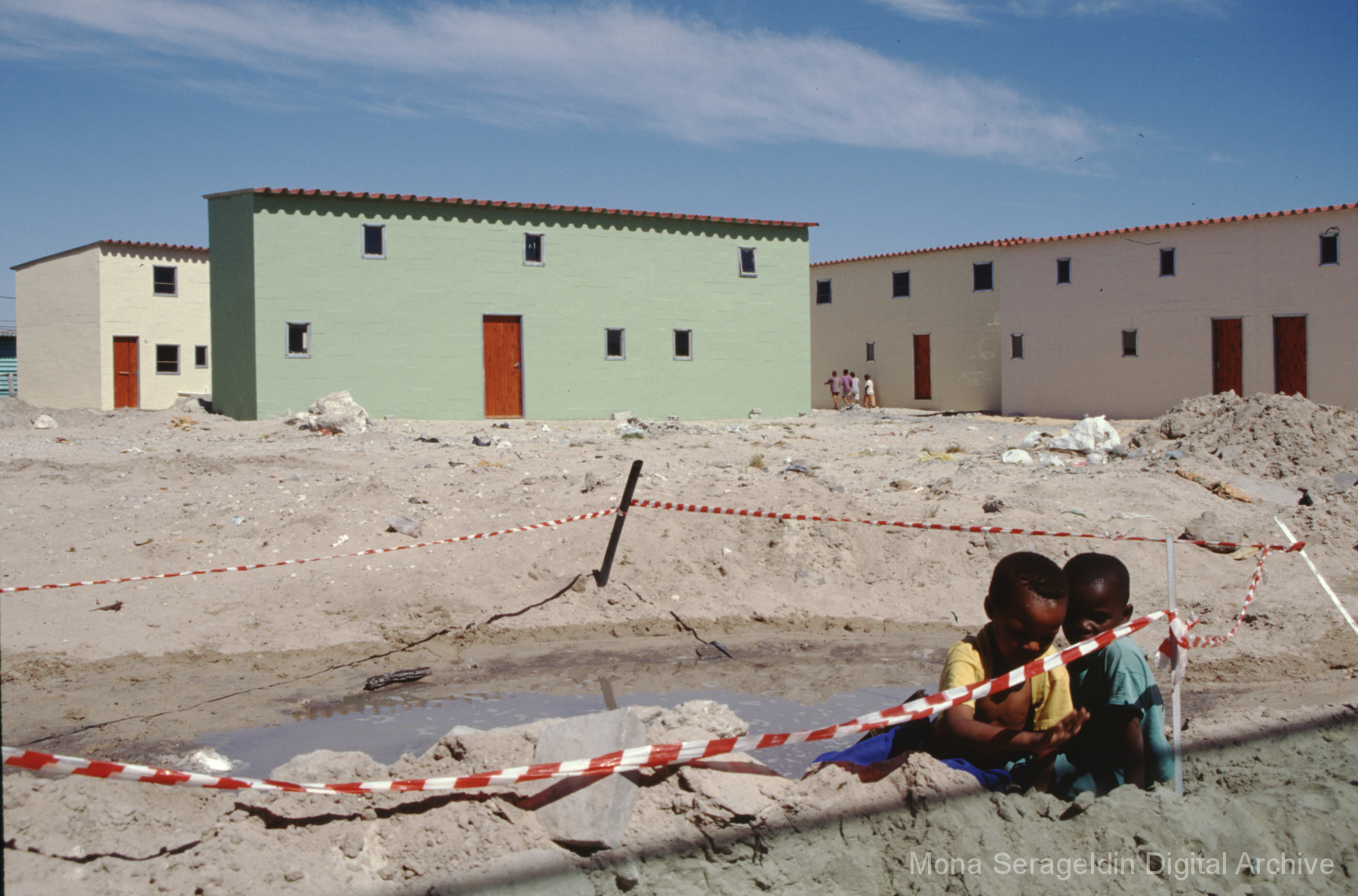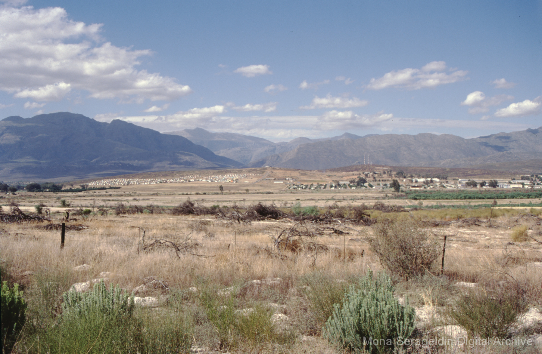 Photographs of the Western Cape province of South Africa from around 2000 through 2002. The gallery covers housing projects, a wastewater treatment site, a dam project, natural landscapes around the Kagga Kamma Nature Reserve and Cape Point, and aerial views showing landscapes around the towns of Knsyna and Little Karoo. Views include streetscapes and building exteriors, overviews of infrastructure and natural landscapes, aerial views, and portraits of Mona Serageldin.