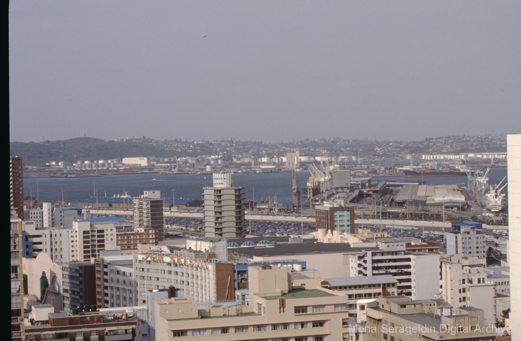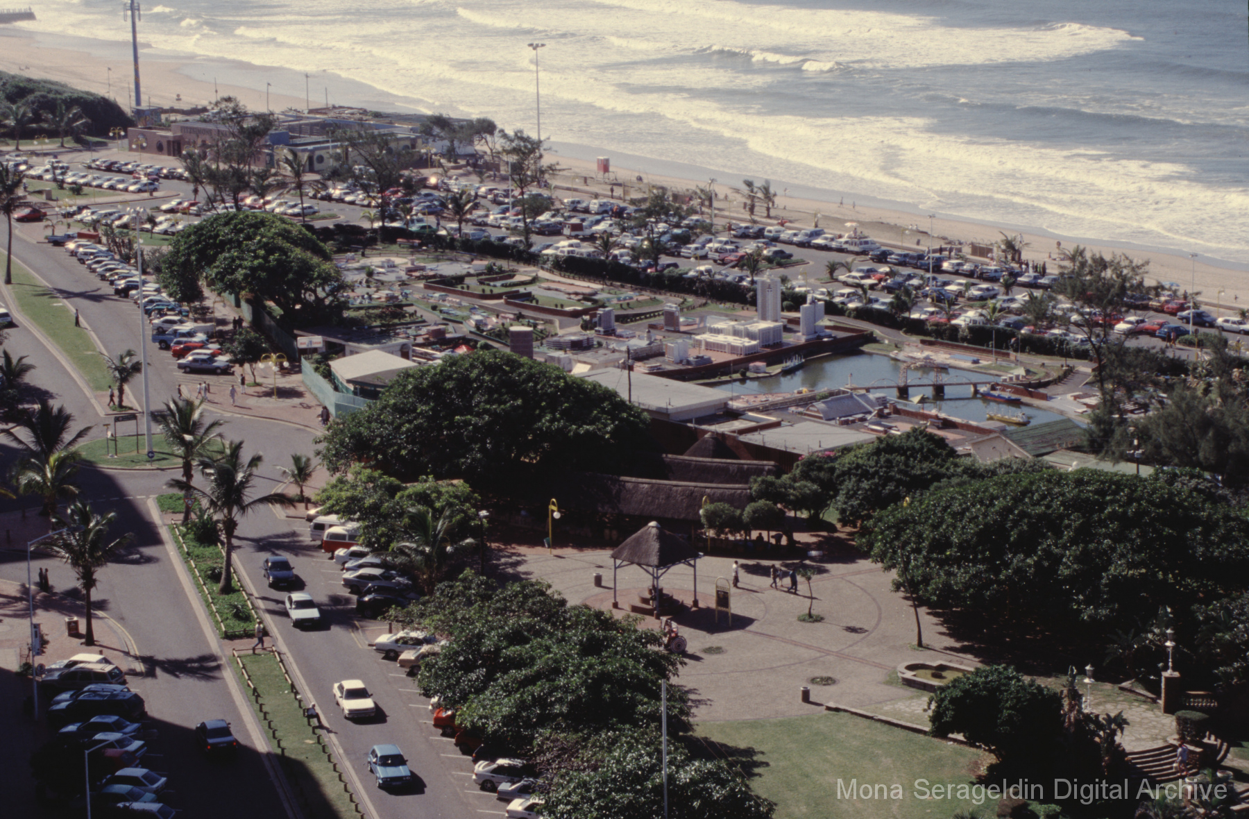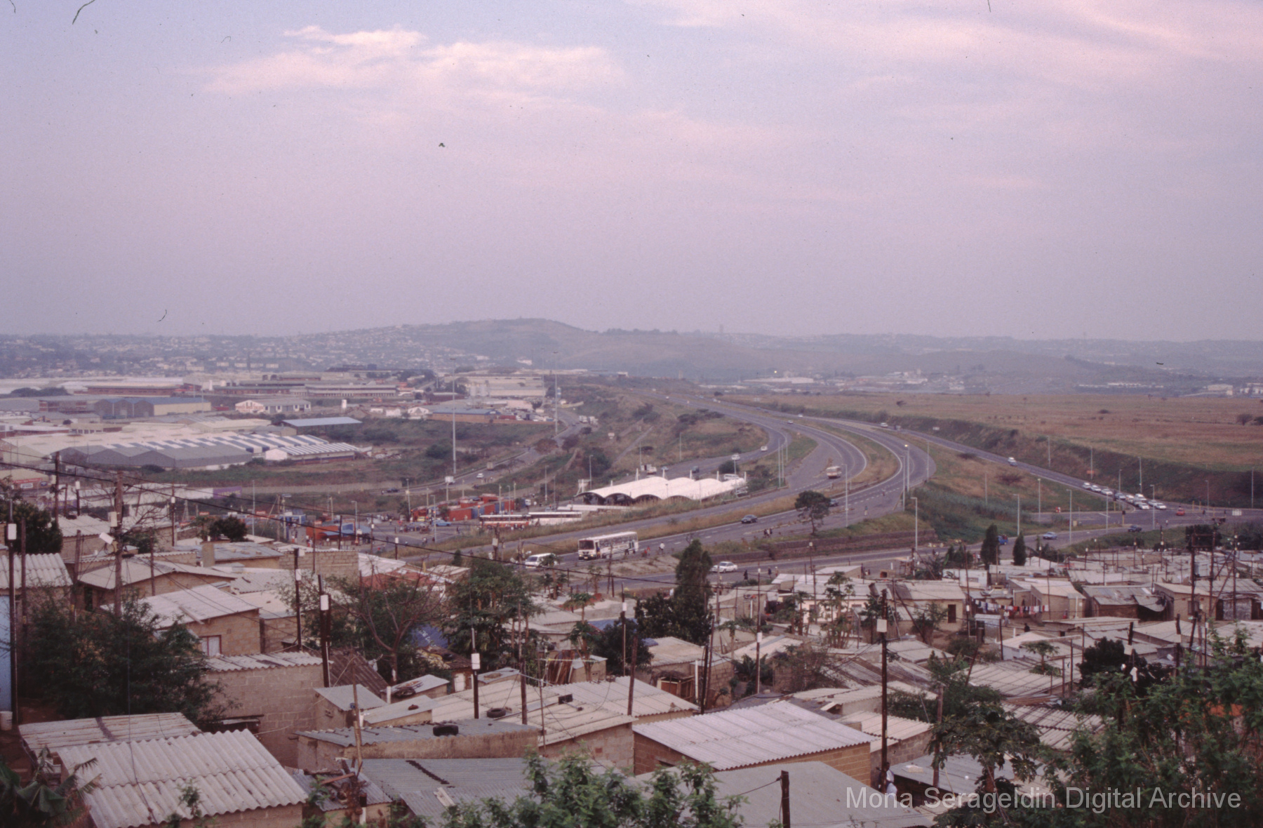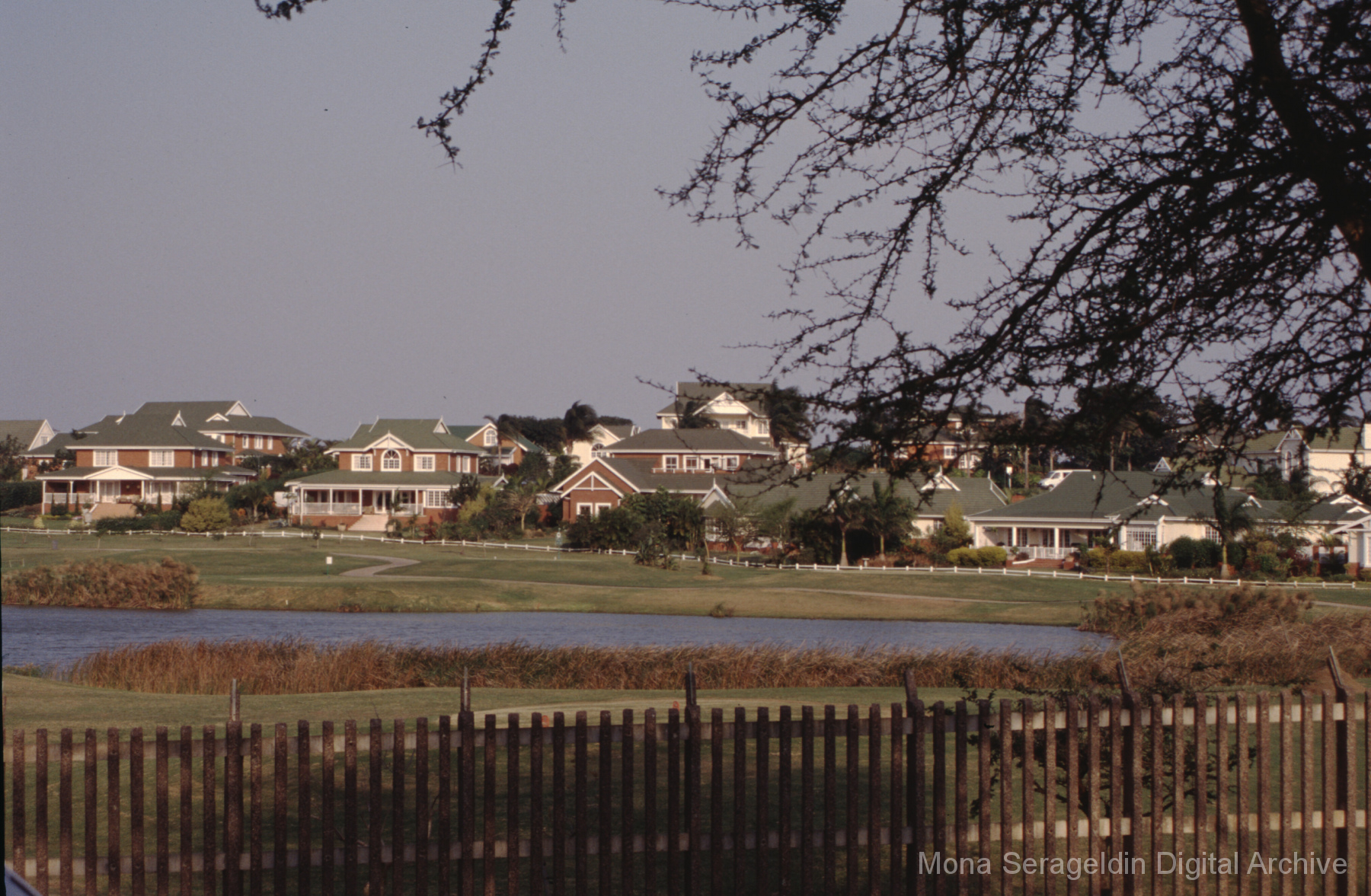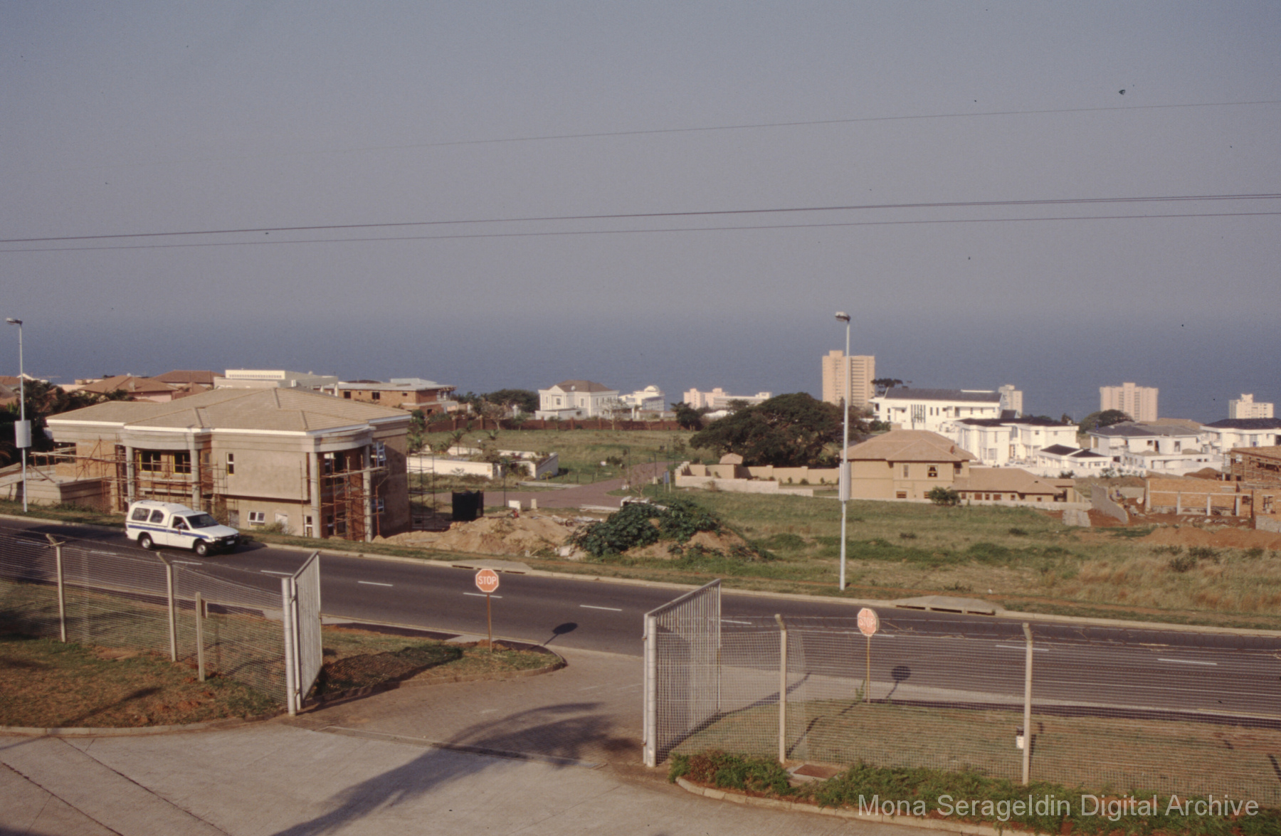 Photographs of the coastal city of Durban in the province of KwaZulu-Natal in South Africa from 1998-2000 and 2002. The gallery documents the waterfront region of the city and the metro area extension to the south, including views of old housing and new private housing developments. Images show aerial views of the region and resort beachfront, overviews of housing, roadways, and natural landscapes, and interiors of a new shopping mall.