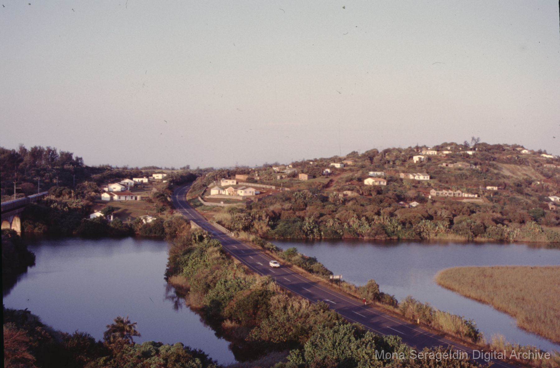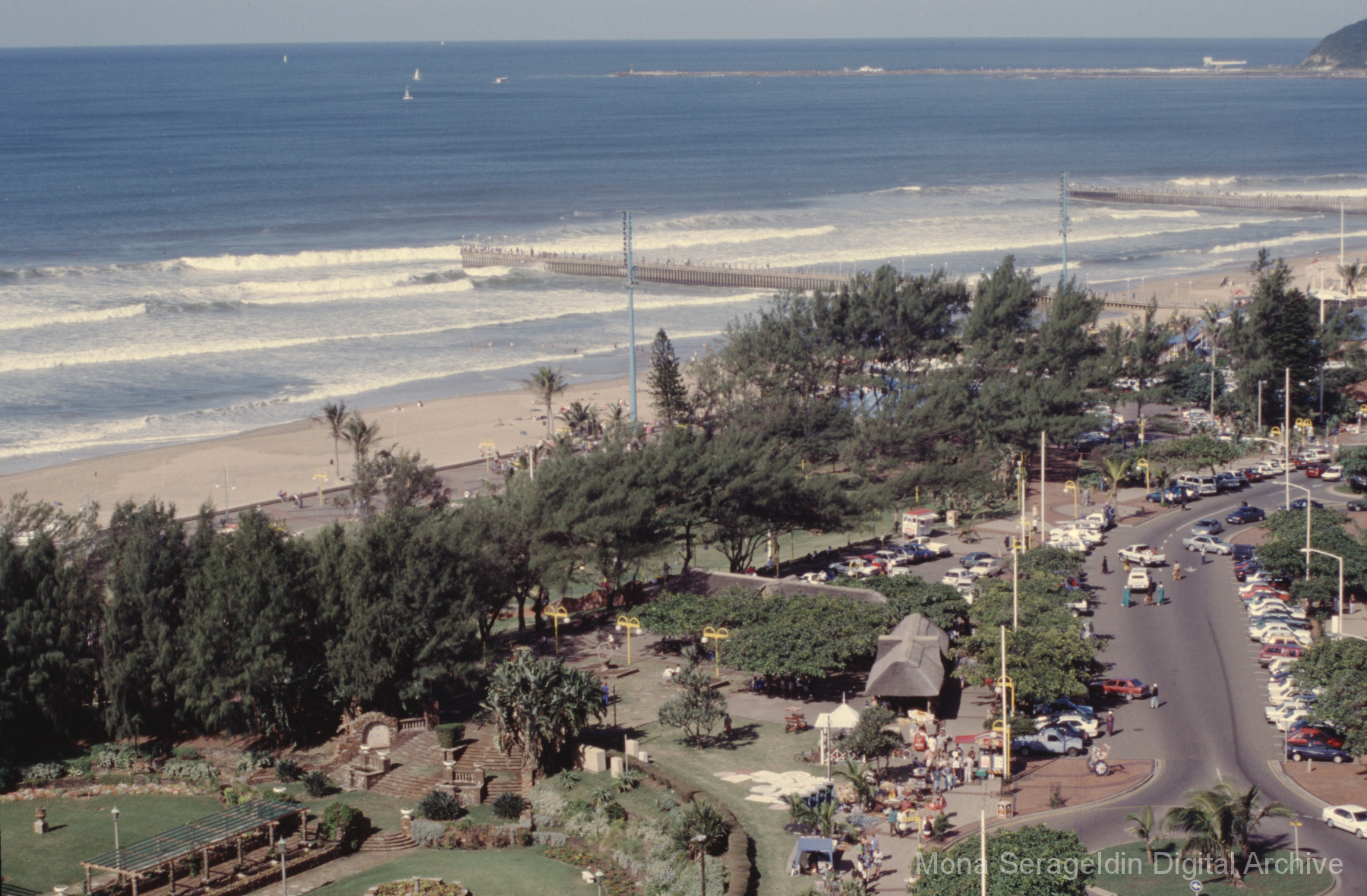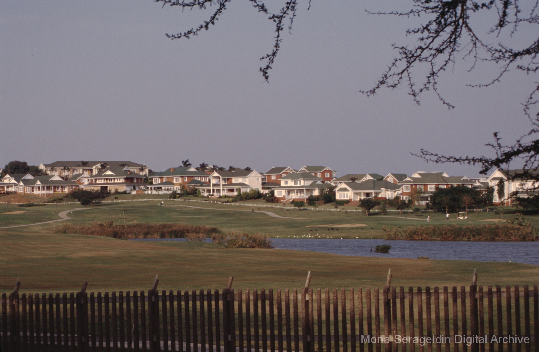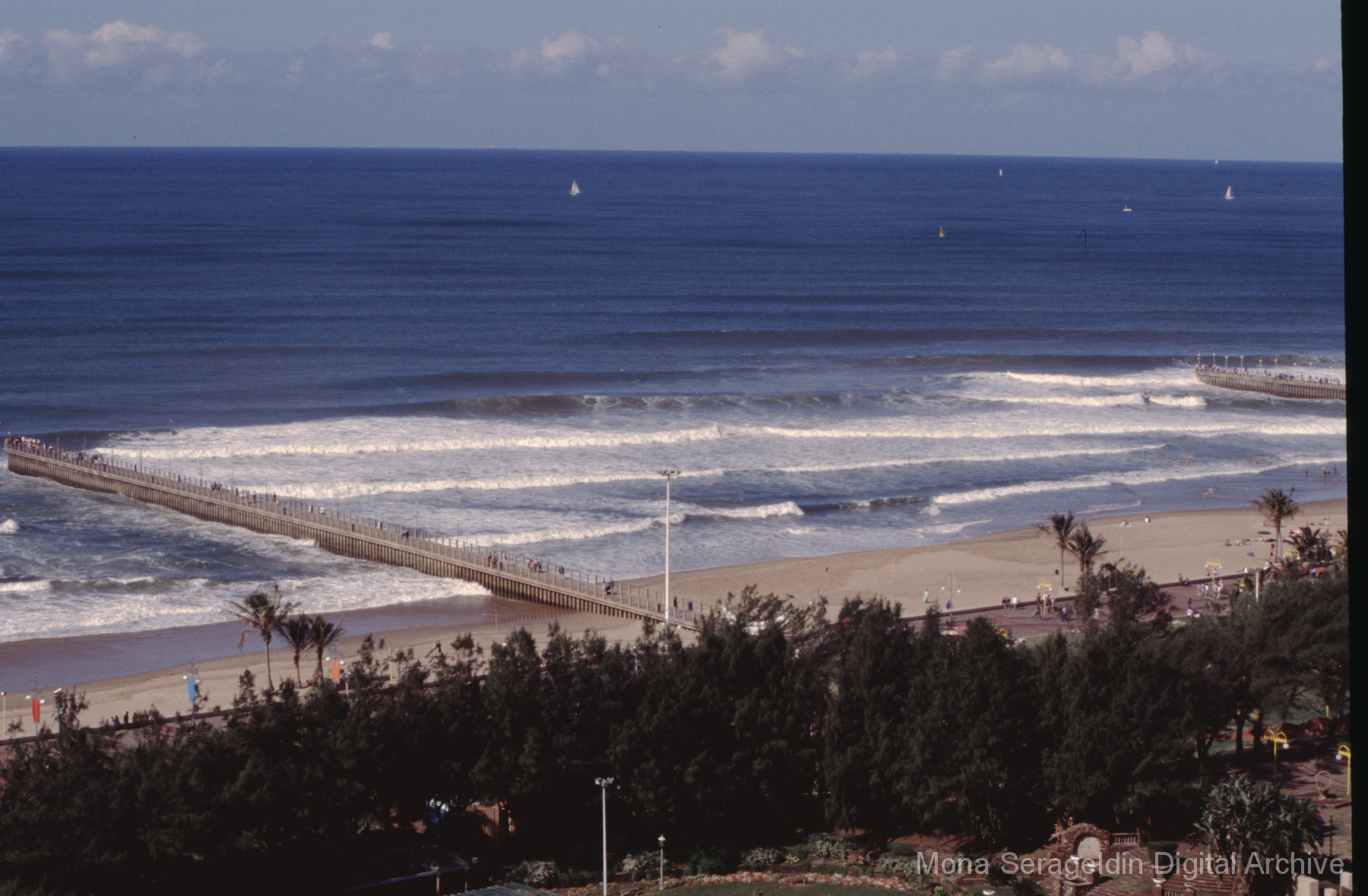 Photographs of the coastal city of Durban in the province of KwaZulu-Natal in South Africa from 1998-2000 and 2002. The gallery documents the waterfront region of the city and the metro area extension to the south, including views of old housing and new private housing developments. Images show aerial views of the region and resort beachfront, overviews of housing, roadways, and natural landscapes, and interiors of a new shopping mall.