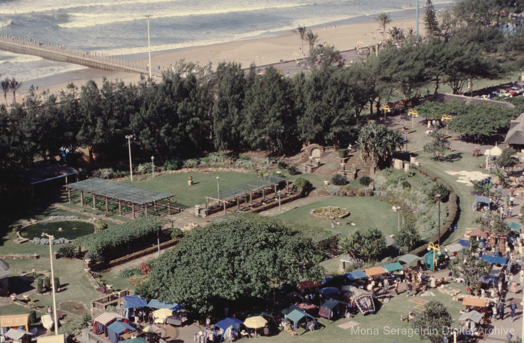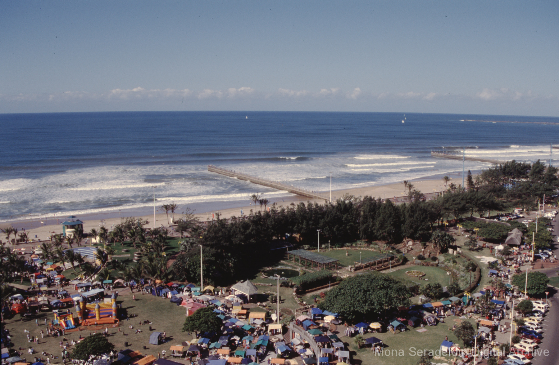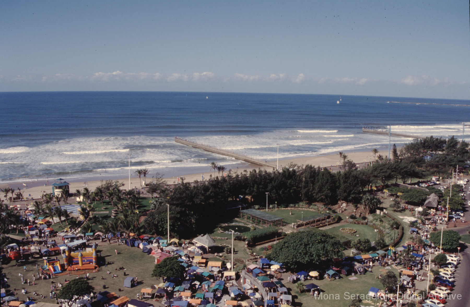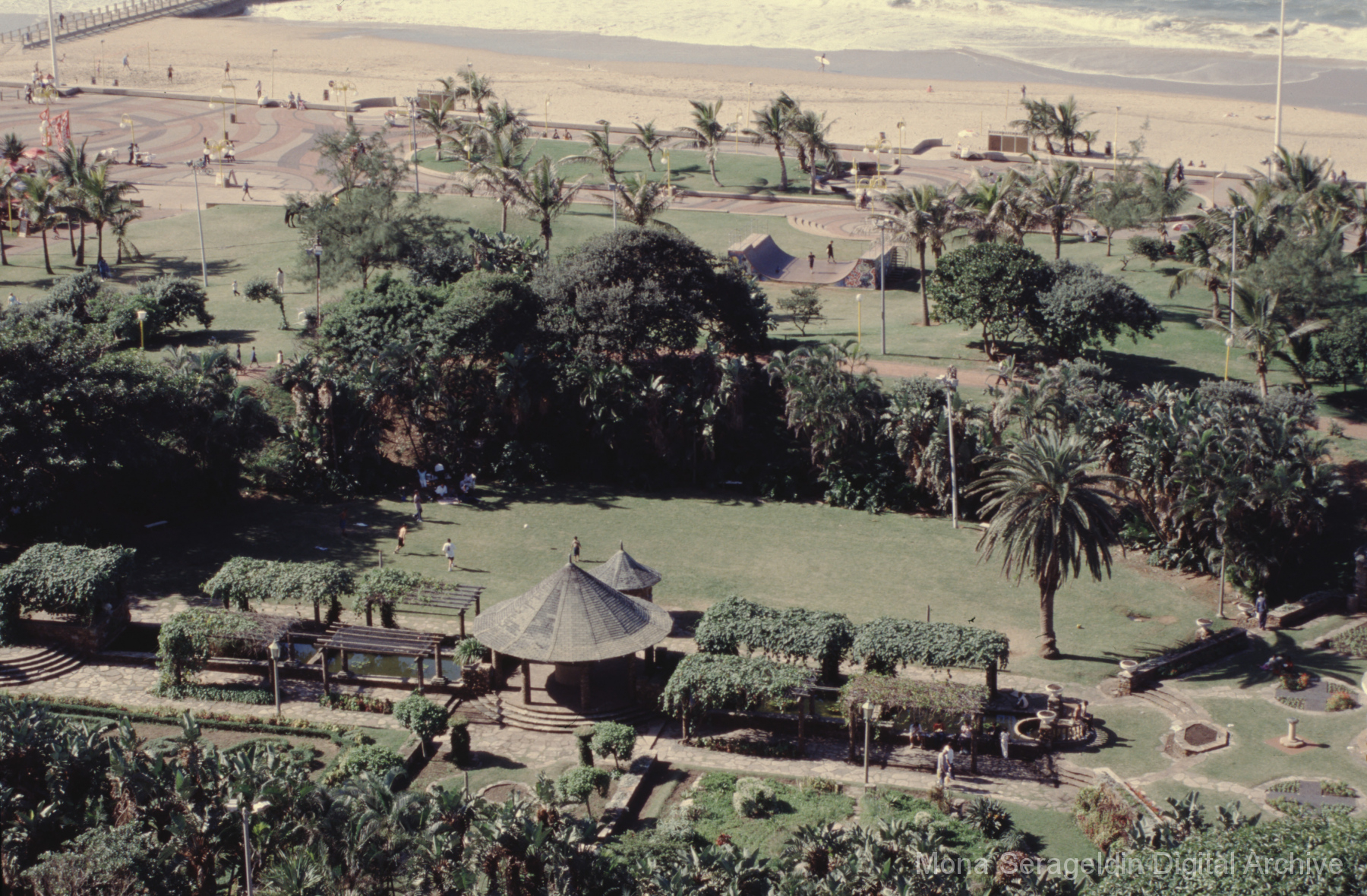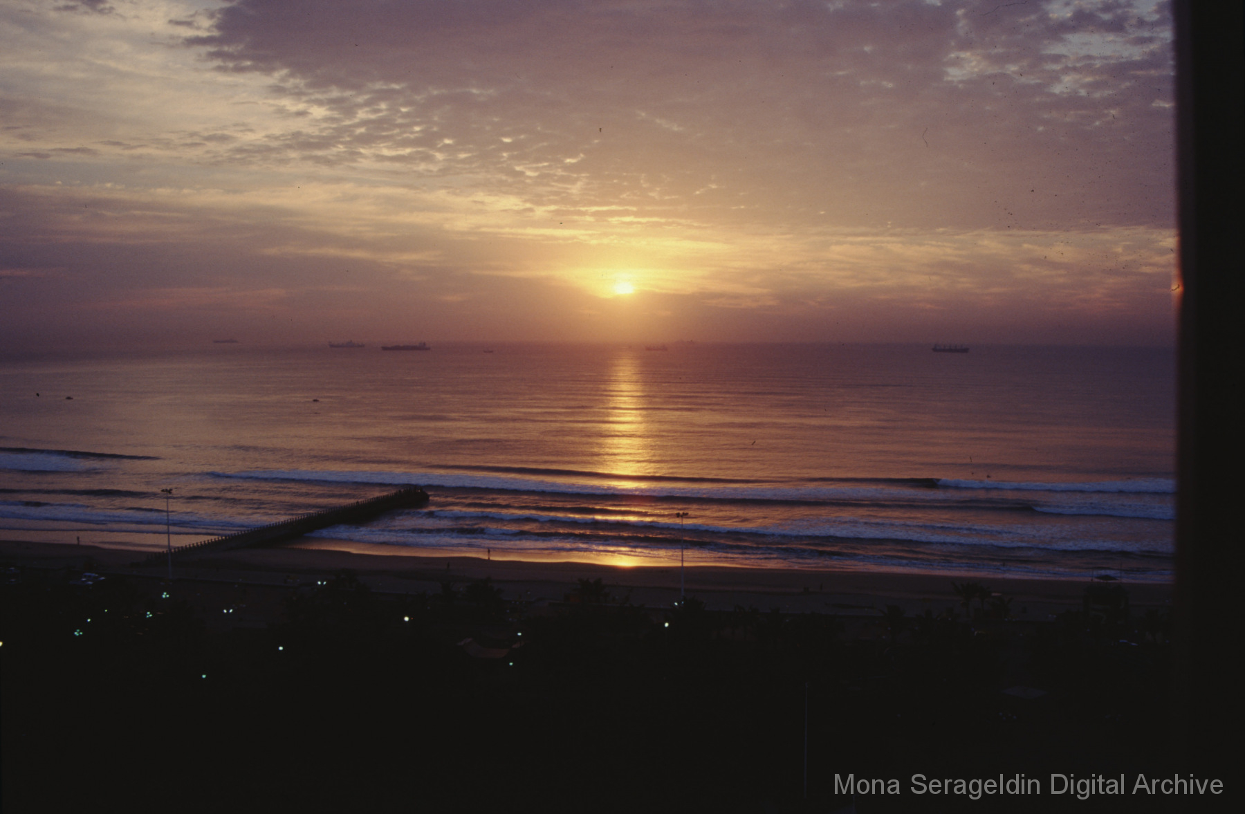 Photographs of the coastal city of Durban in the province of KwaZulu-Natal in South Africa from 1998-2000 and 2002. The gallery documents the waterfront region of the city and the metro area extension to the south, including views of old housing and new private housing developments. Images show aerial views of the region and resort beachfront, overviews of housing, roadways, and natural landscapes, and interiors of a new shopping mall.