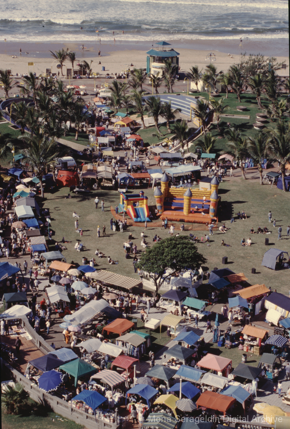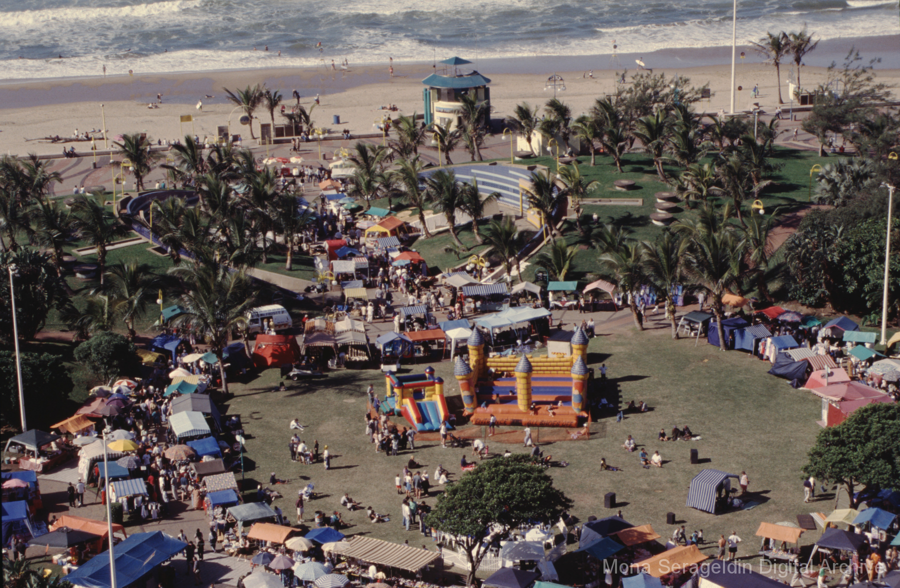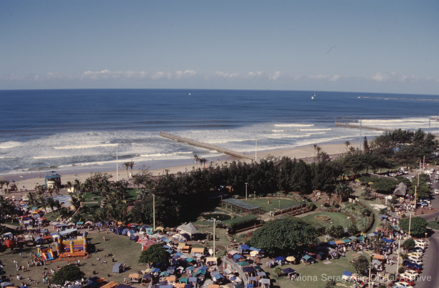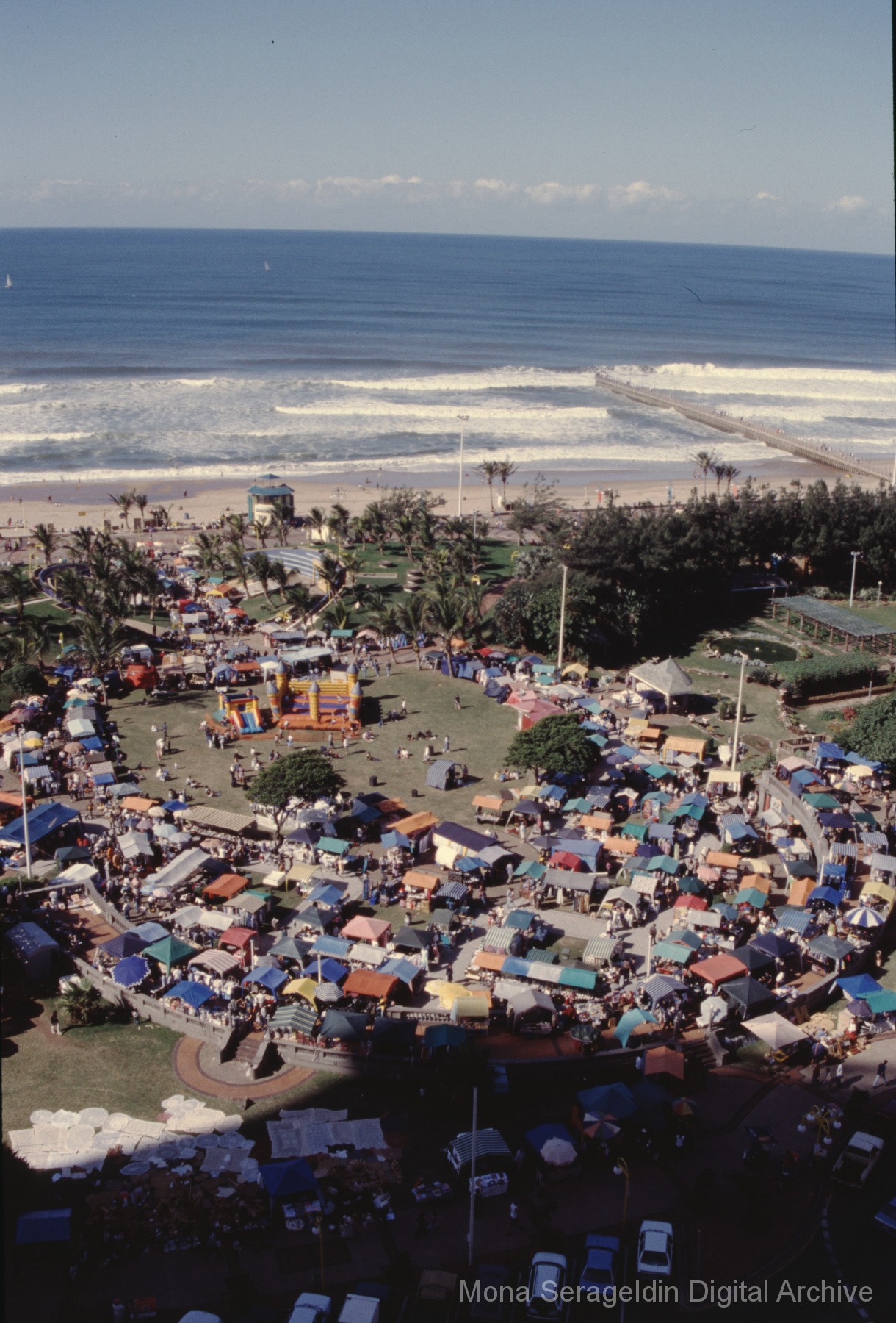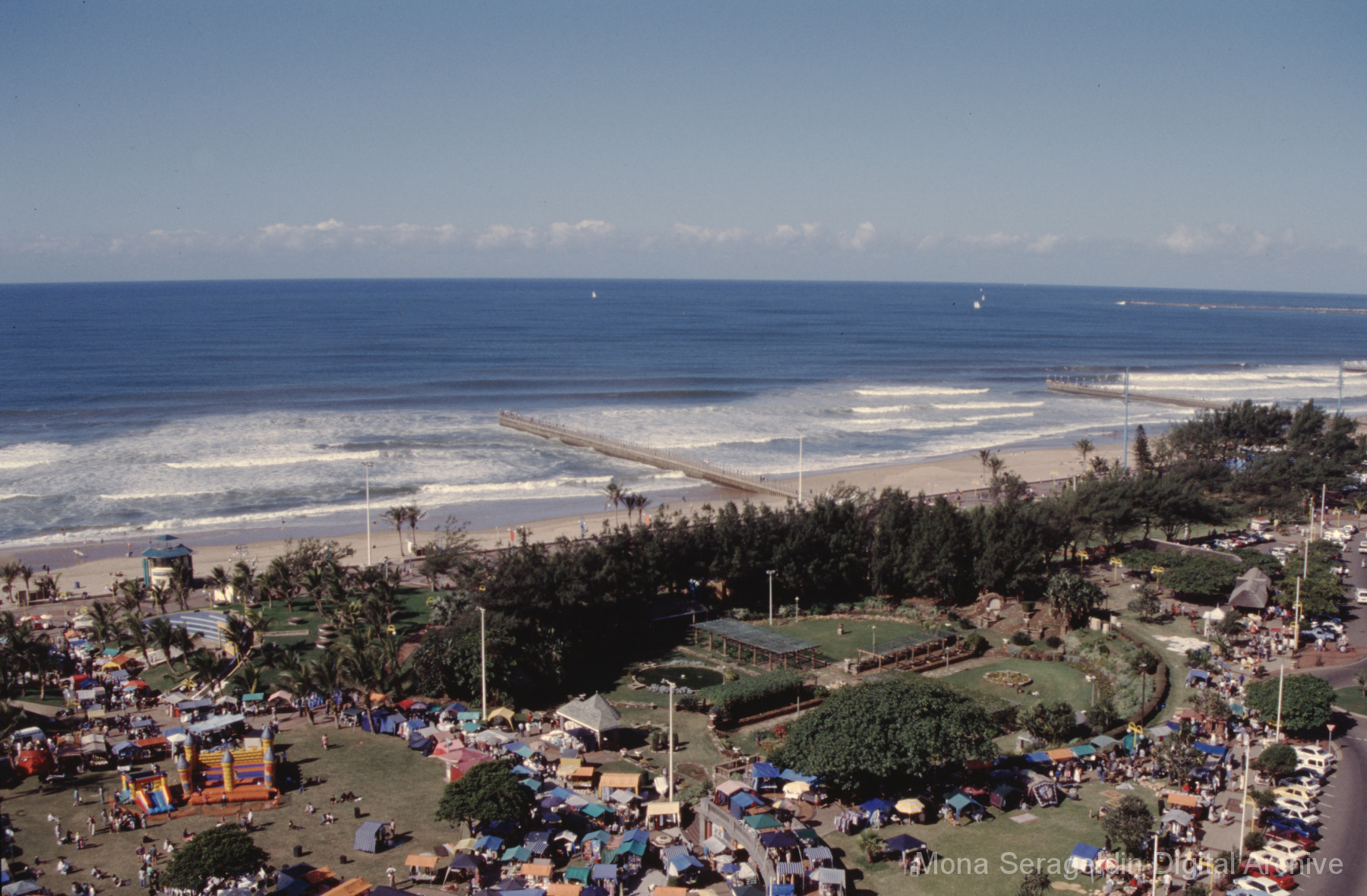 Photographs of the coastal city of Durban in the province of KwaZulu-Natal in South Africa from 1998-2000 and 2002. The gallery documents the waterfront region of the city and the metro area extension to the south, including views of old housing and new private housing developments. Images show aerial views of the region and resort beachfront, overviews of housing, roadways, and natural landscapes, and interiors of a new shopping mall.
