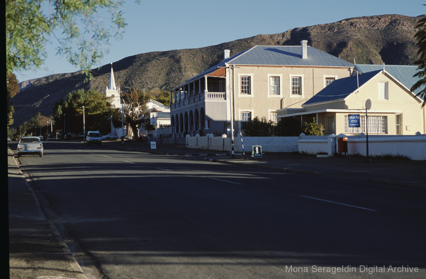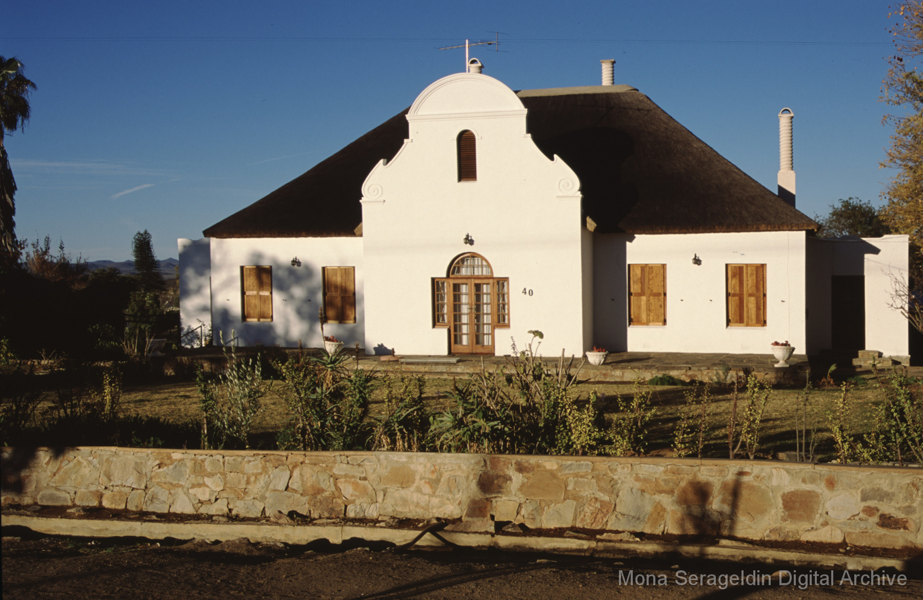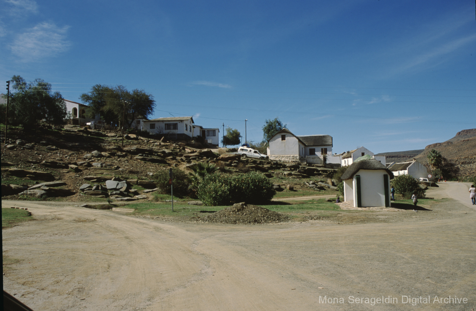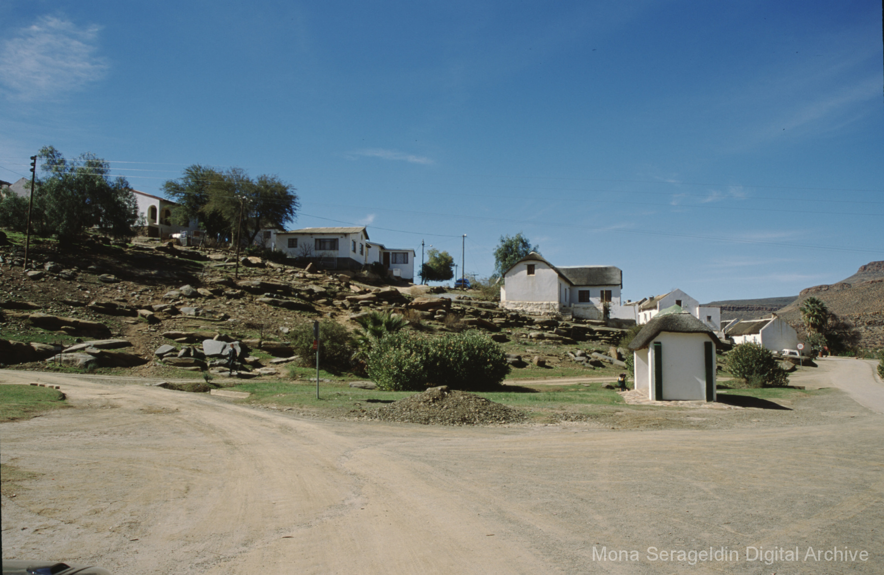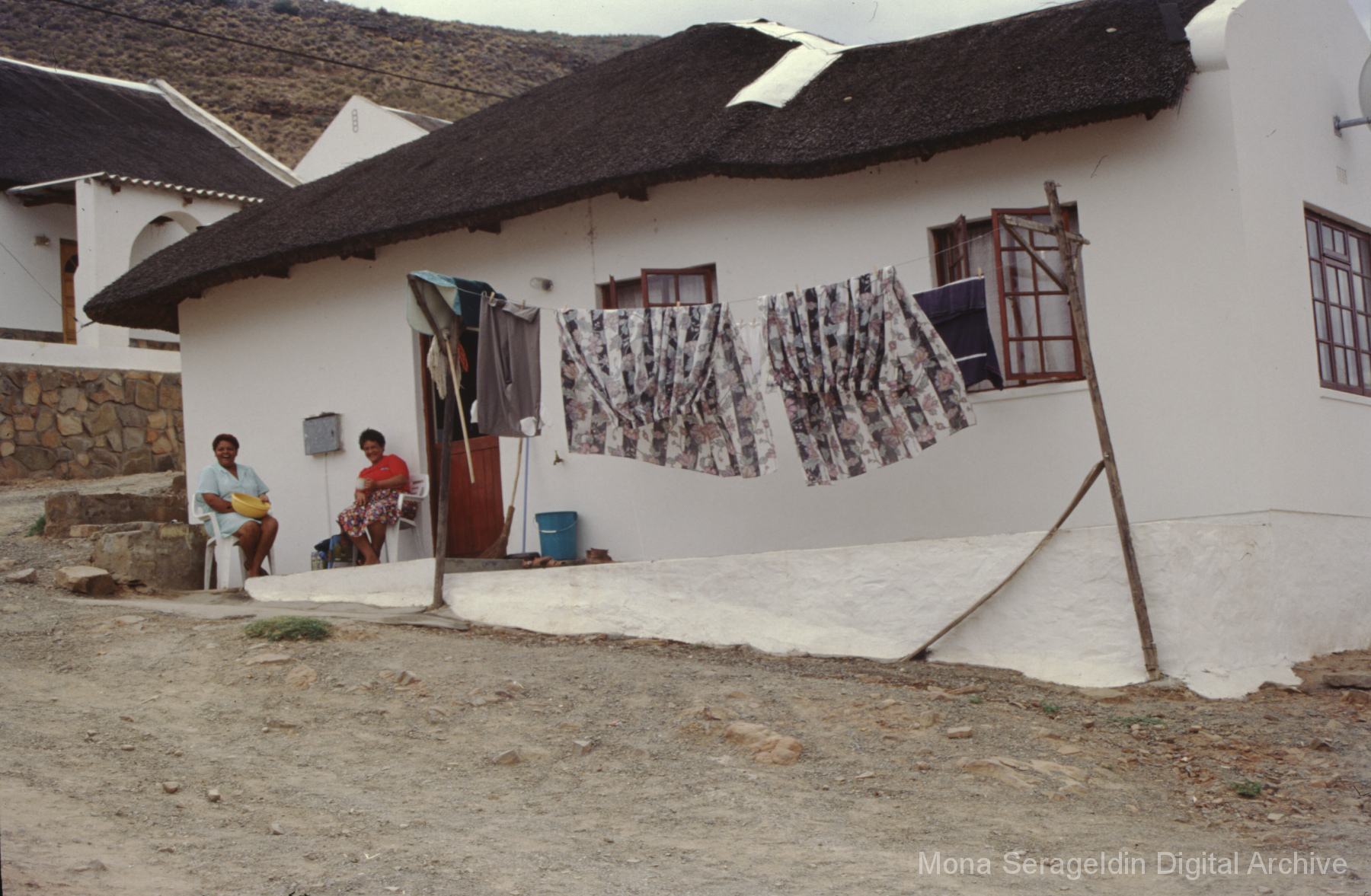 Photographs of the Western Cape province of South Africa from around 2000 through 2003. The gallery primarily covers housing projects around Stilbaai, Elim, and Cape Town, natural landsapes at Cape Agulhas and Kagga Kamma Nature Reserve, and historic housing in the town of Prince Albert. Images include views of landscape from roadways, portraits, and overviews of building exteriors, streets, and water infrastructure. Mona Serageldin is pictured.