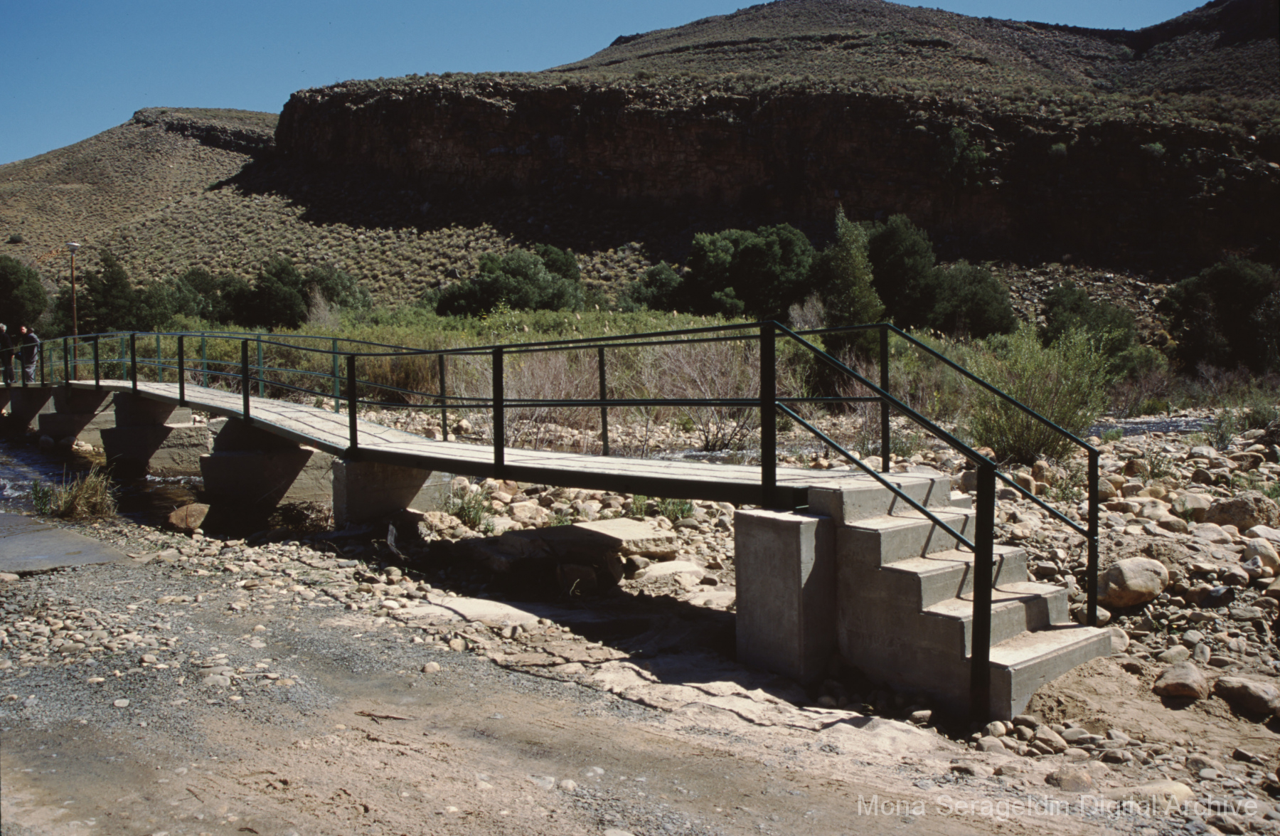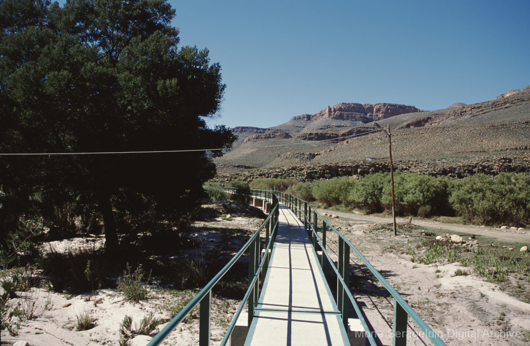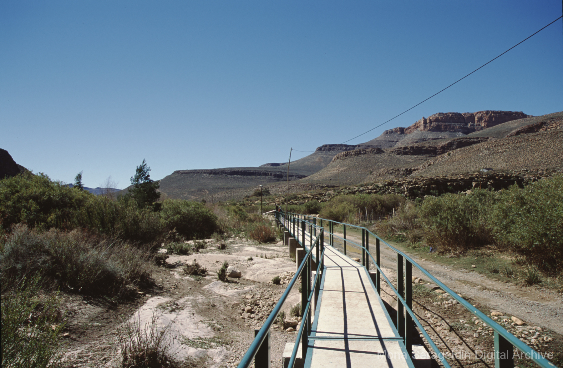 Photographs of the town of Wupperthal in the Cederberg mountains of Western Cape, South Africa from September 2003. The gallery covers natural landscapes, town housing and streetscapes, and views of river crossing with footbridge. Images also show agriculture and drainage systems in the town.