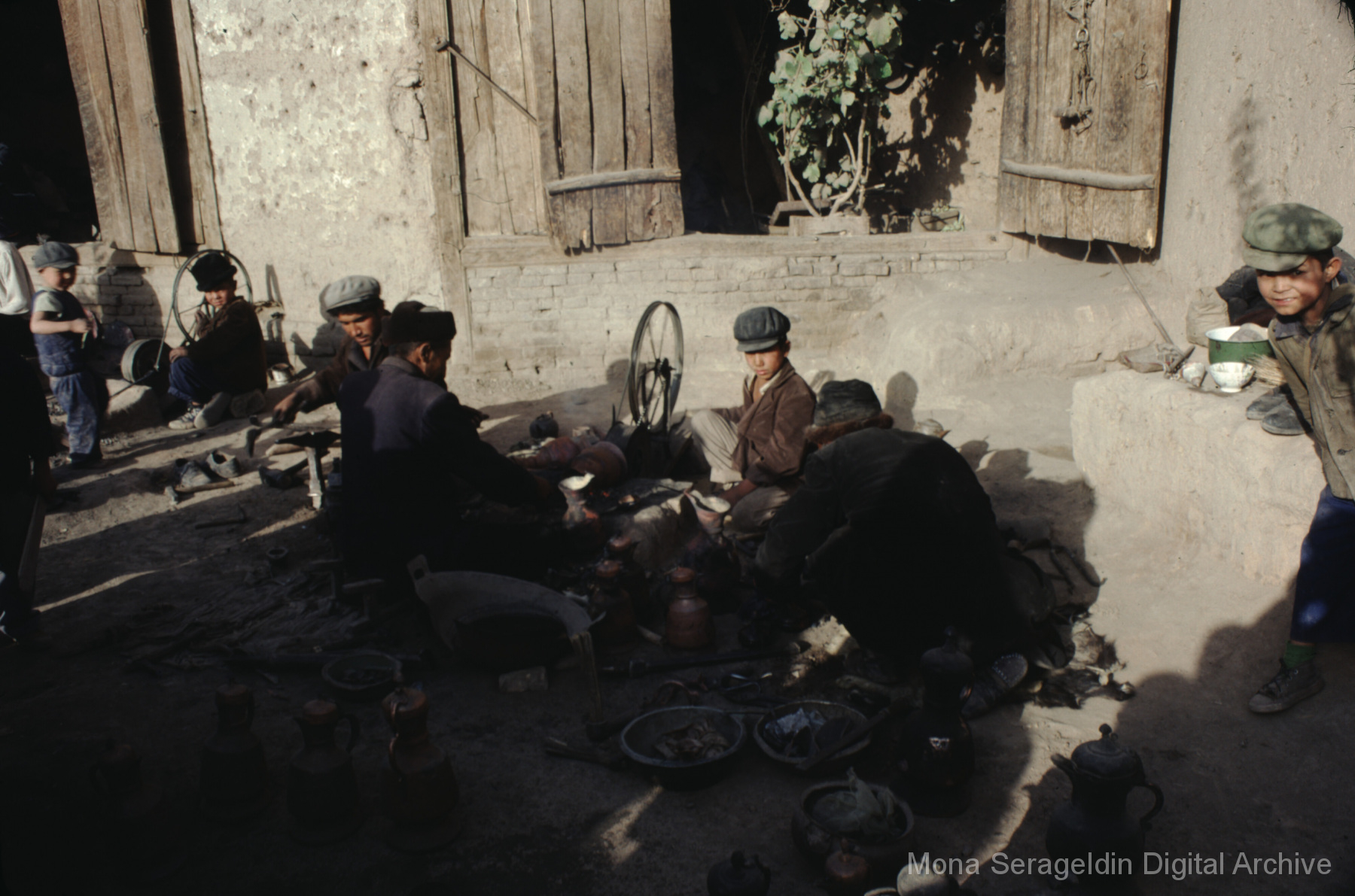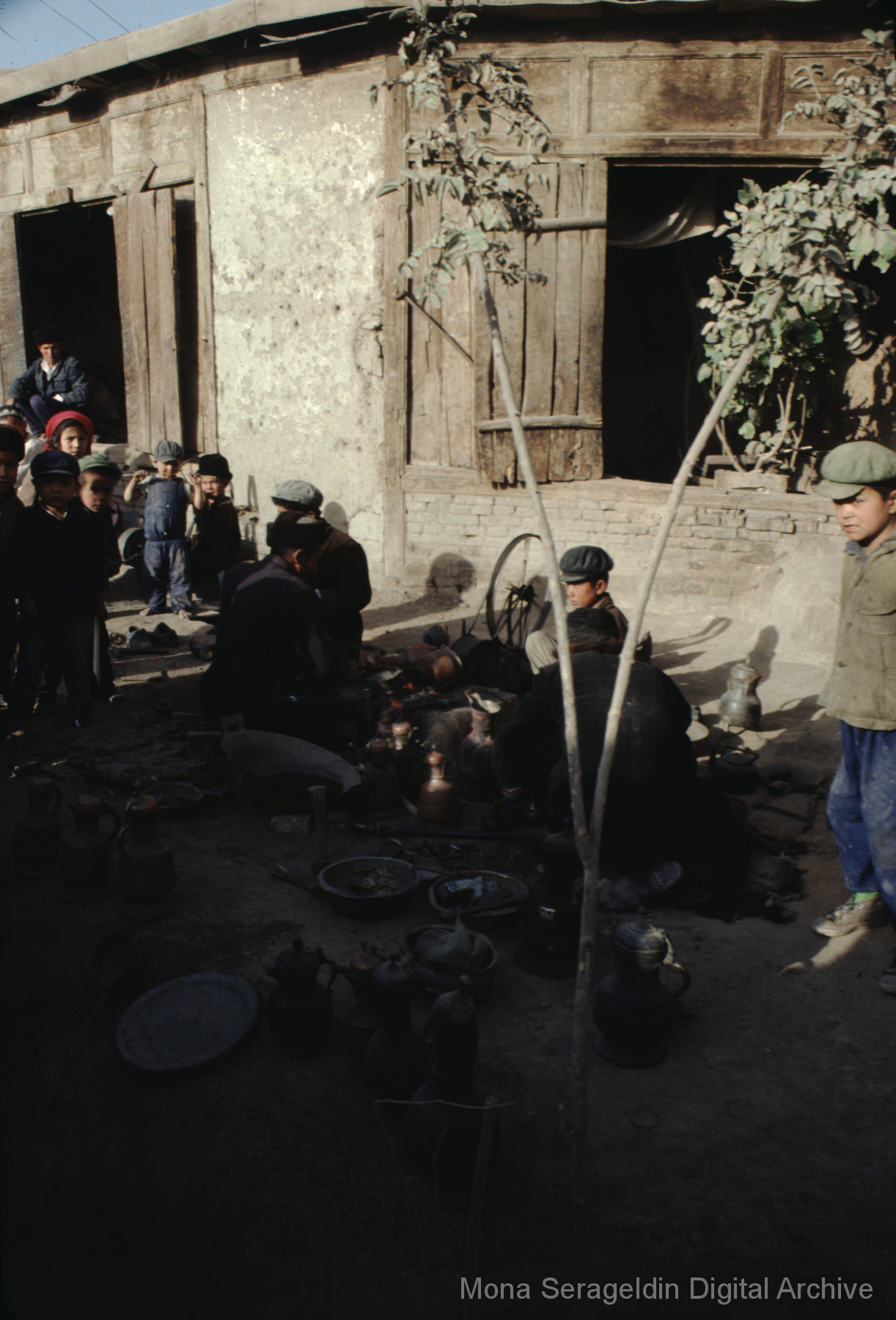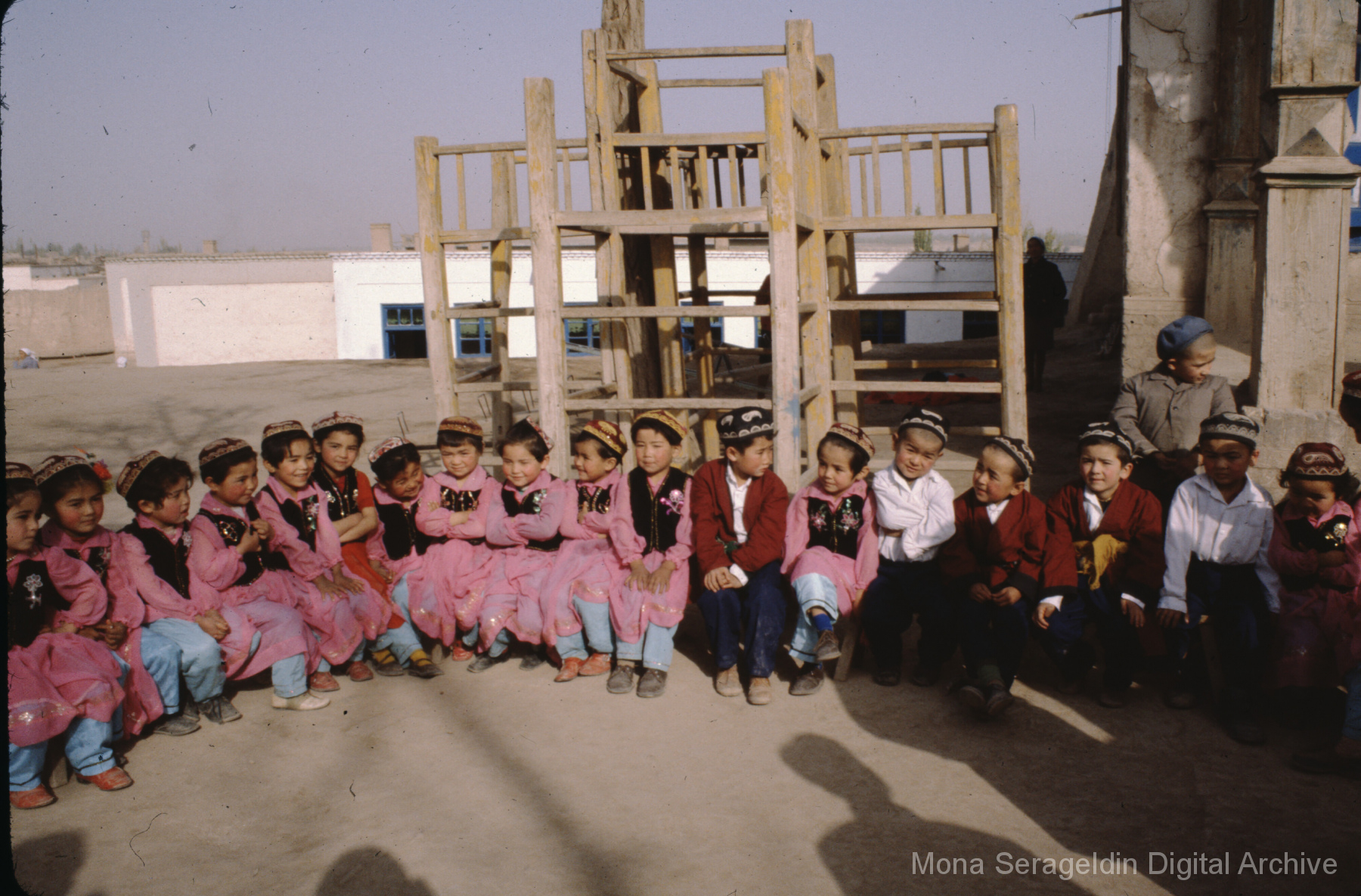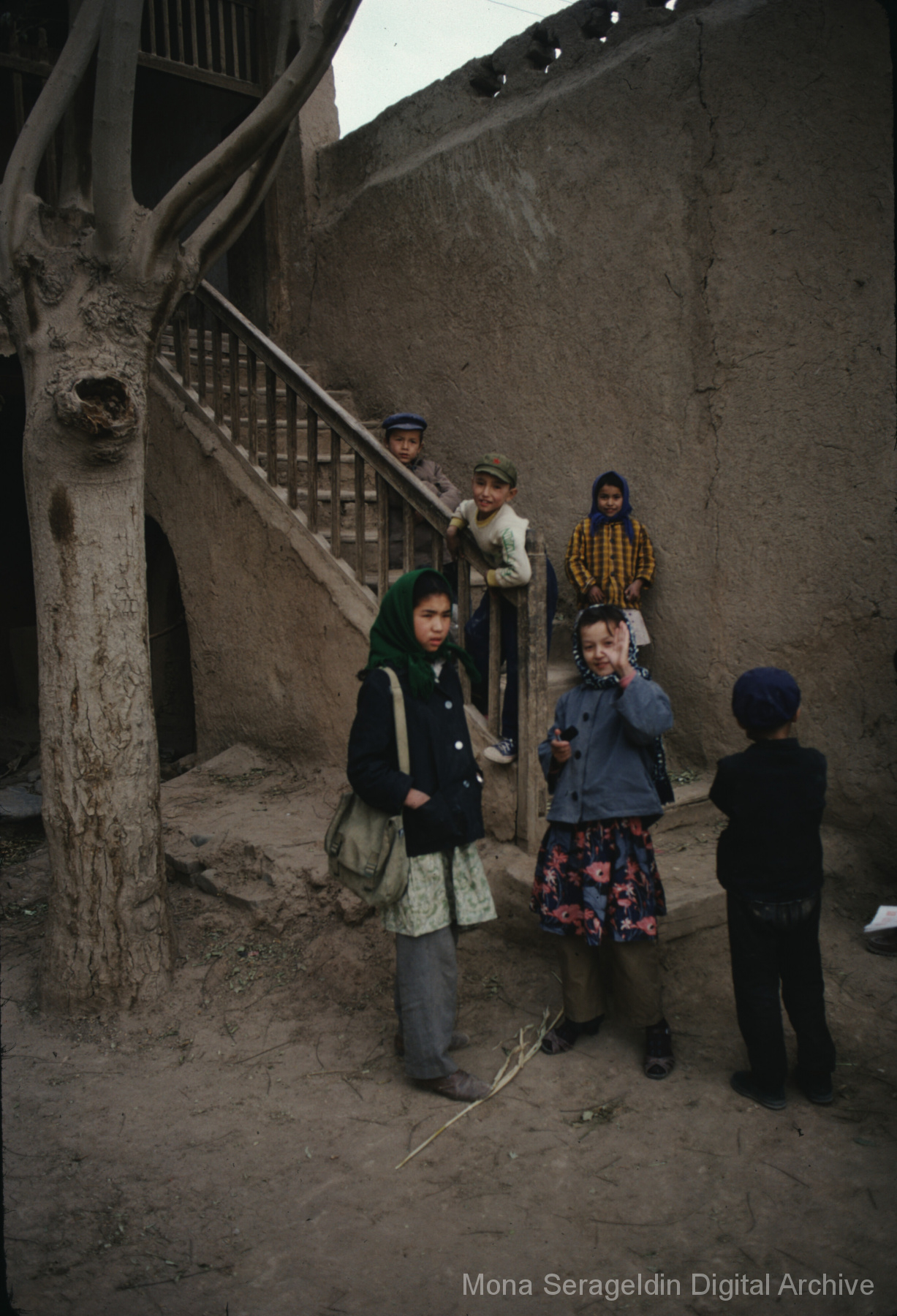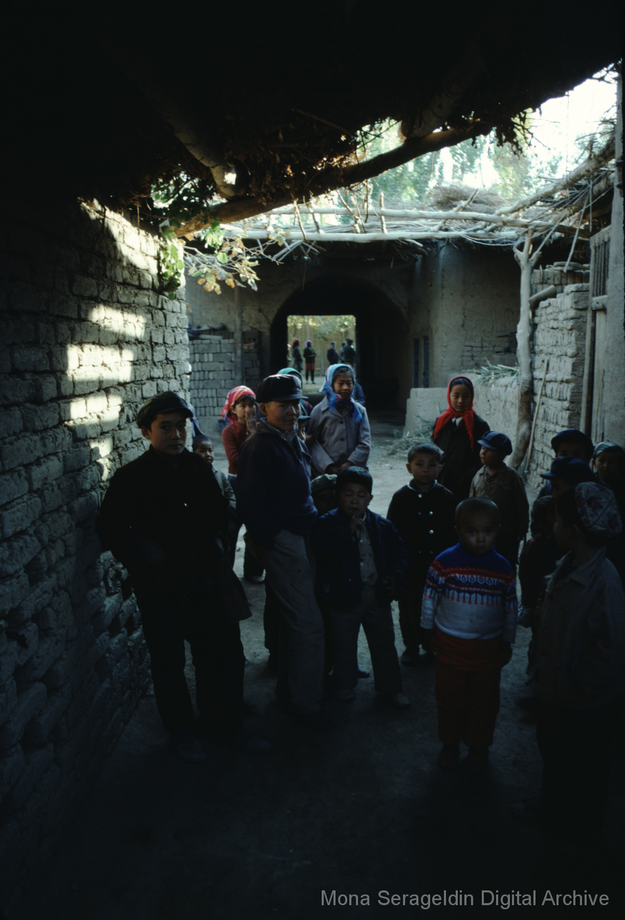 Photographs of the city of Kashgar in the Xinjiang Uyghur Autonomous Region in northwestern China from November 1981. The gallery covers mud villages, housing, mosques, markets and a kindergarten. It also shows the Aba Khoja Mausoleum architecture and grounds. Views include general views of village and residential areas, exteriors of houses and other buildings, interior and courtyard views, portraits of community members, streetscapes, and landscapes.